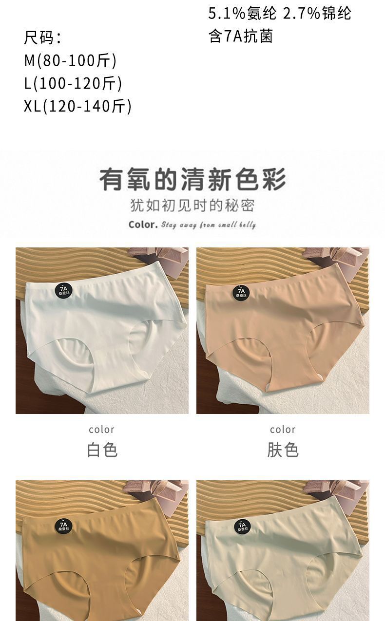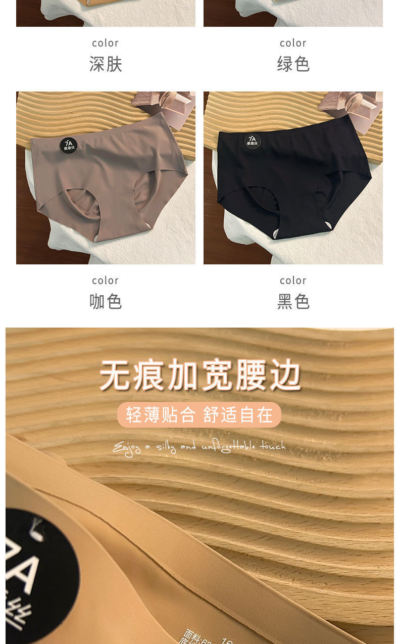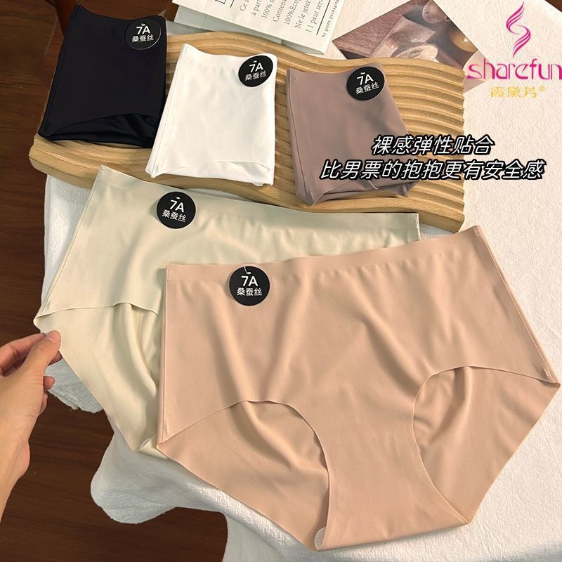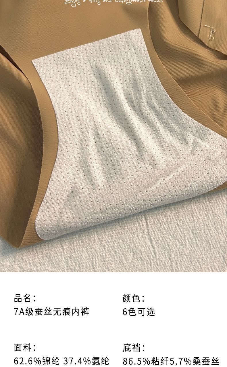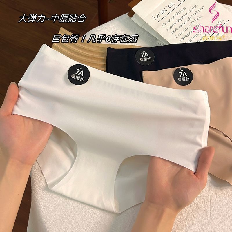 7A 품질 버전 소녀의 얼음 실크 원활한 속옷 부드러운 항균 뽕나무 실크 바닥 중간 허리 여성용 팬티 대외 무역스토어 가기