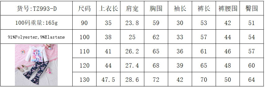 EW 외국 무역 아동복 중소 아동용 클리어런스 여아 봄 여름 만화 프린트 티셔츠 플레어 팬츠 세트 TZ993-D스토어 가기