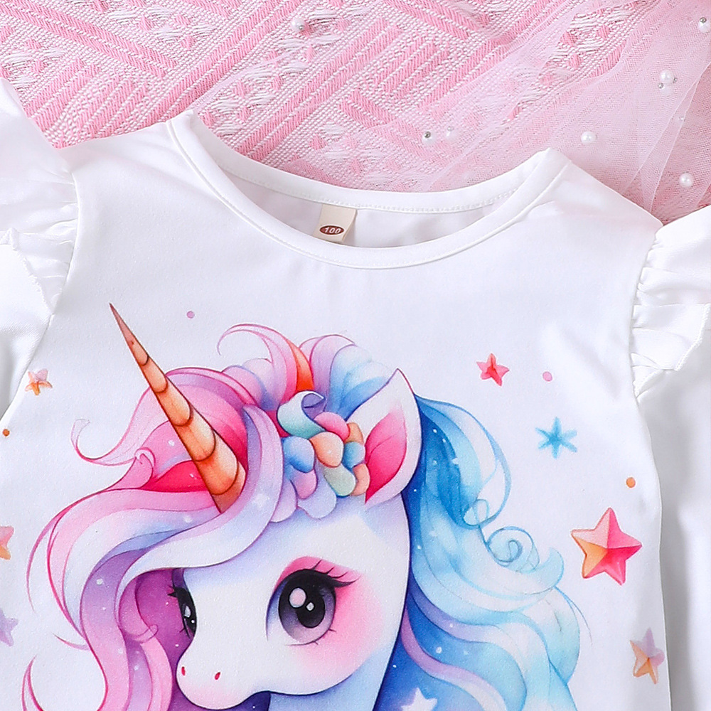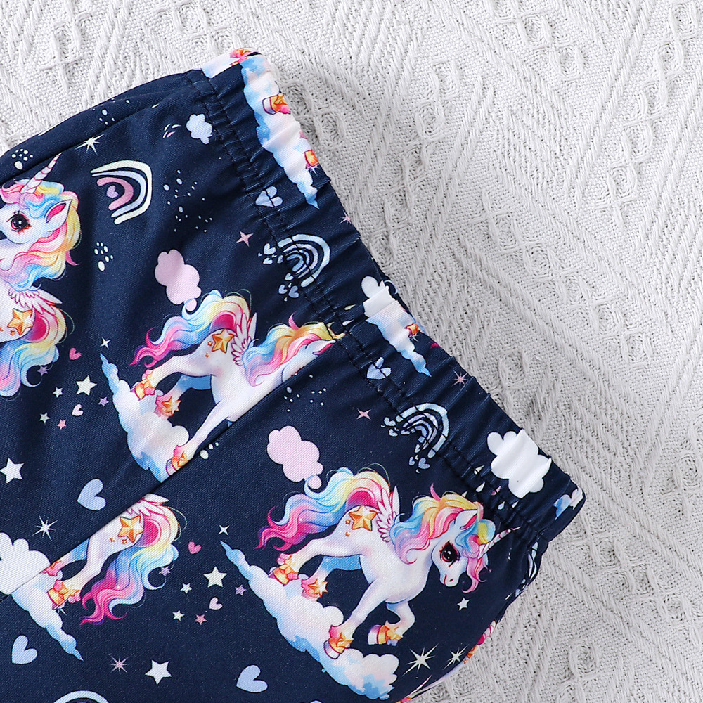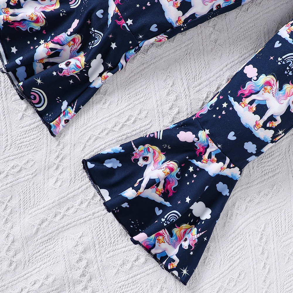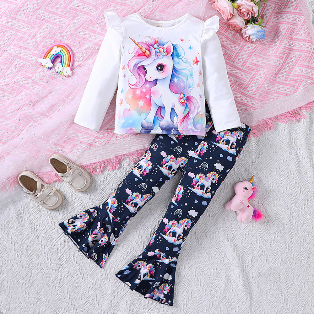 EW 외국 무역 아동복 중소 아동용 클리어런스 여아 봄 여름 만화 프린트 티셔츠 플레어 팬츠 세트 TZ993-D