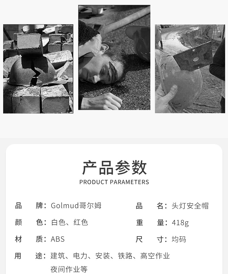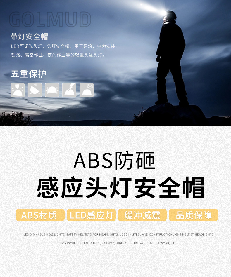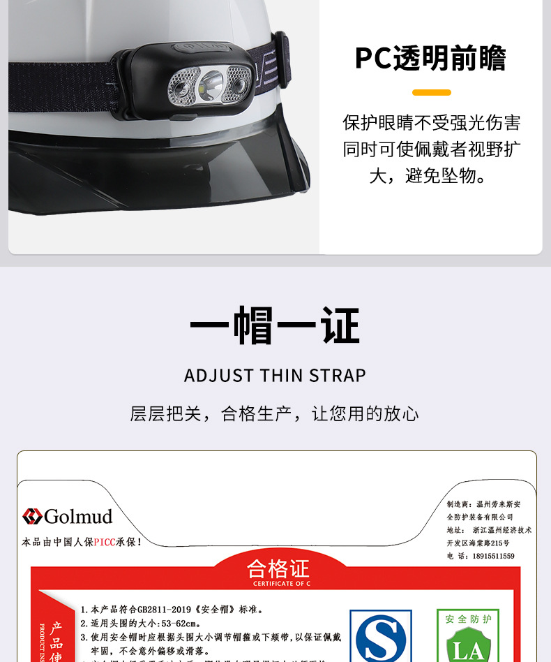 Golm abs 안전 캡 헤드 램프 국가 표준 건설 현장 리더 헬멧 로고 인쇄 GM1702