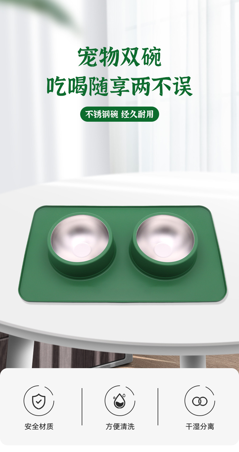 애완 동물 더블 볼 개 피더 고양이와 개 용품 안티 오버플로 스테인레스 스틸 개 그릇 안티 전복 2-in -1 개 식품 그릇