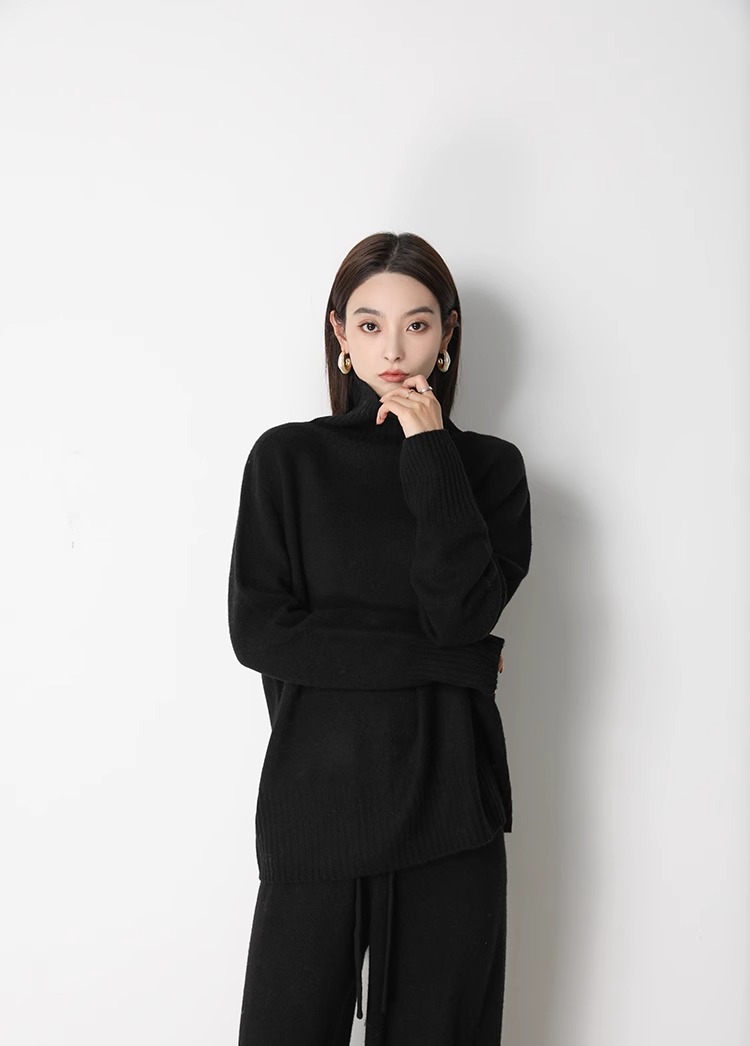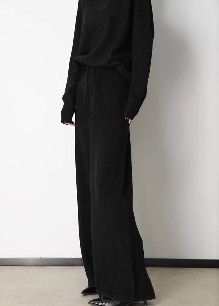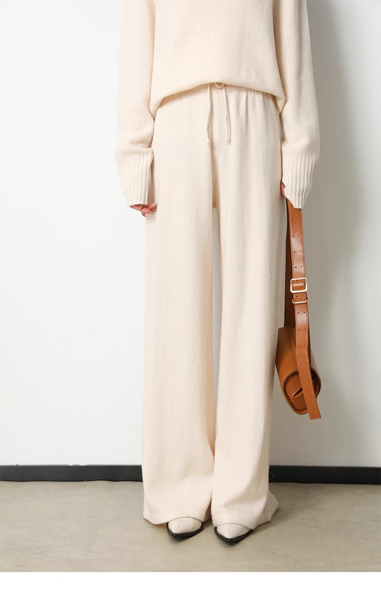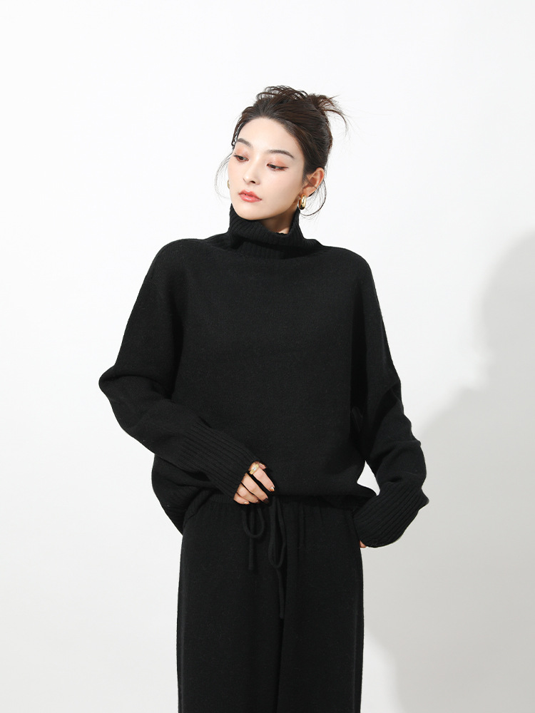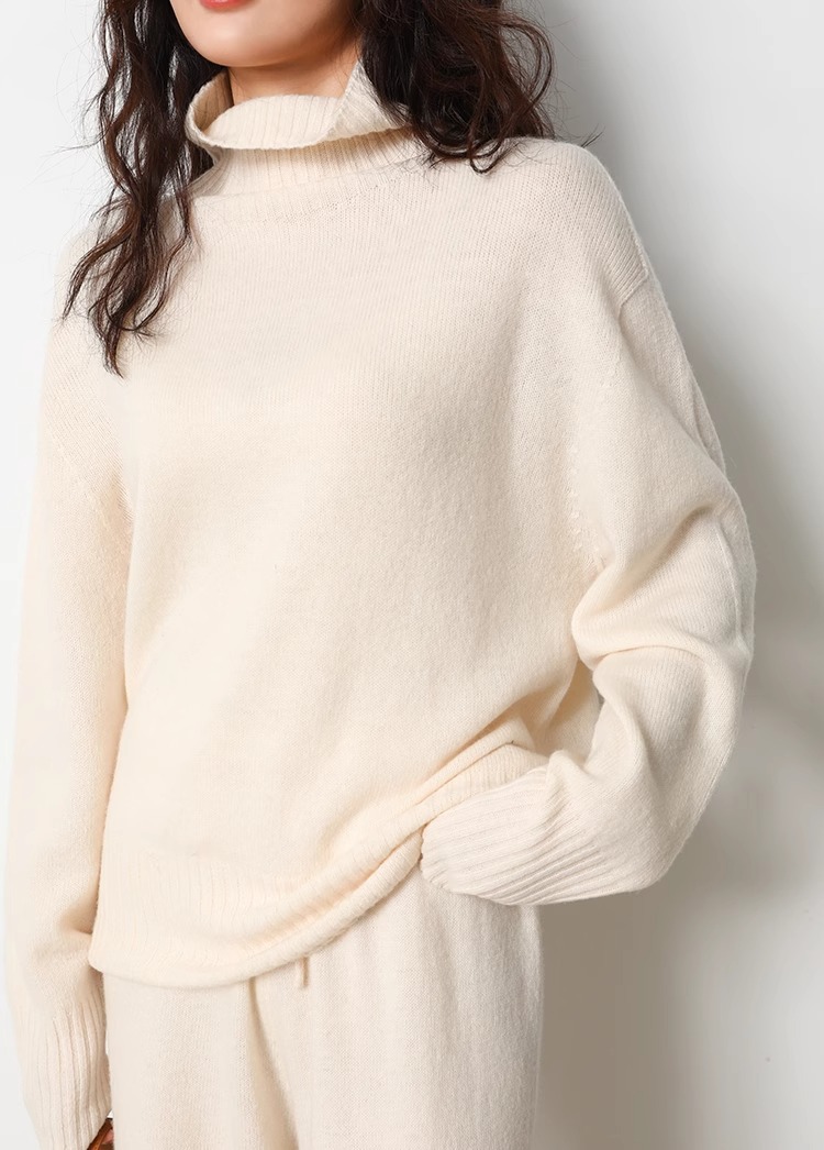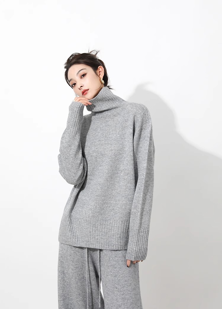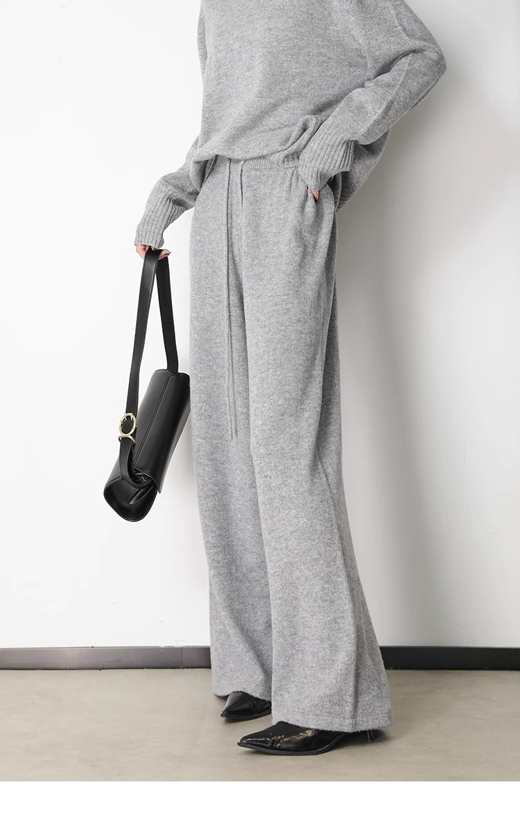 캐주얼한 올 울 스웨터 세트, 봄철 루즈핏 하이넥 이너 니트 와이드 팬츠 투피스 세트, 출퇴근룩스토어 가기
