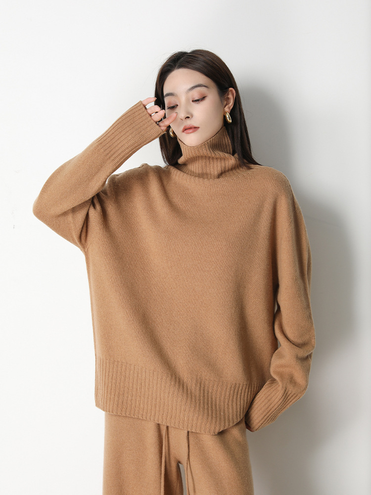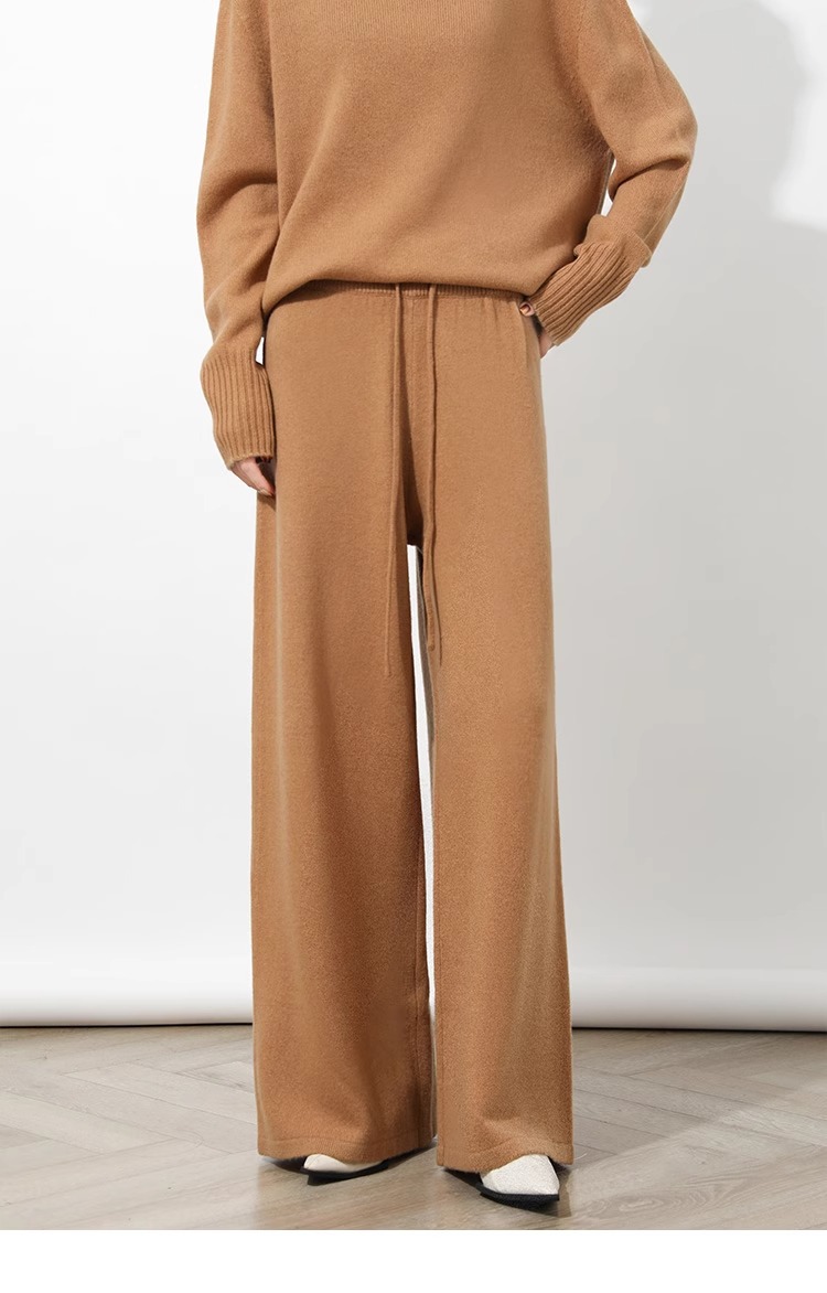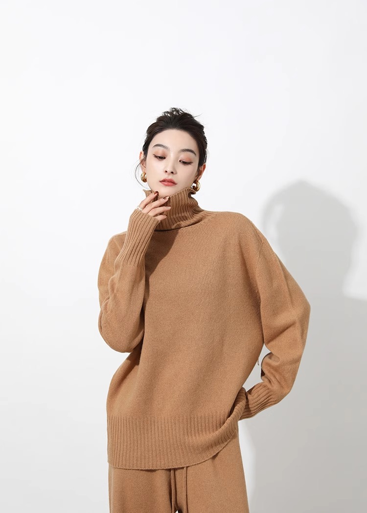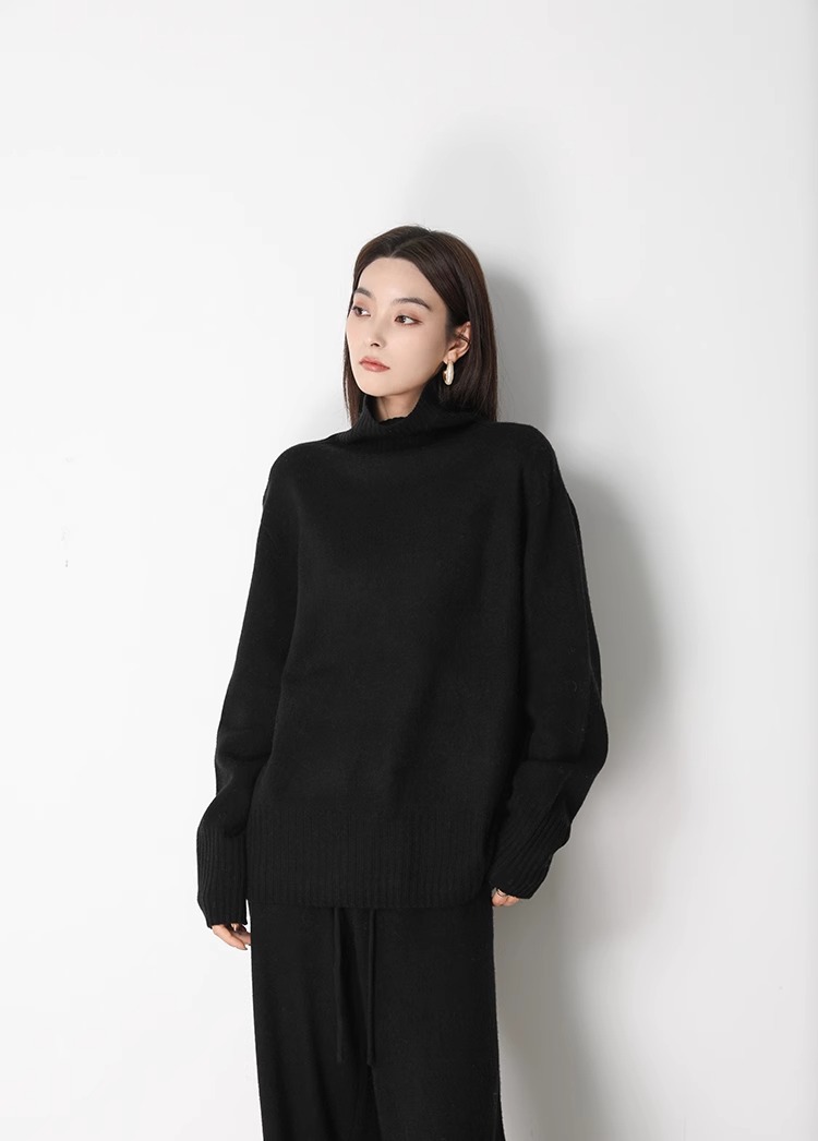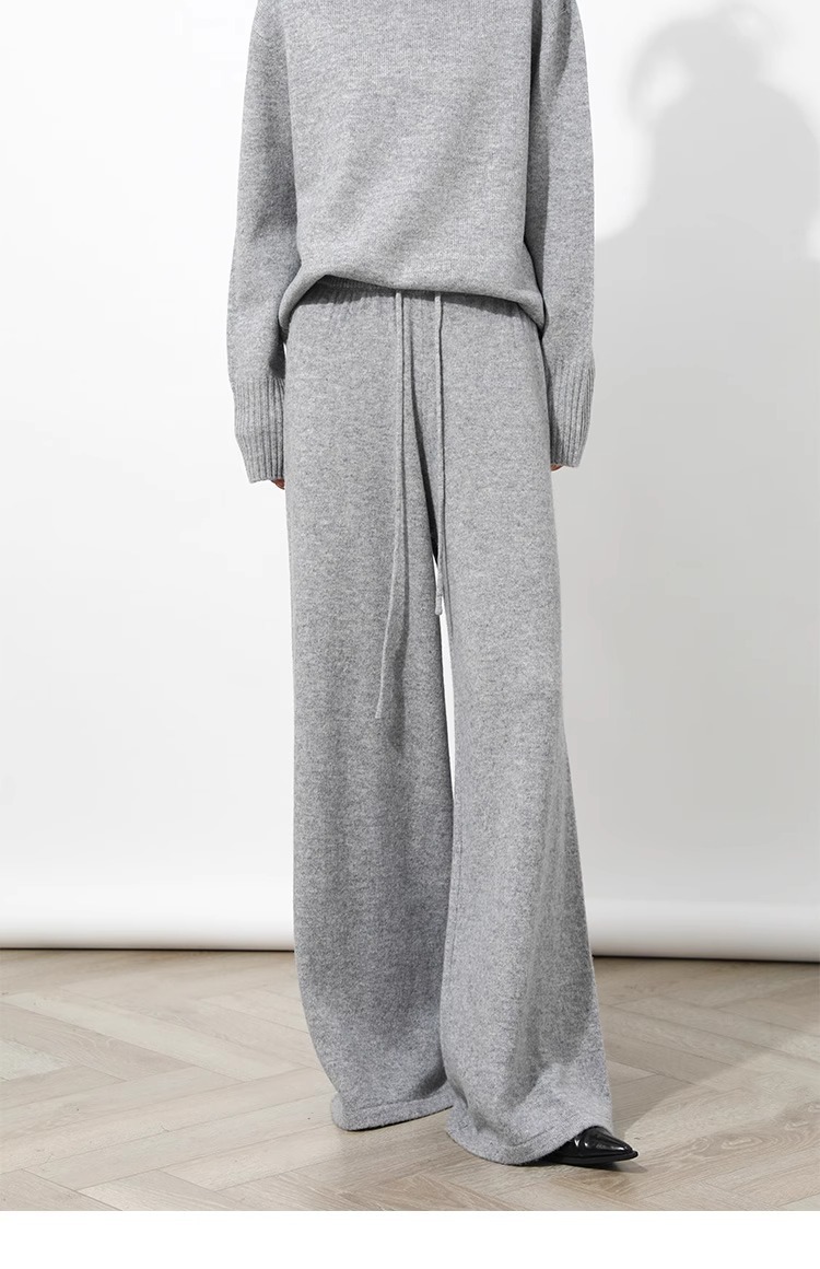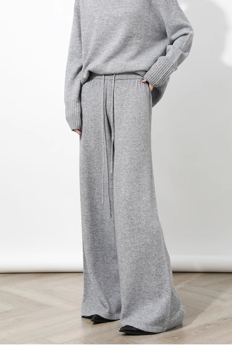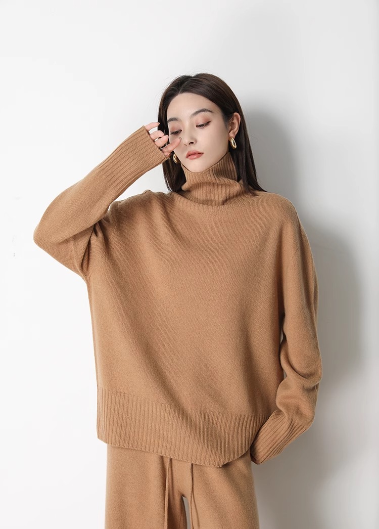 캐주얼한 올 울 스웨터 세트, 봄철 루즈핏 하이넥 이너 니트 와이드 팬츠 투피스 세트, 출퇴근룩스토어 가기