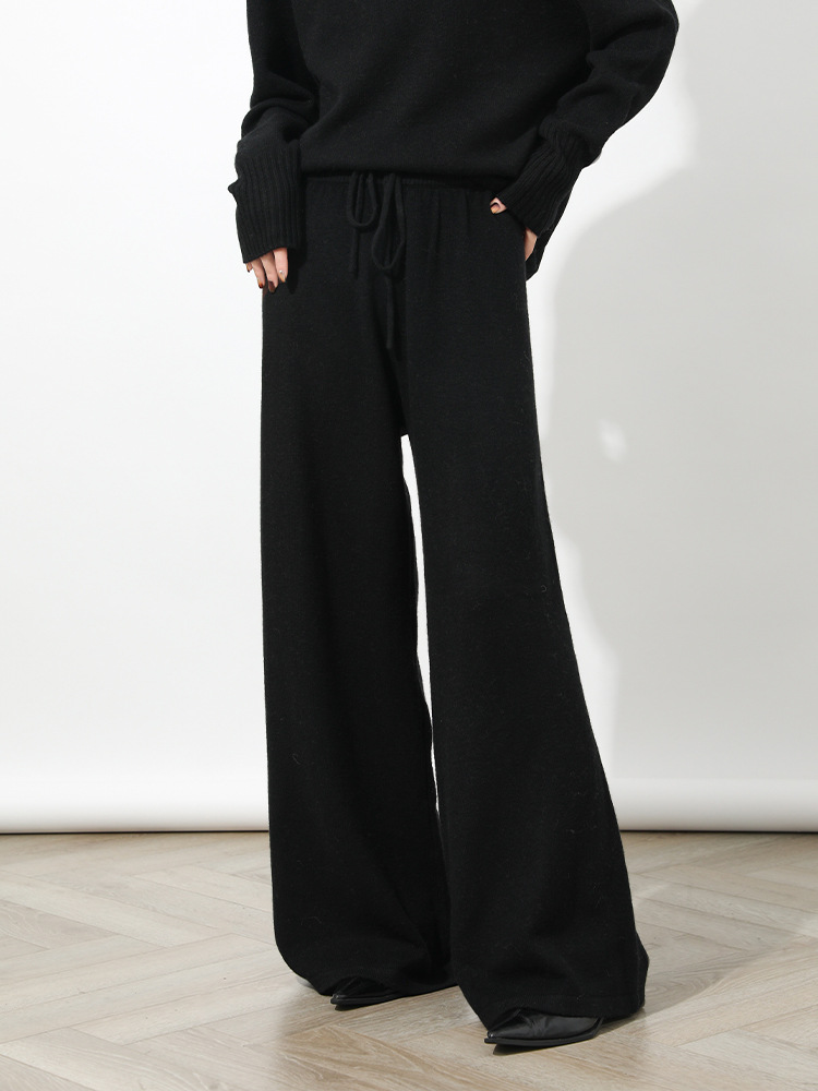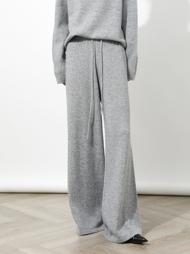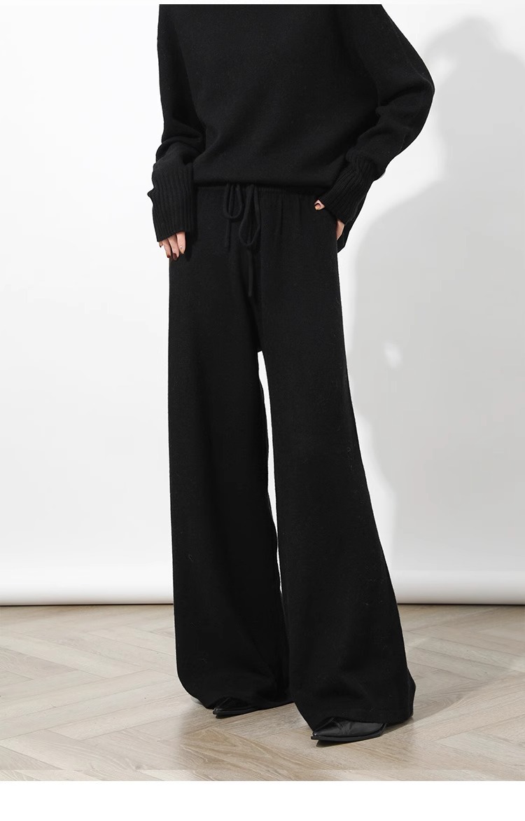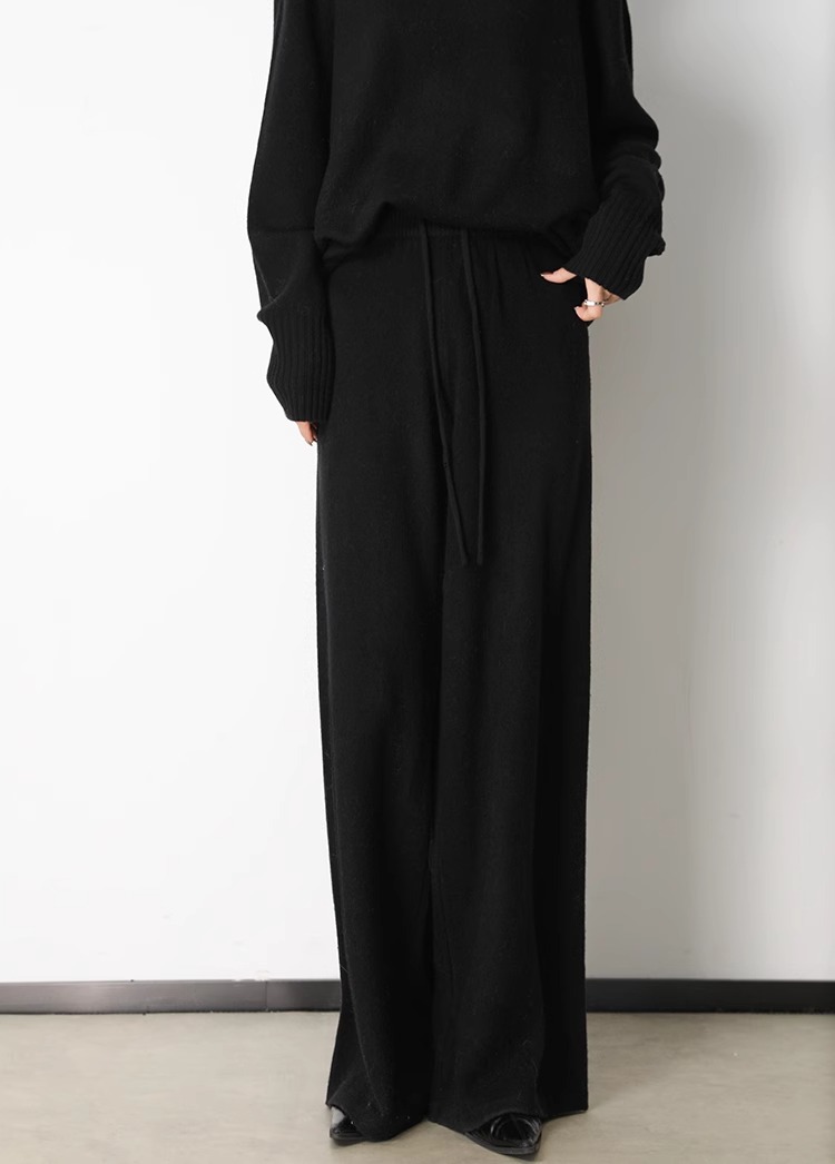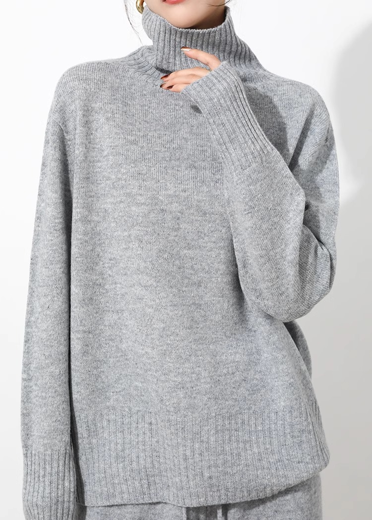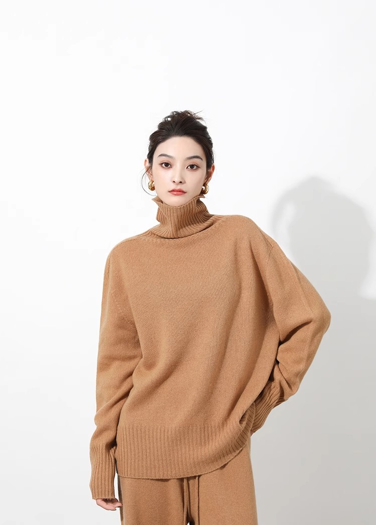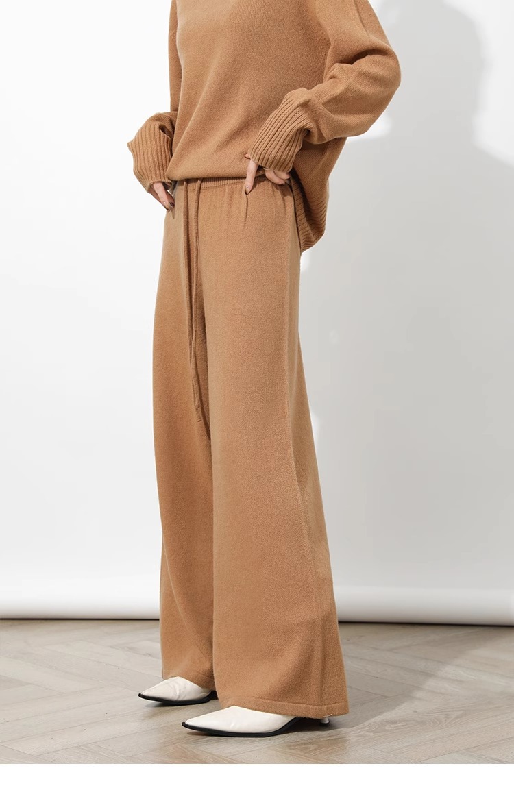 캐주얼한 올 울 스웨터 세트, 봄철 루즈핏 하이넥 이너 니트 와이드 팬츠 투피스 세트, 출퇴근룩스토어 가기