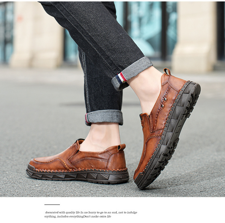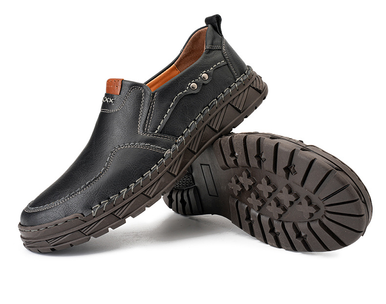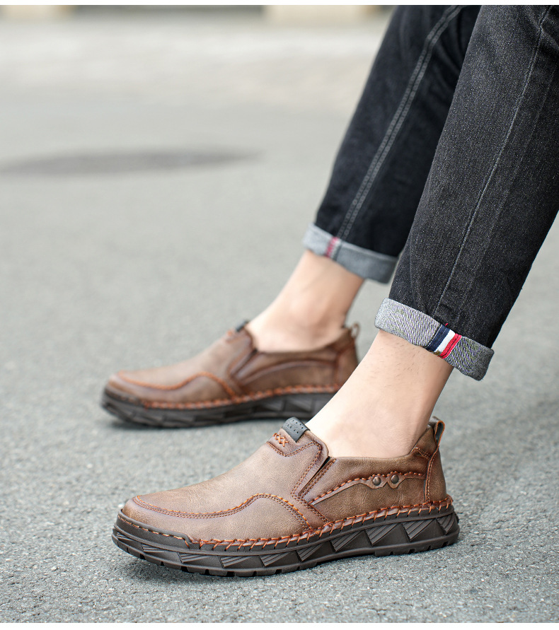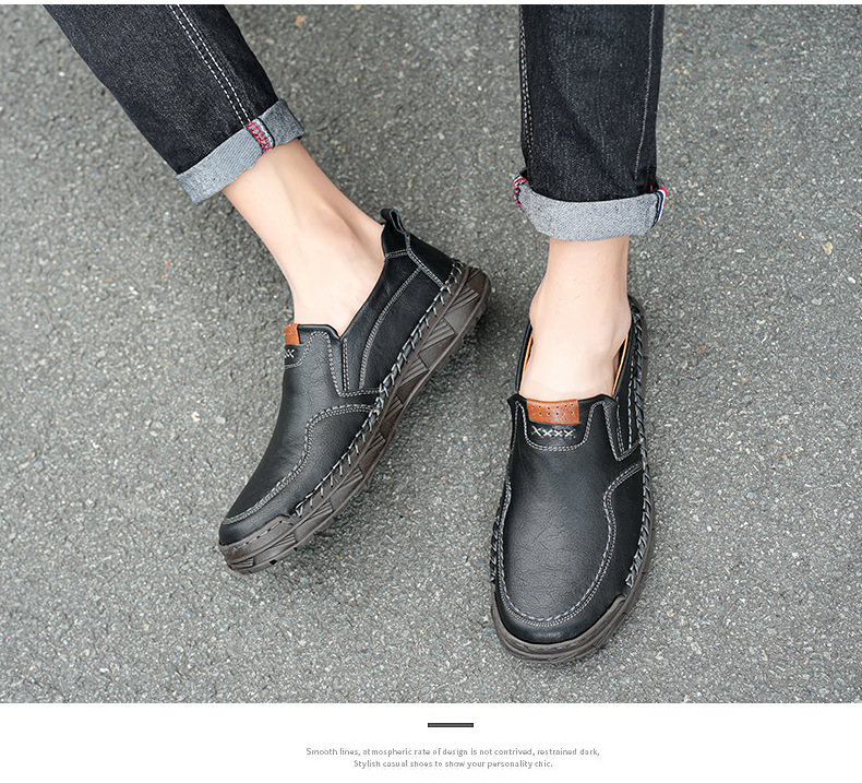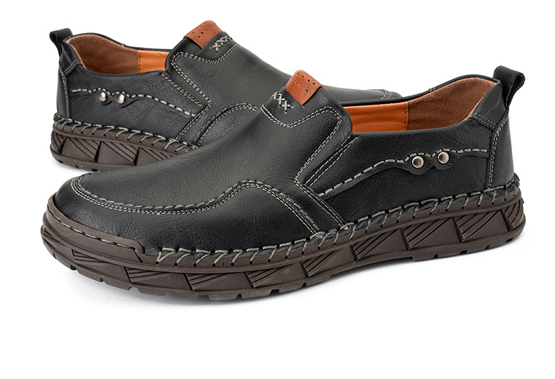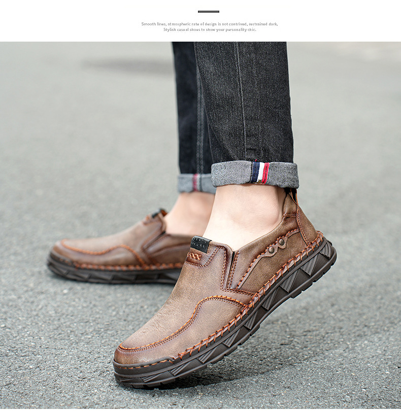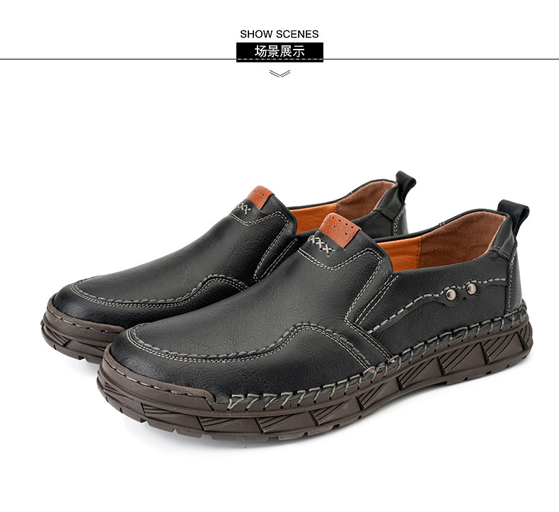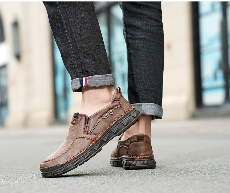 새로운 남성 캐주얼 가죽 신발 대외 무역 남성 복고풍 영국 로퍼 리벳 남성용 손으로 꿰매는 캐주얼 가죽 신발