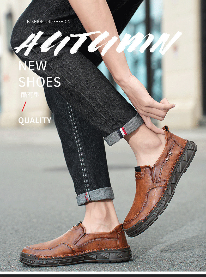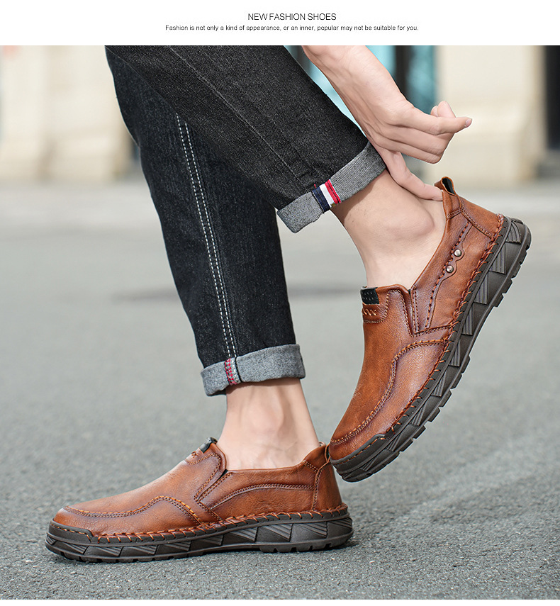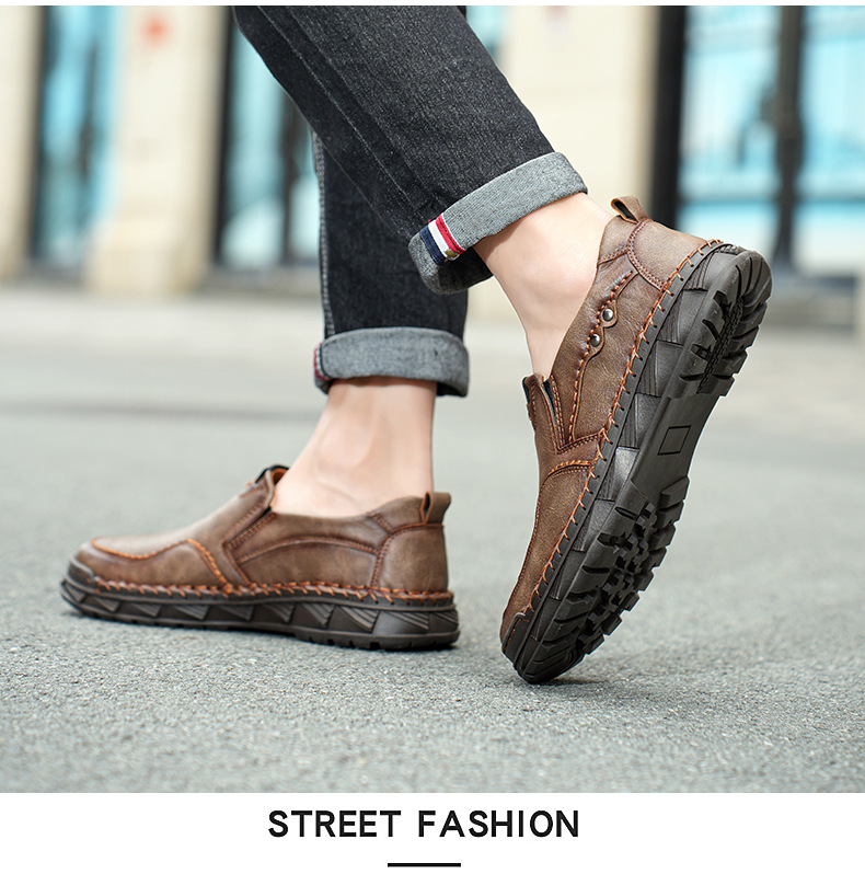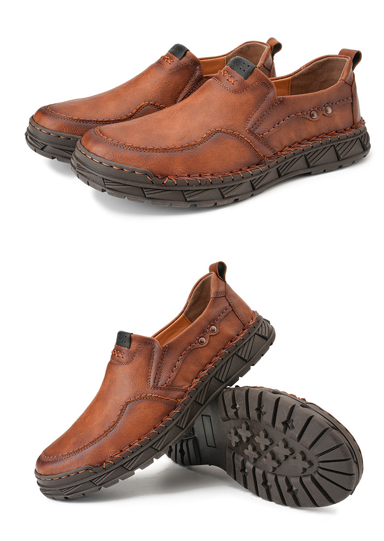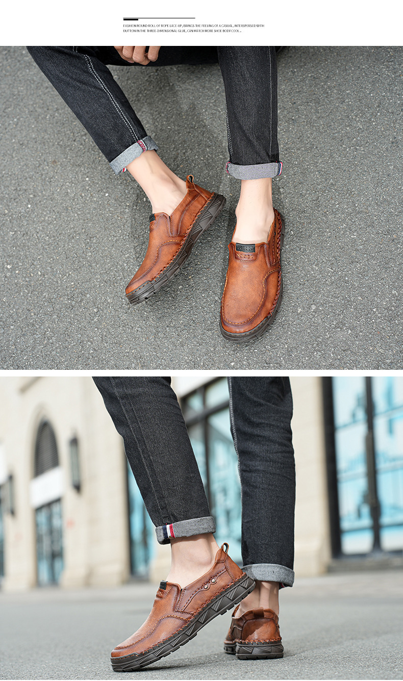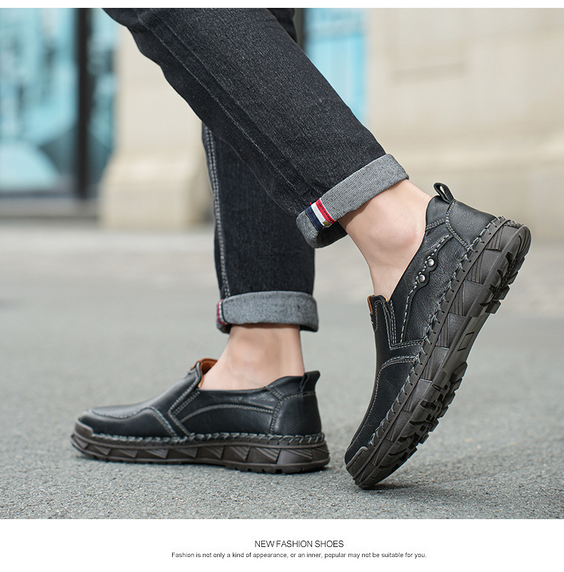 새로운 남성 캐주얼 가죽 신발 대외 무역 남성 복고풍 영국 로퍼 리벳 남성용 손으로 꿰매는 캐주얼 가죽 신발