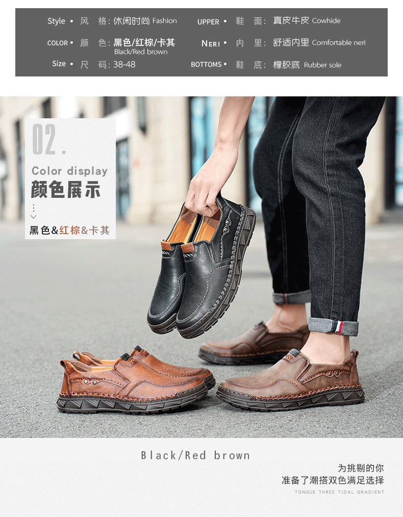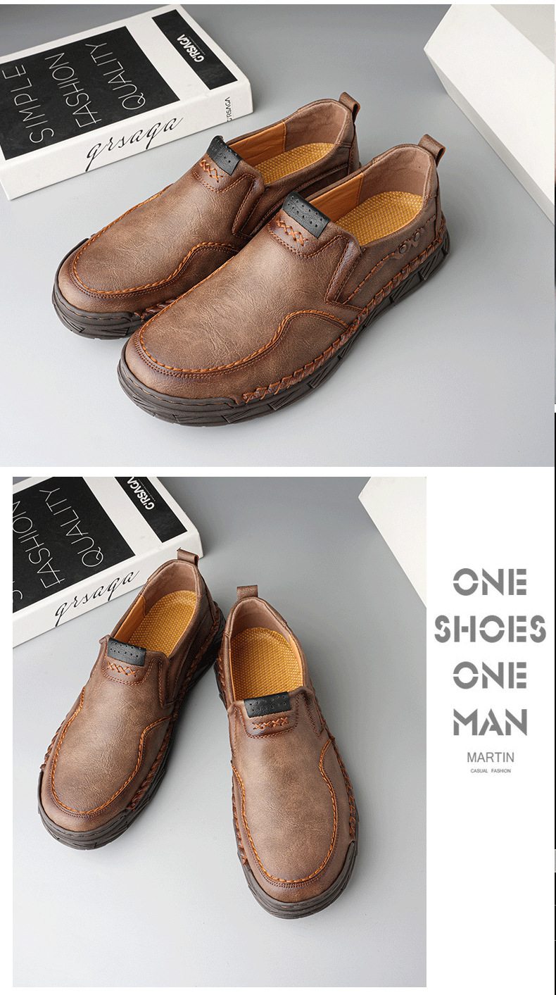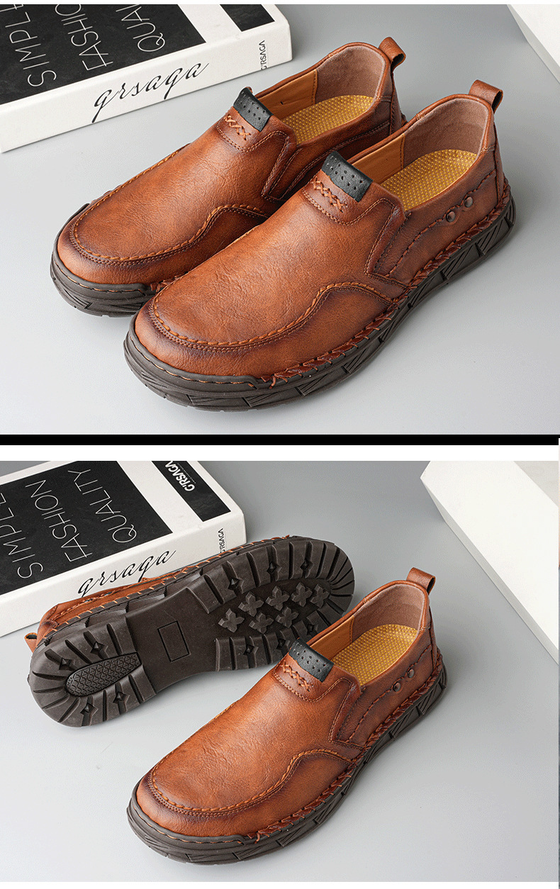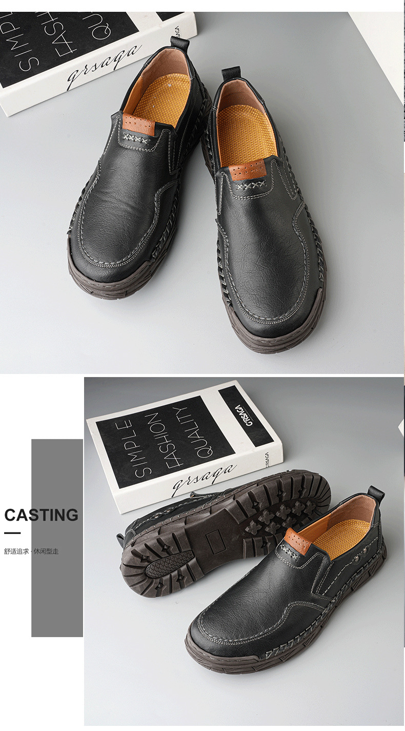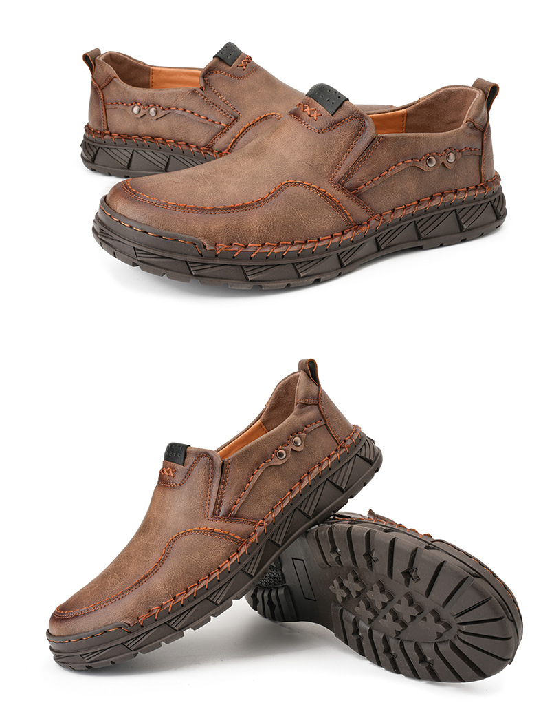 새로운 남성 캐주얼 가죽 신발 대외 무역 남성 복고풍 영국 로퍼 리벳 남성용 손으로 꿰매는 캐주얼 가죽 신발