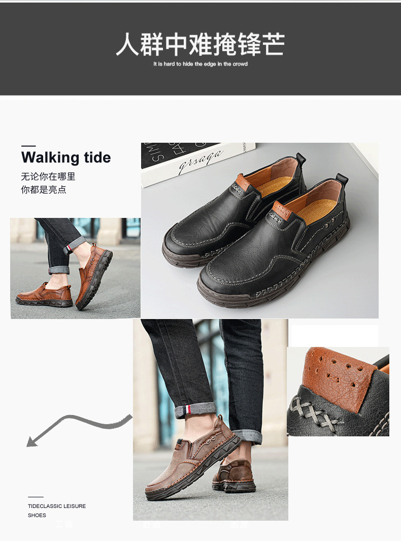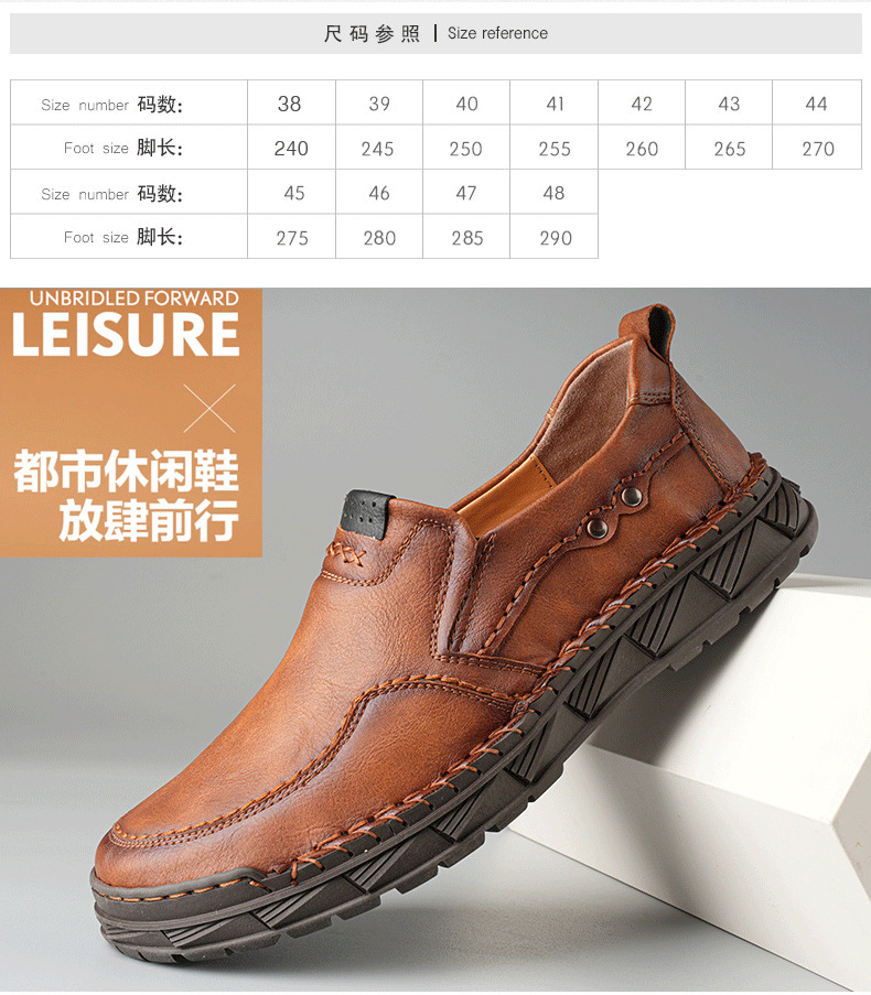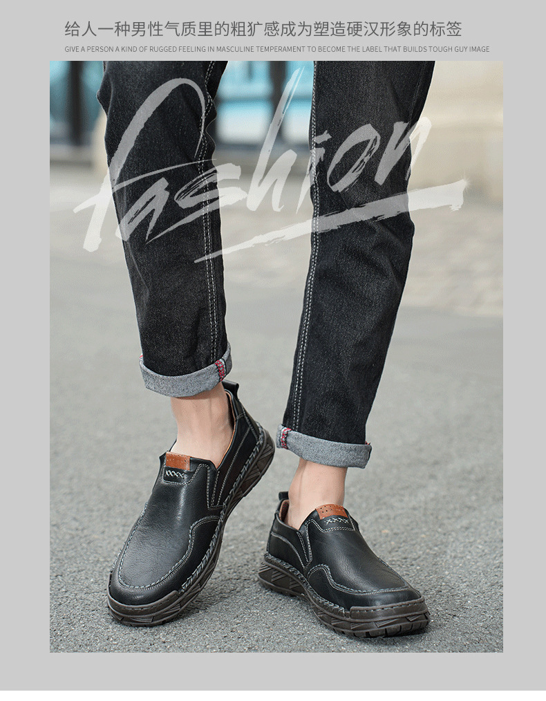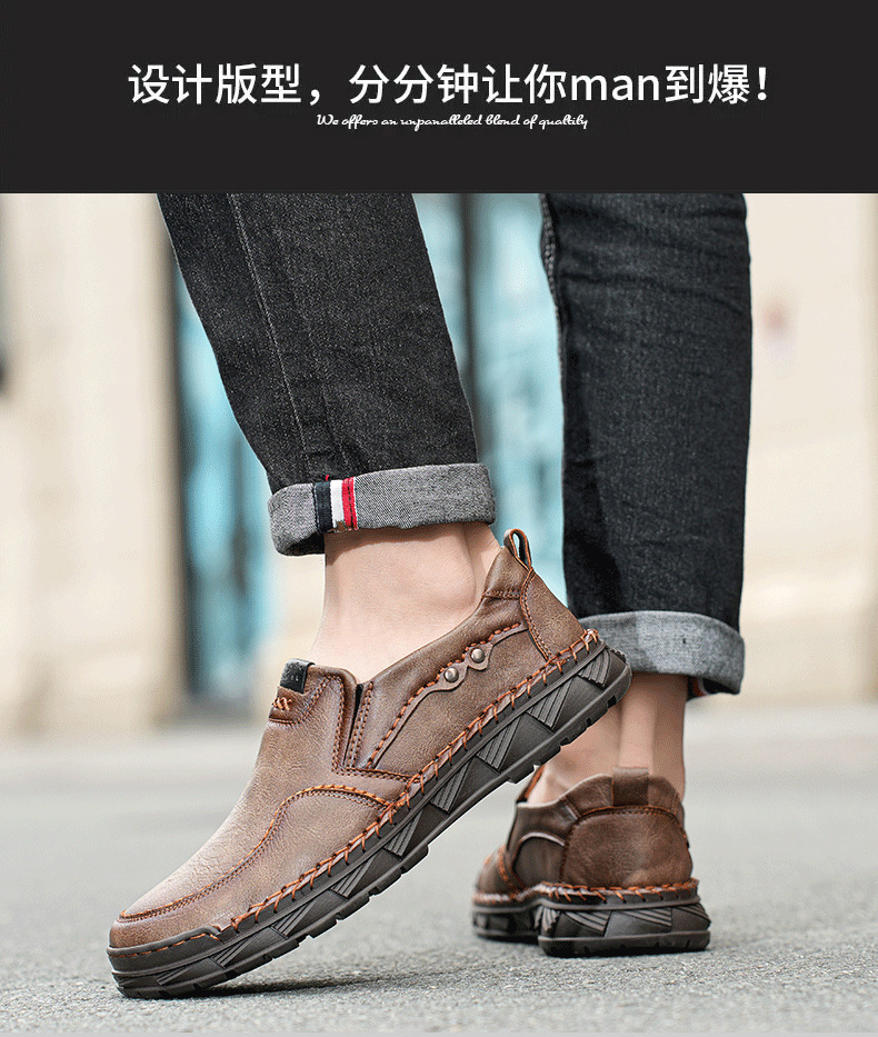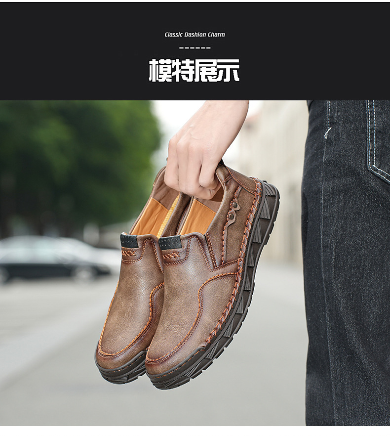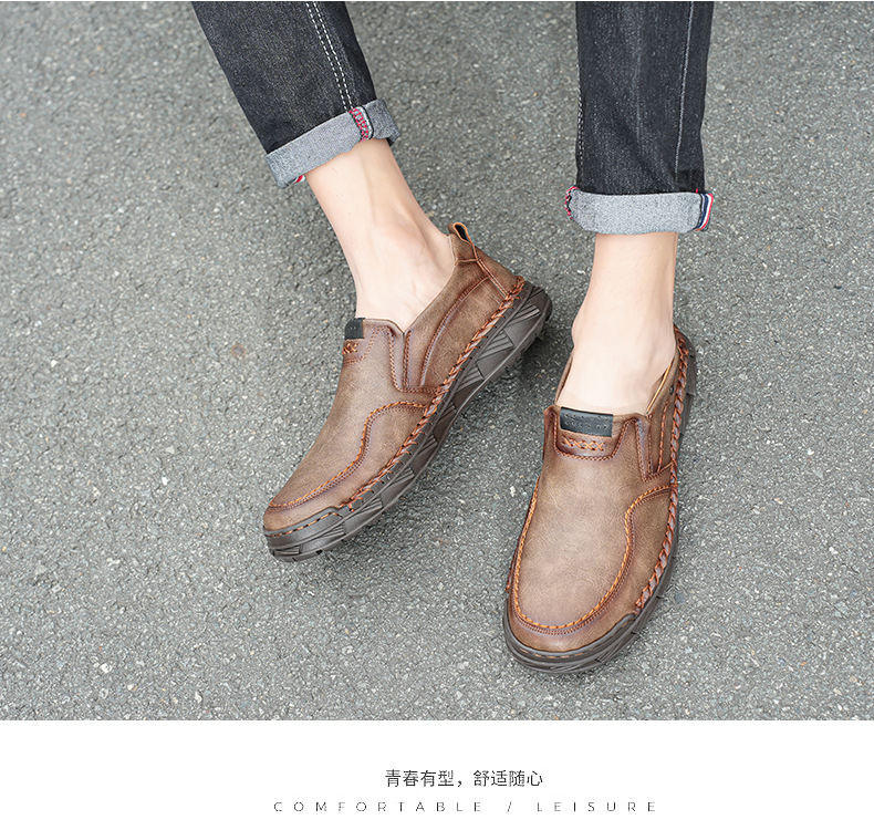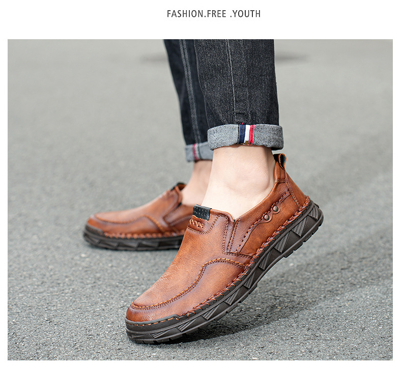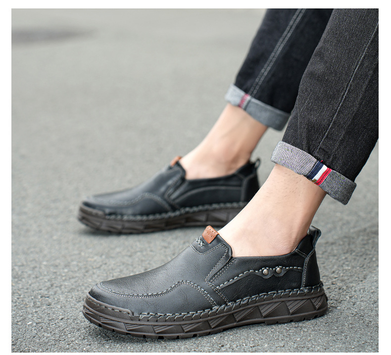 새로운 남성 캐주얼 가죽 신발 대외 무역 남성 복고풍 영국 로퍼 리벳 남성용 손으로 꿰매는 캐주얼 가죽 신발스토어 가기