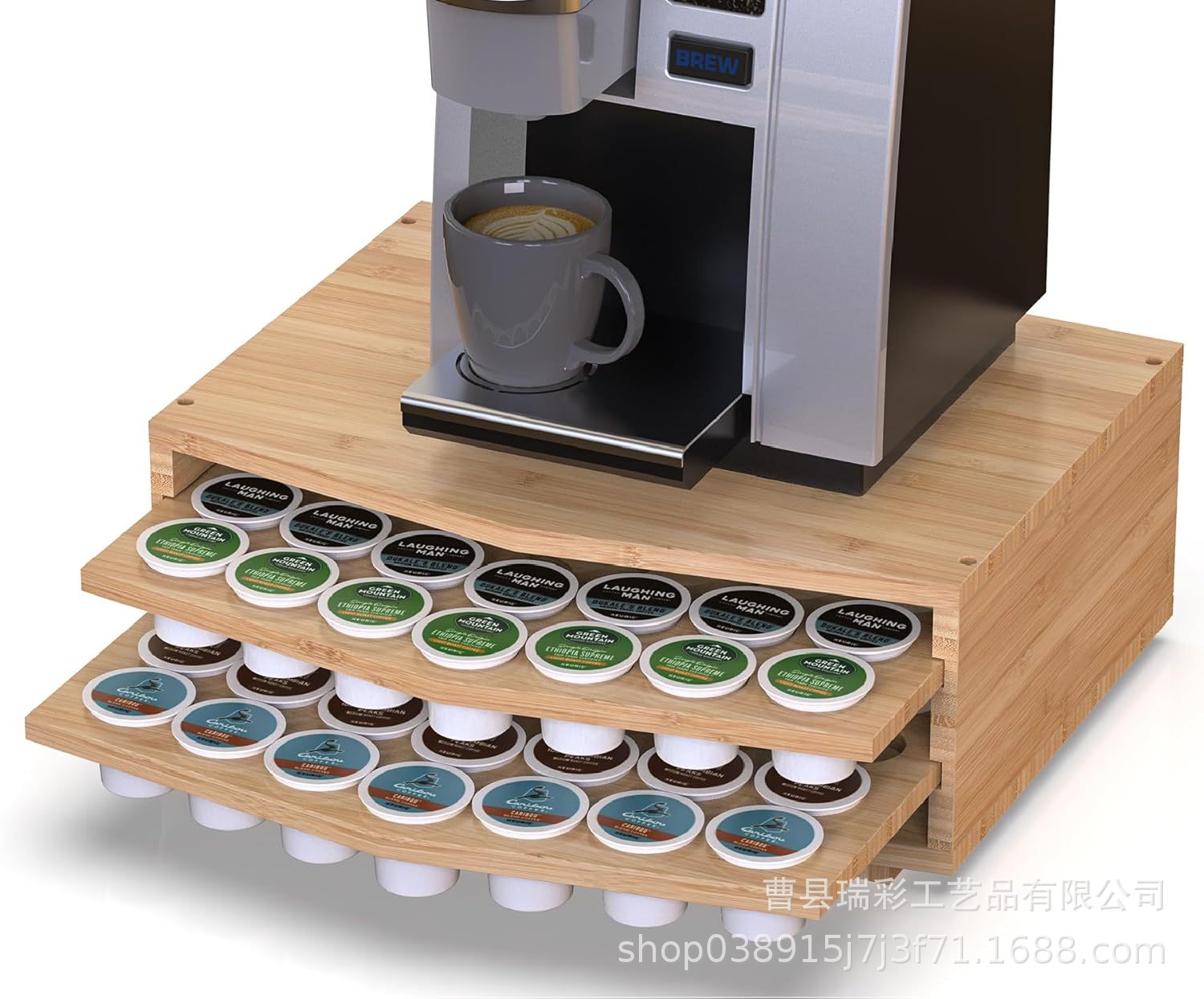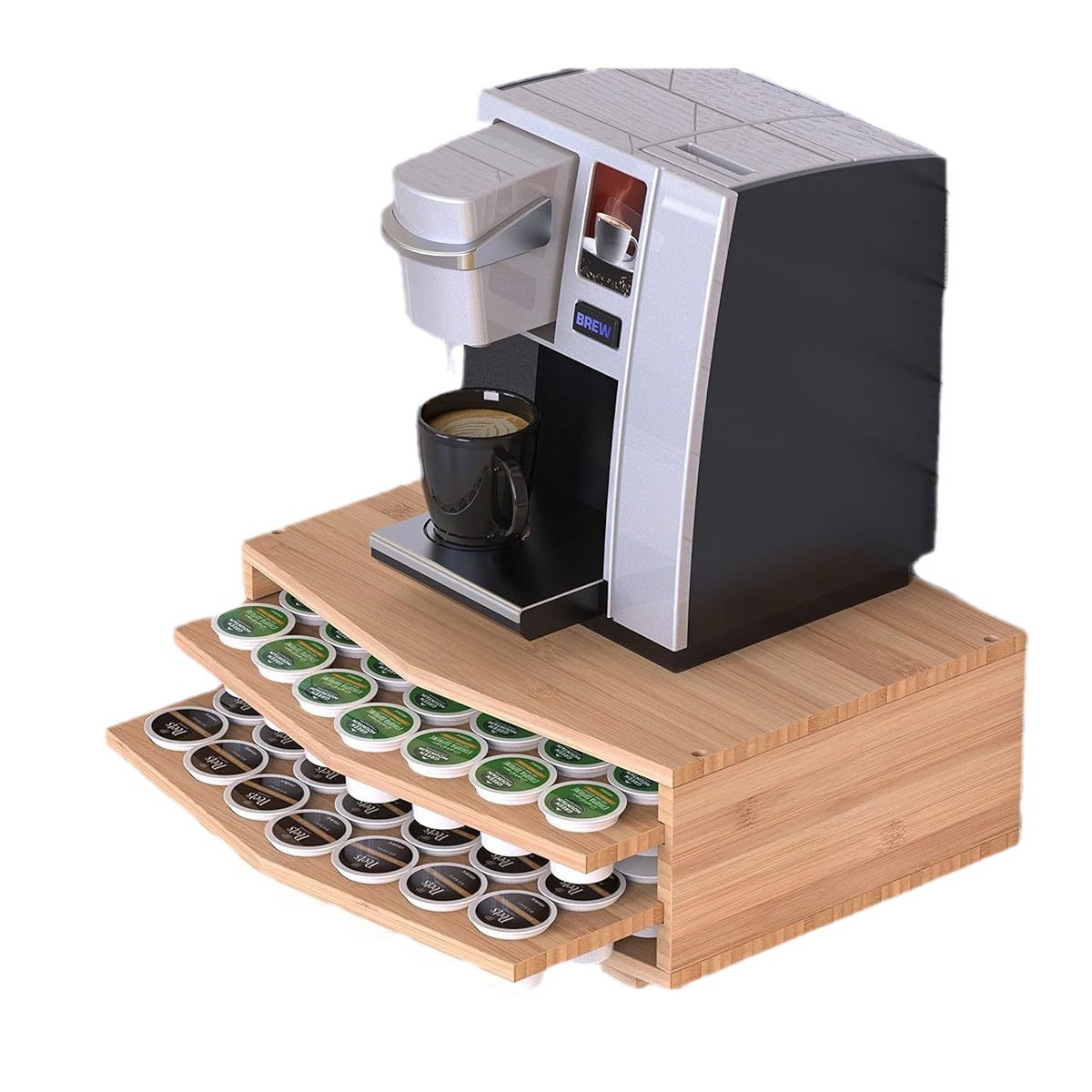더블 레이어 풀 아웃 커피 캡슐 보관 상자 커피 머신 목재 액세서리 디스플레이 스탠드 단단한 커피 머신 베이스