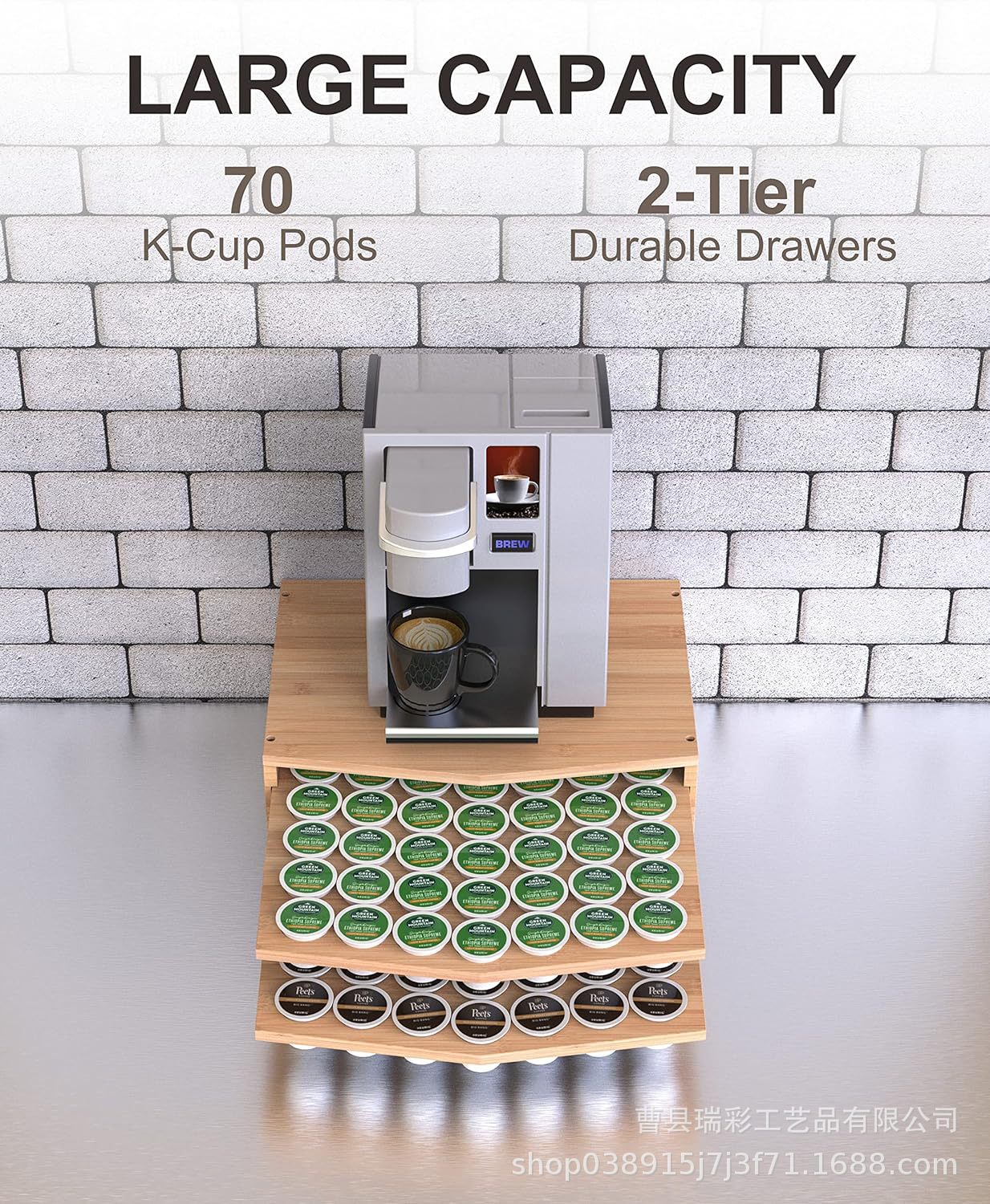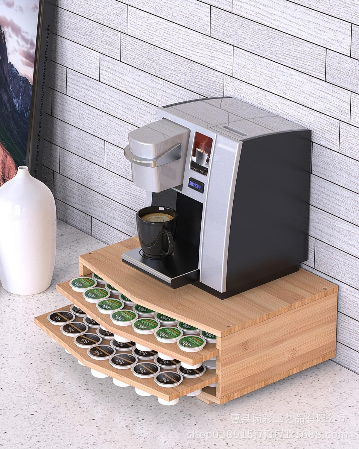 더블 레이어 풀 아웃 커피 캡슐 보관 상자 커피 머신 목재 액세서리 디스플레이 스탠드 단단한 커피 머신 베이스스토어 가기