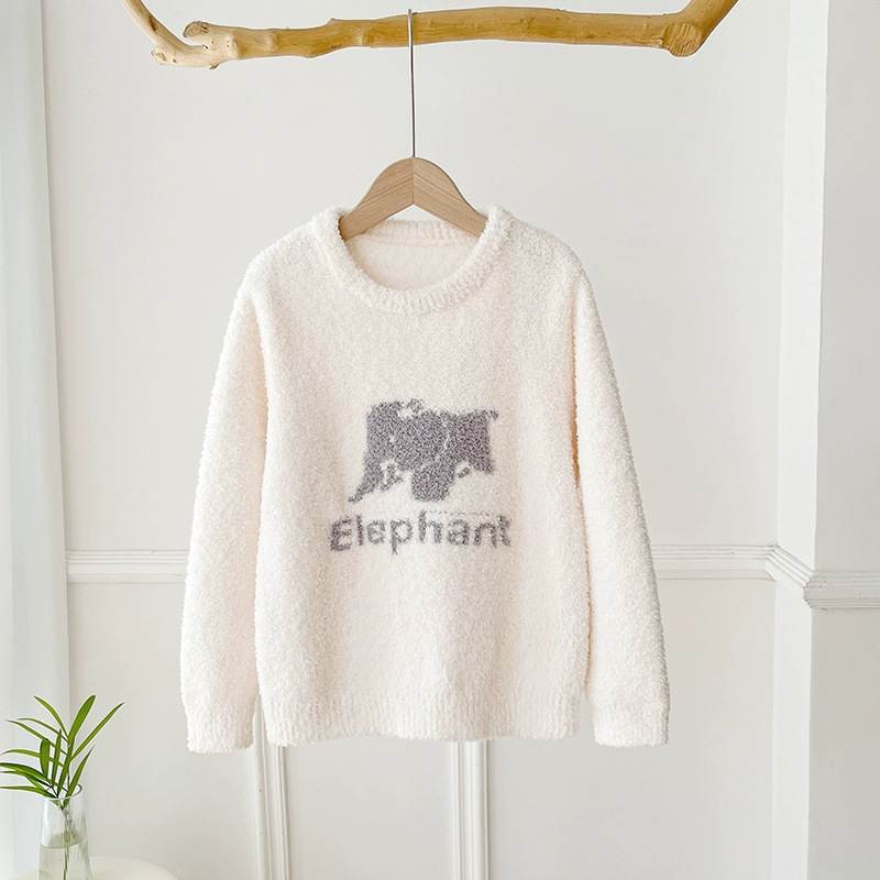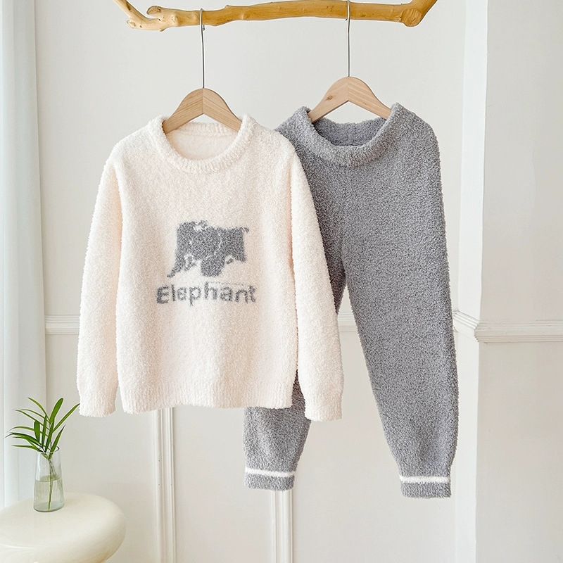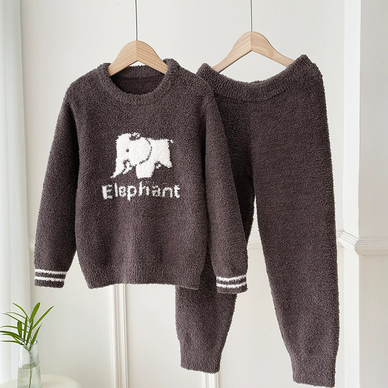 가을과 겨울 부모-어린이 반쪽 벨벳 잠옷 여성의 부드러운 만화 코끼리 겨울 홈 세트 따뜻한 착용