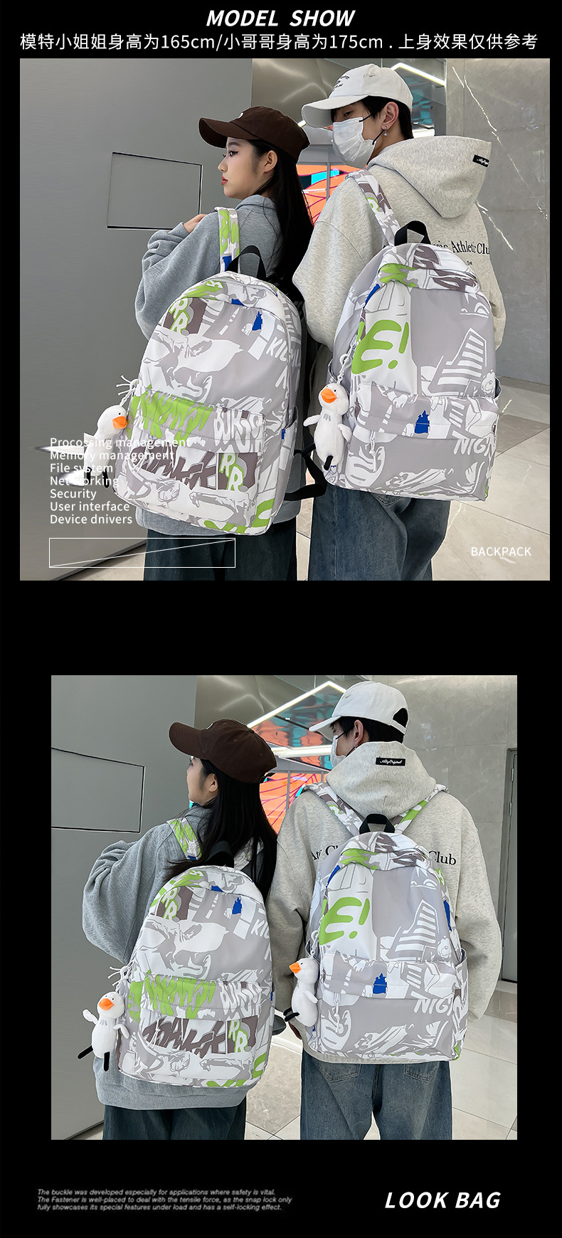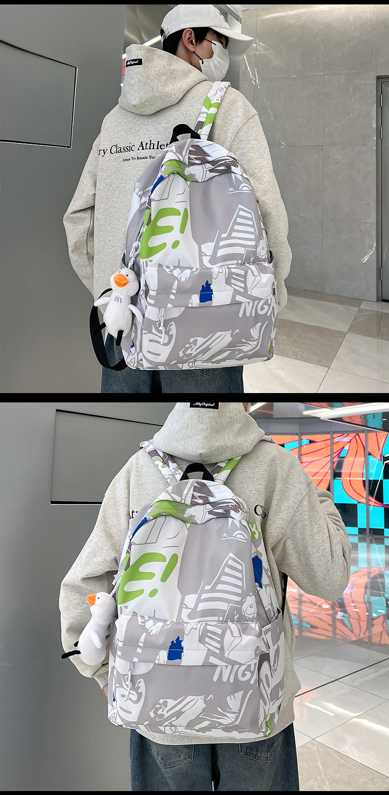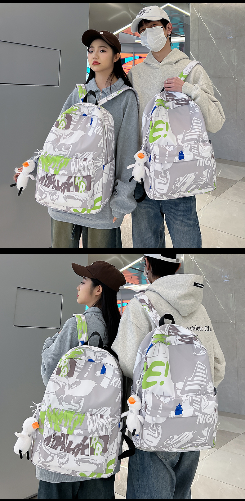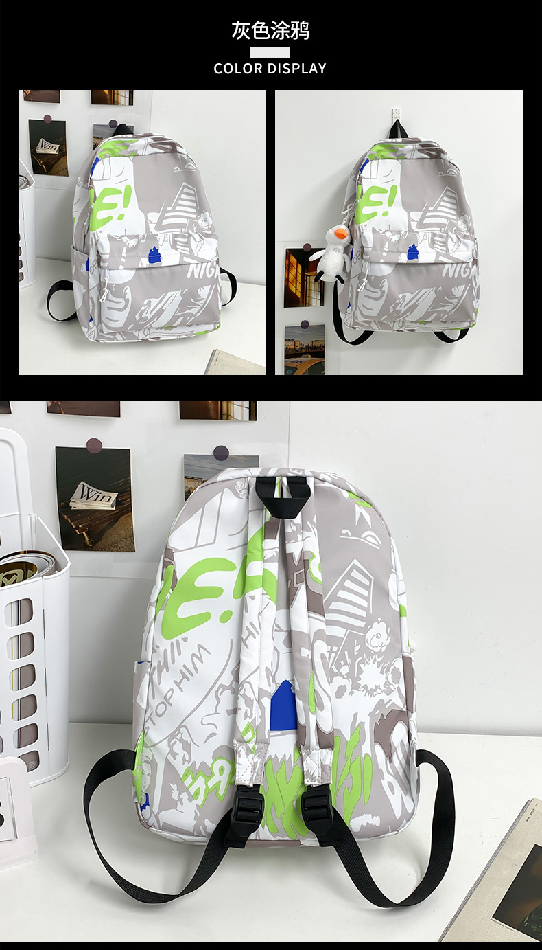 그래피티 프린트 백팩 여성용 2025 여름 캐주얼 백팩 남성용 고등학생 대학생 가방 여성용 레터링 캠퍼스 스타일