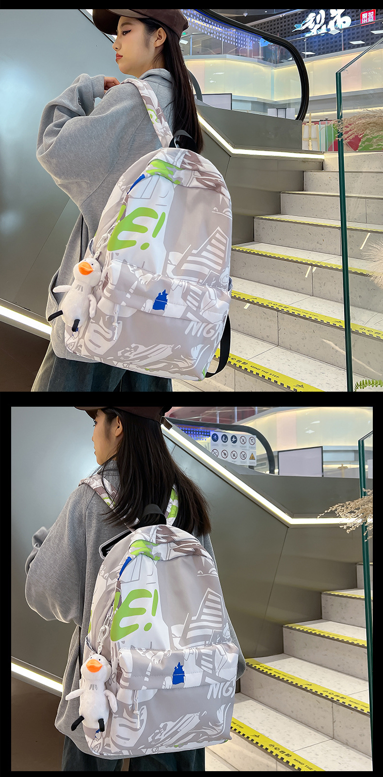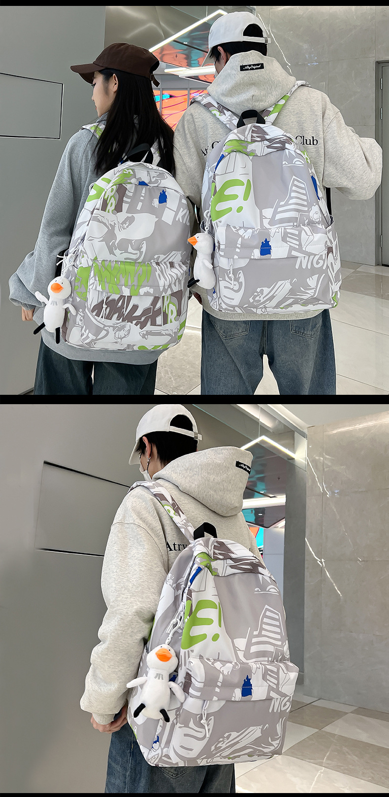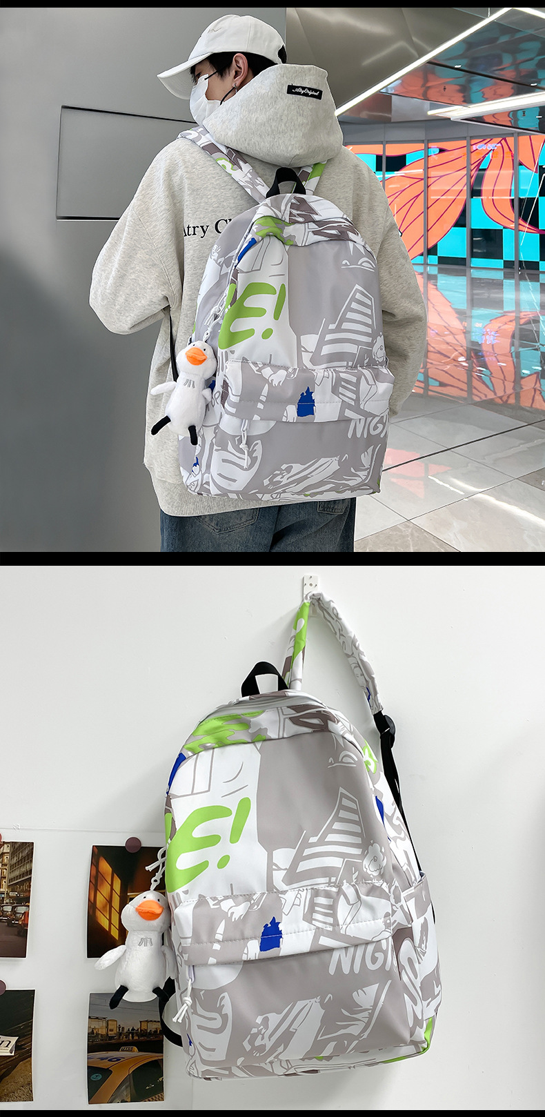 그래피티 프린트 백팩 여성용 2025 여름 캐주얼 백팩 남성용 고등학생 대학생 가방 여성용 레터링 캠퍼스 스타일