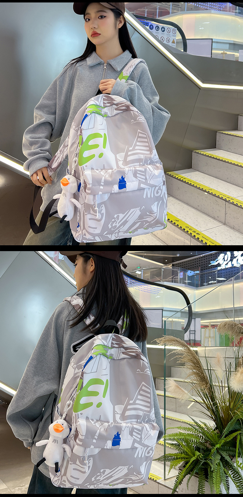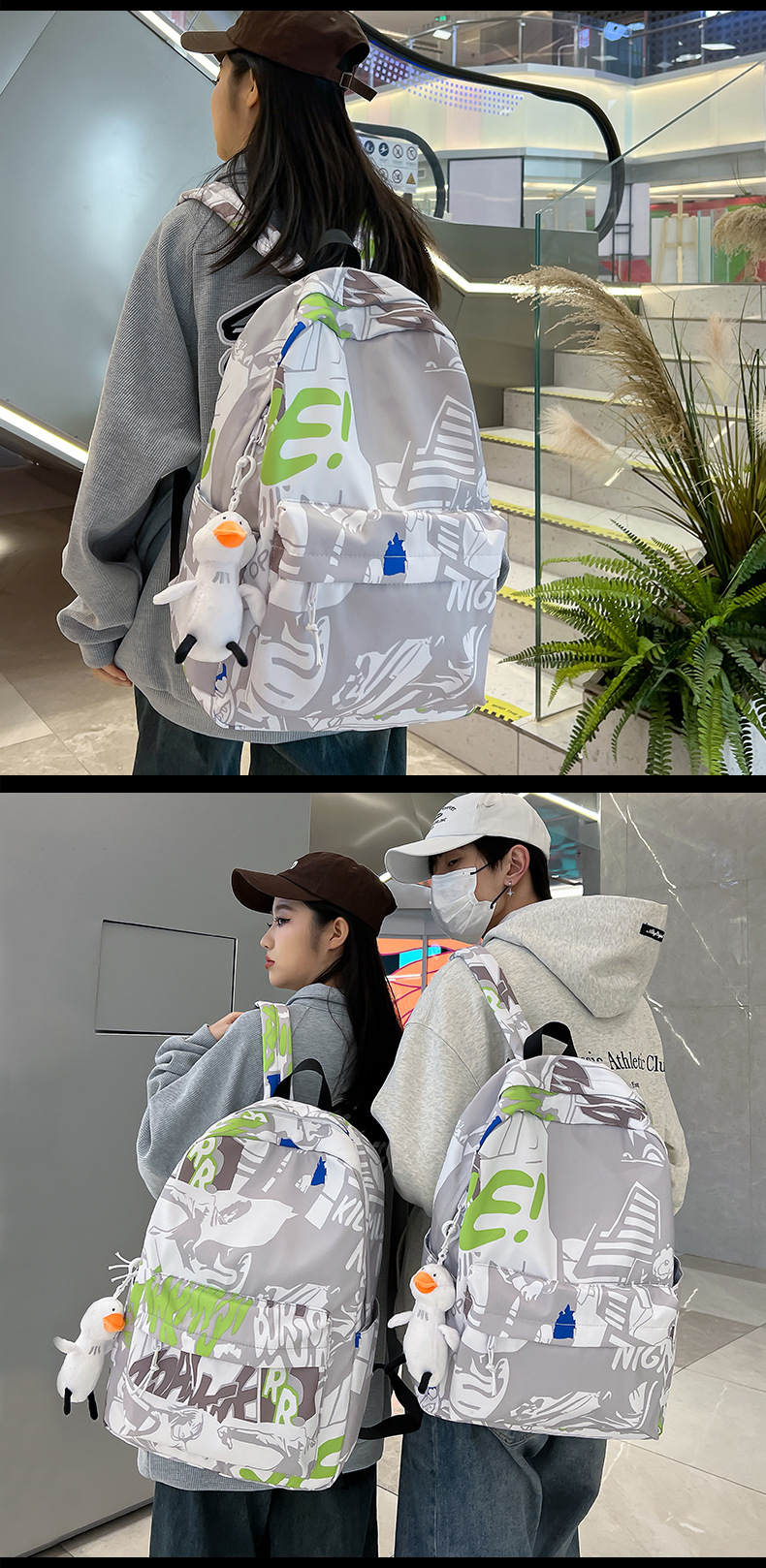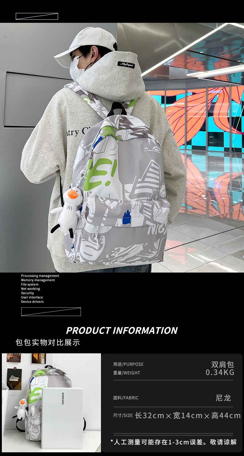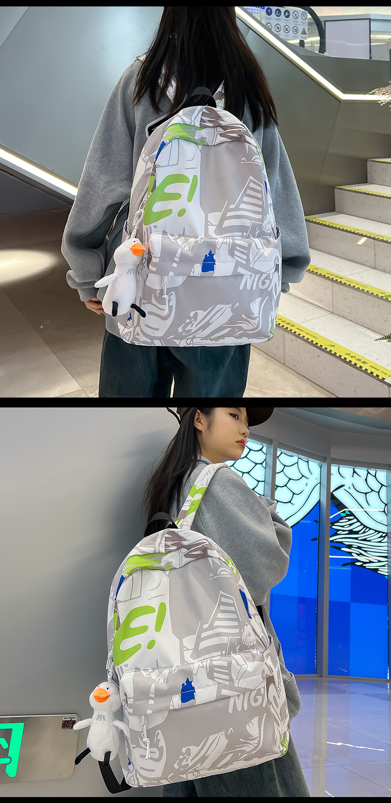 그래피티 프린트 백팩 여성용 2025 여름 캐주얼 백팩 남성용 고등학생 대학생 가방 여성용 레터링 캠퍼스 스타일