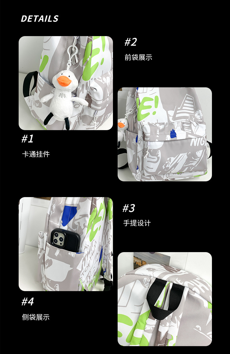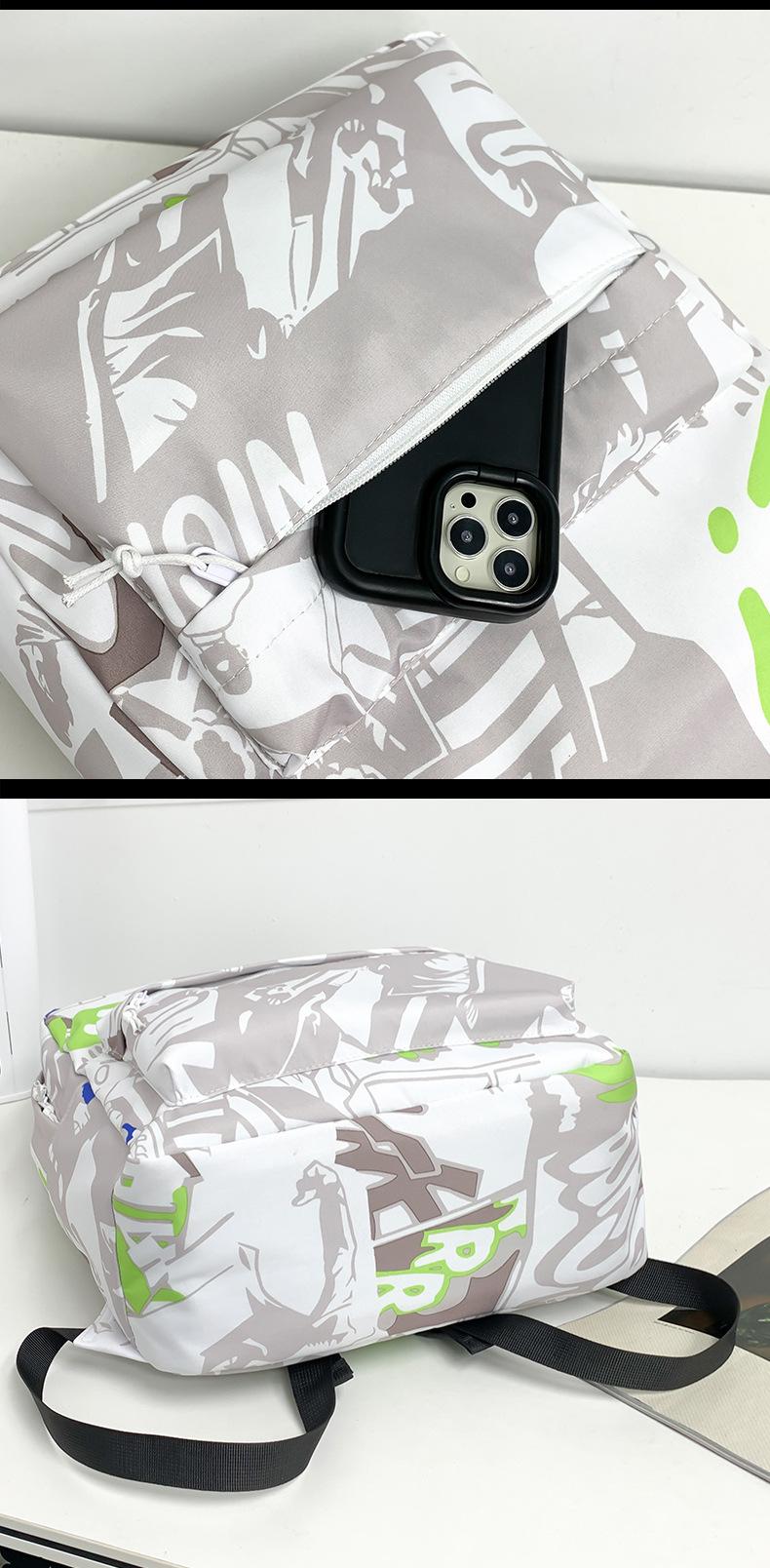 그래피티 프린트 백팩 여성용 2025 여름 캐주얼 백팩 남성용 고등학생 대학생 가방 여성용 레터링 캠퍼스 스타일스토어 가기