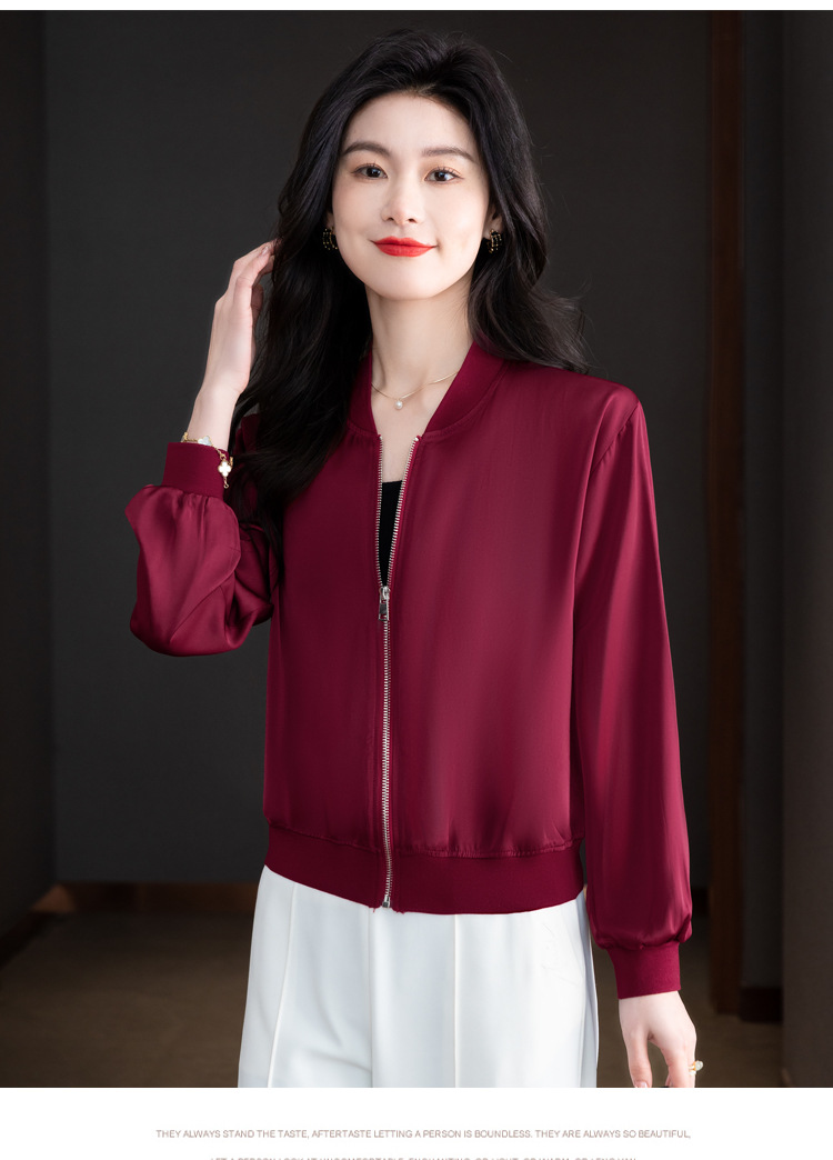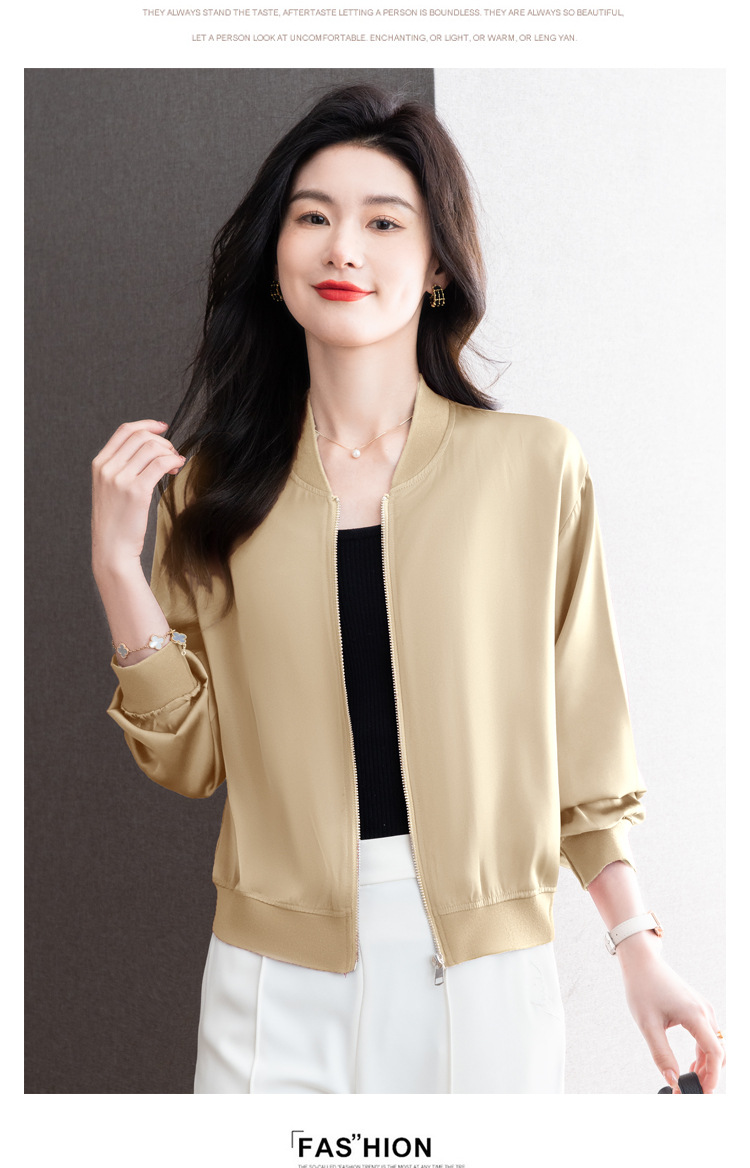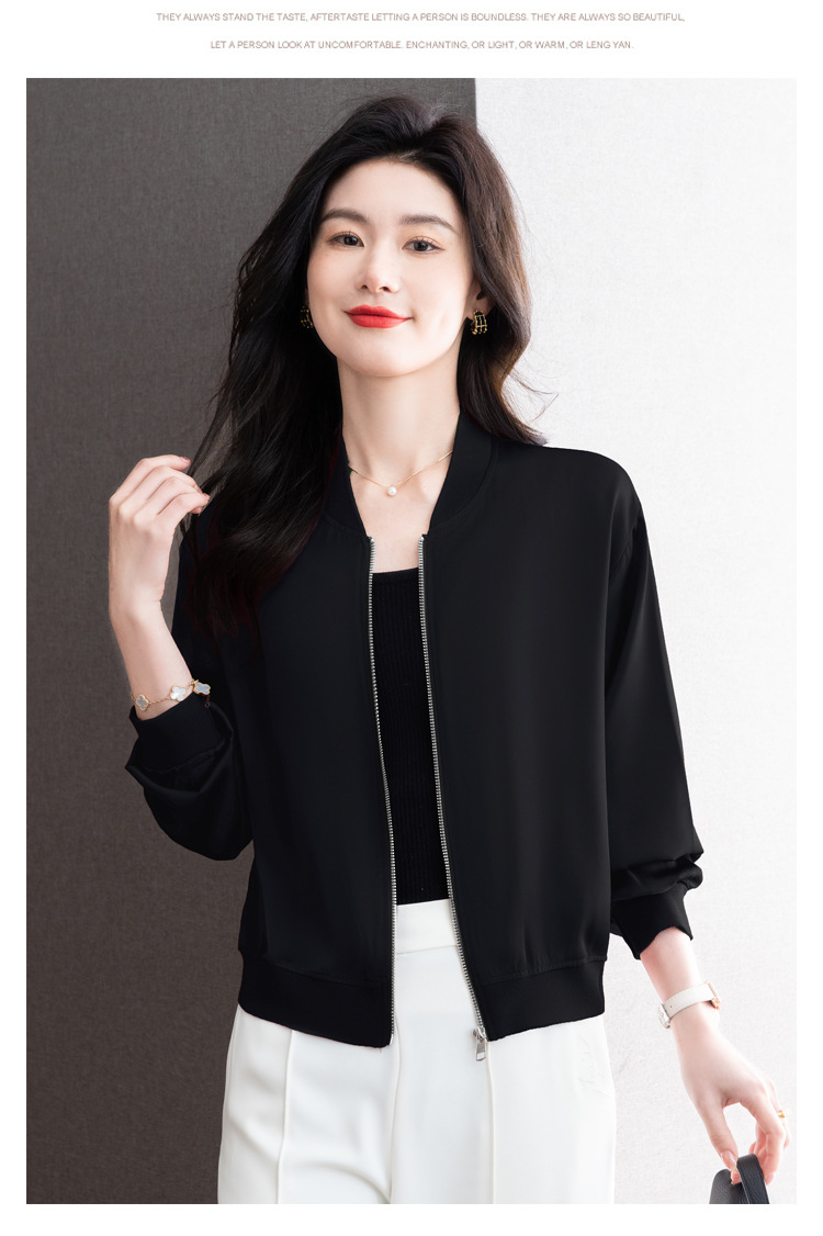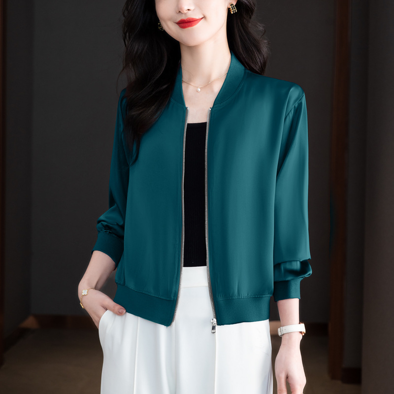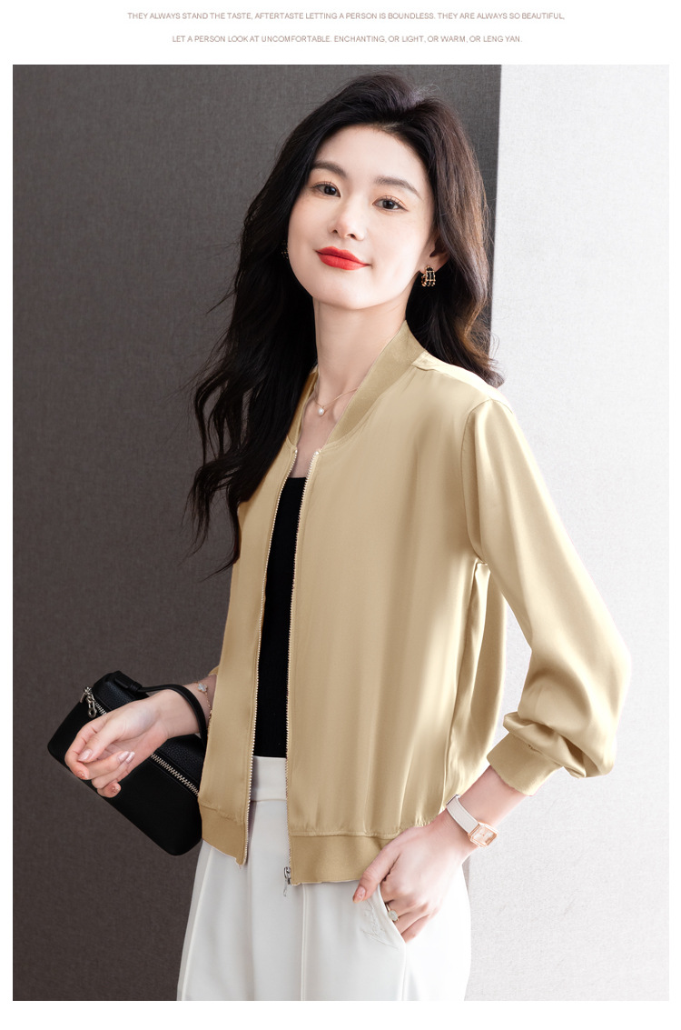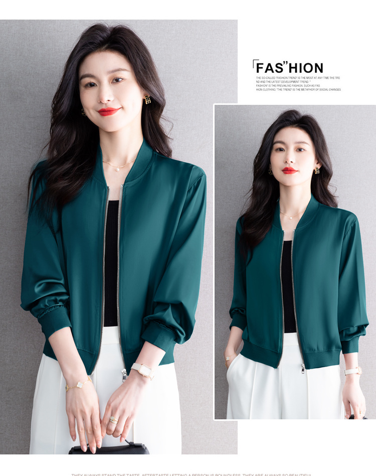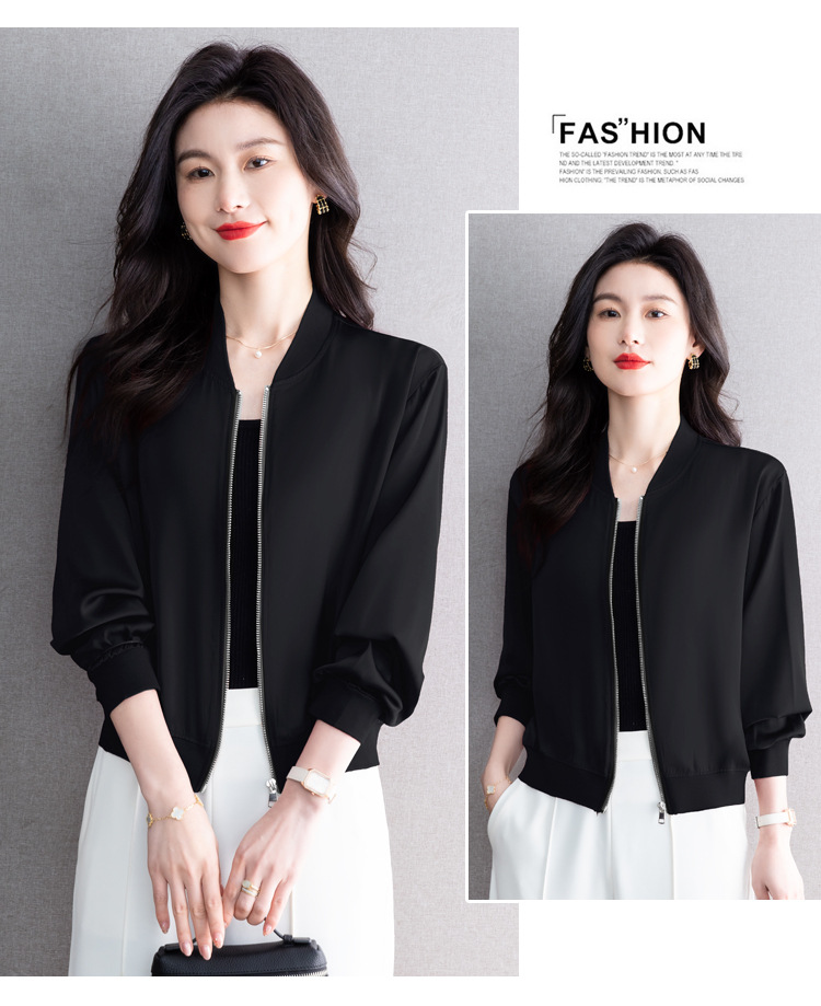 아세테이트 새틴 야구 유니폼 2024 봄 새로운 캐주얼 느슨한 긴 소매 카디건 재킷 짧은 코트 여성용 탑