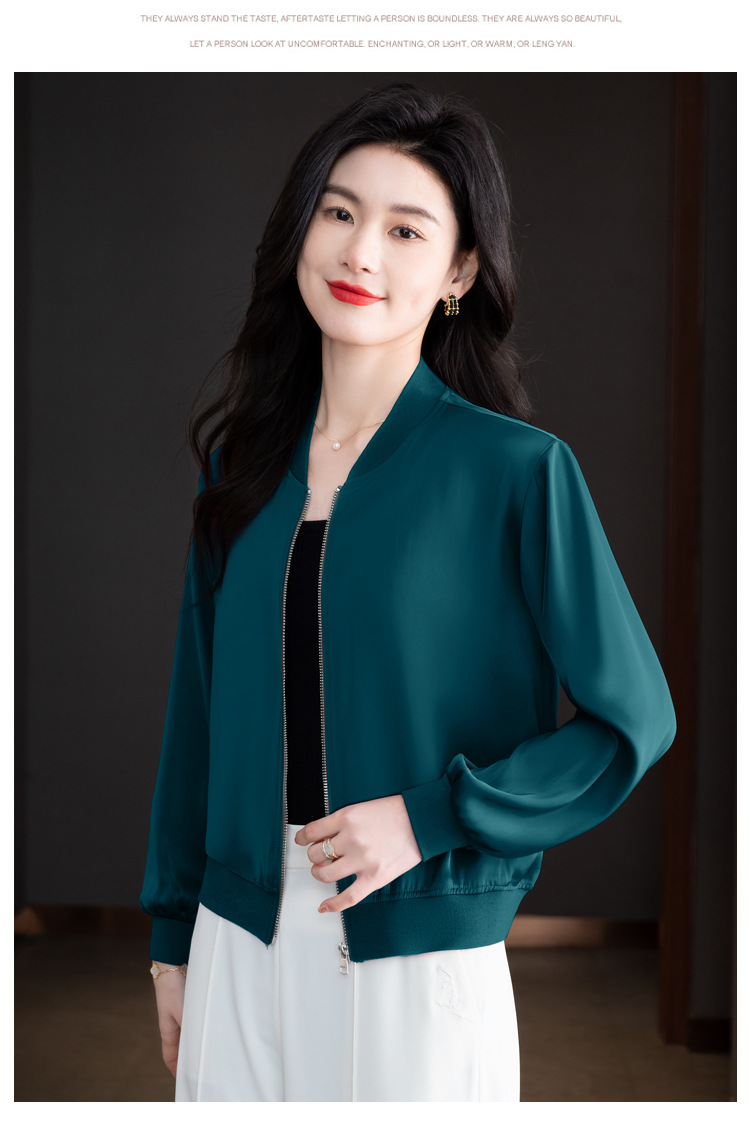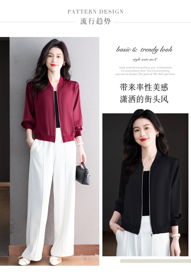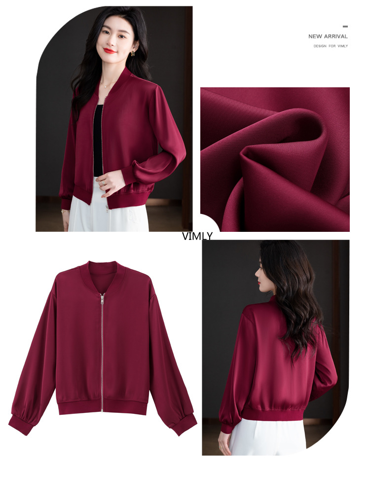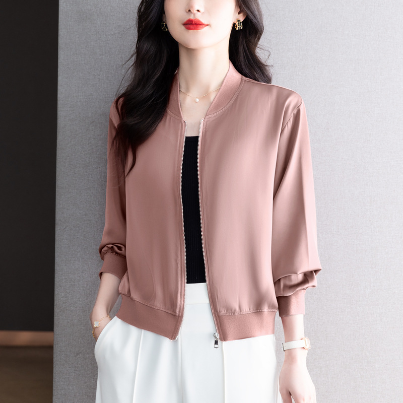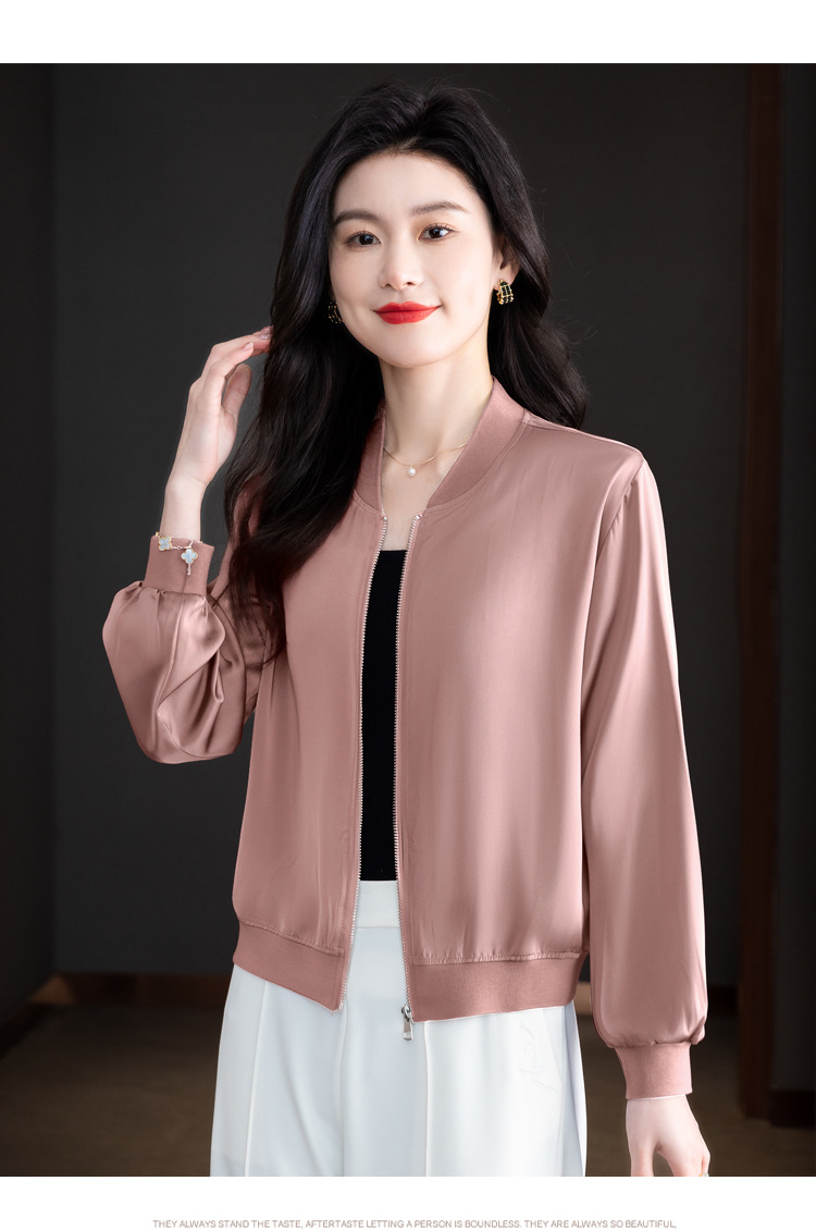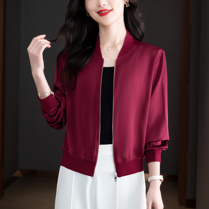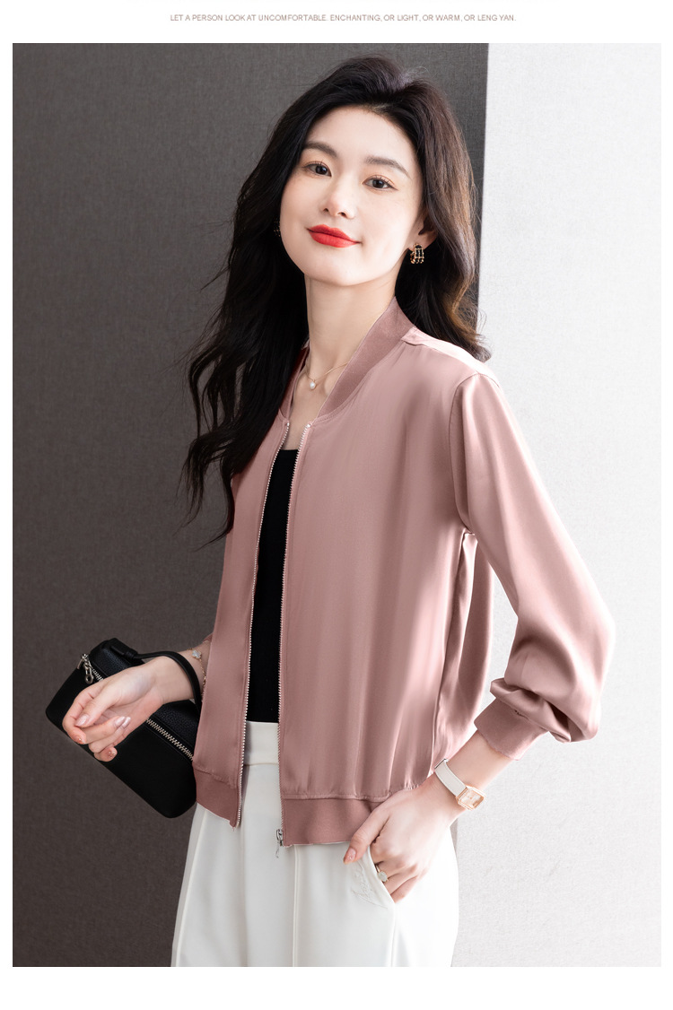 아세테이트 새틴 야구 유니폼 2024 봄 새로운 캐주얼 느슨한 긴 소매 카디건 재킷 짧은 코트 여성용 탑