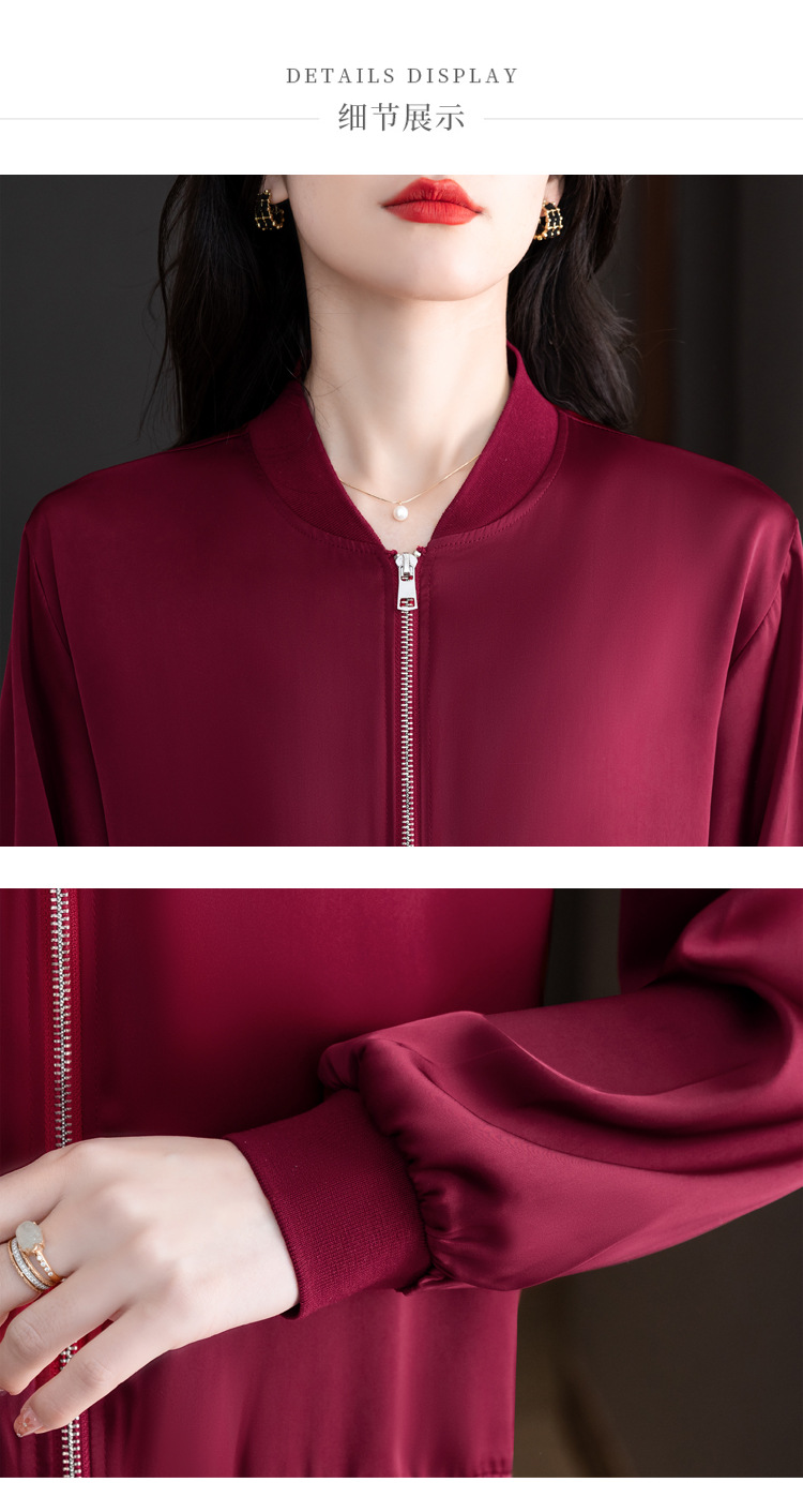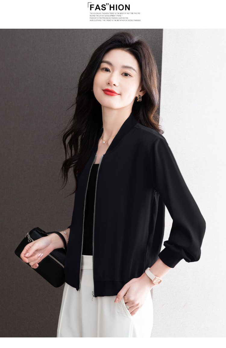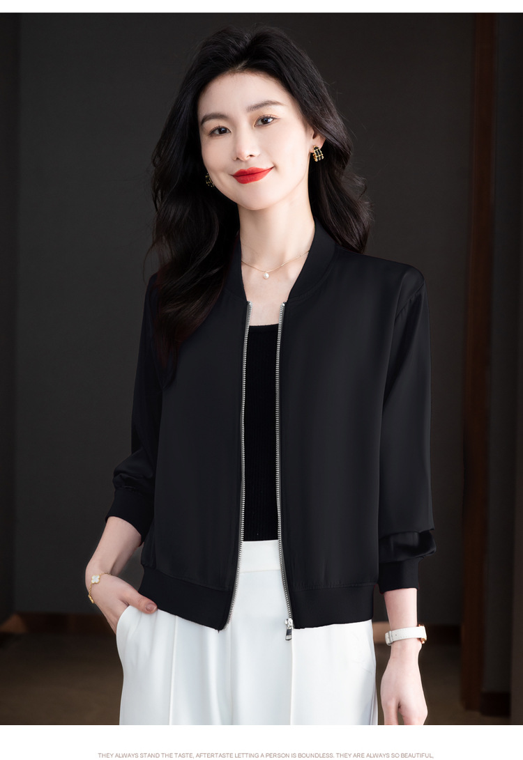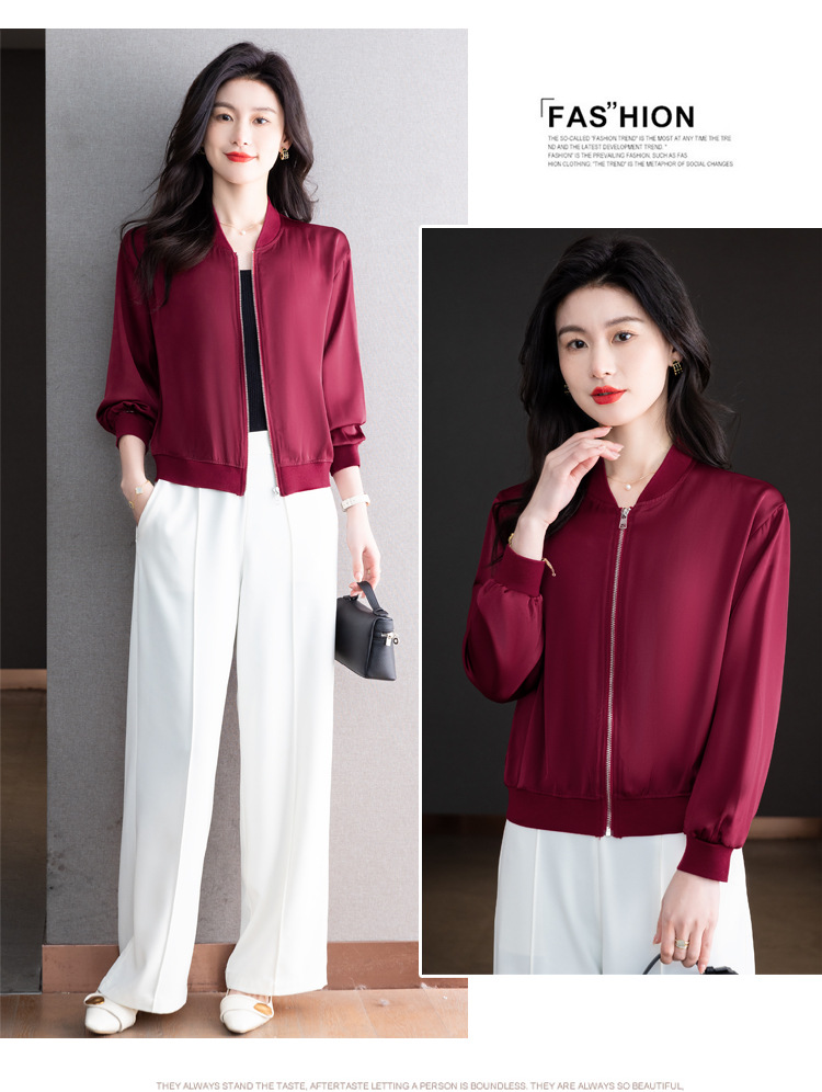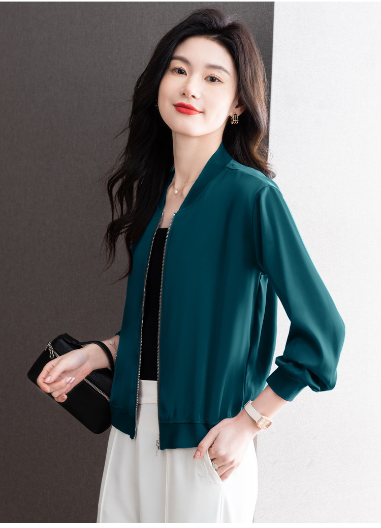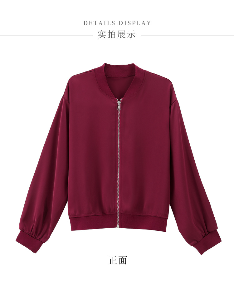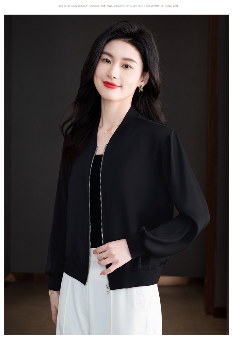 아세테이트 새틴 야구 유니폼 2024 봄 새로운 캐주얼 느슨한 긴 소매 카디건 재킷 짧은 코트 여성용 탑