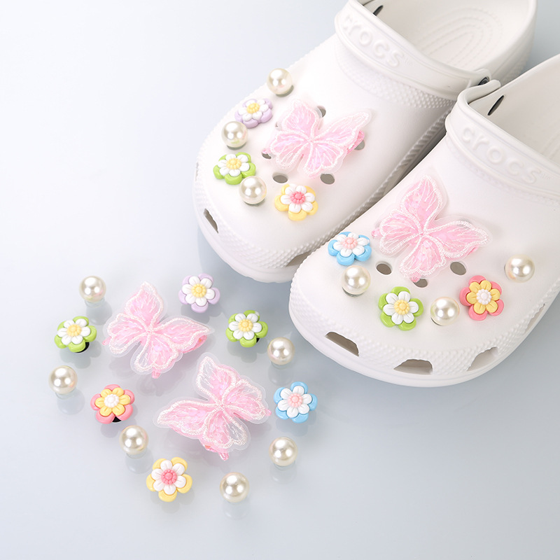 홀 신발 액세서리 DIY 나비 라인스톤 체인 홀 신발 액세서리 상부 장식 신발 버클 버클 크로스 신발 꽃