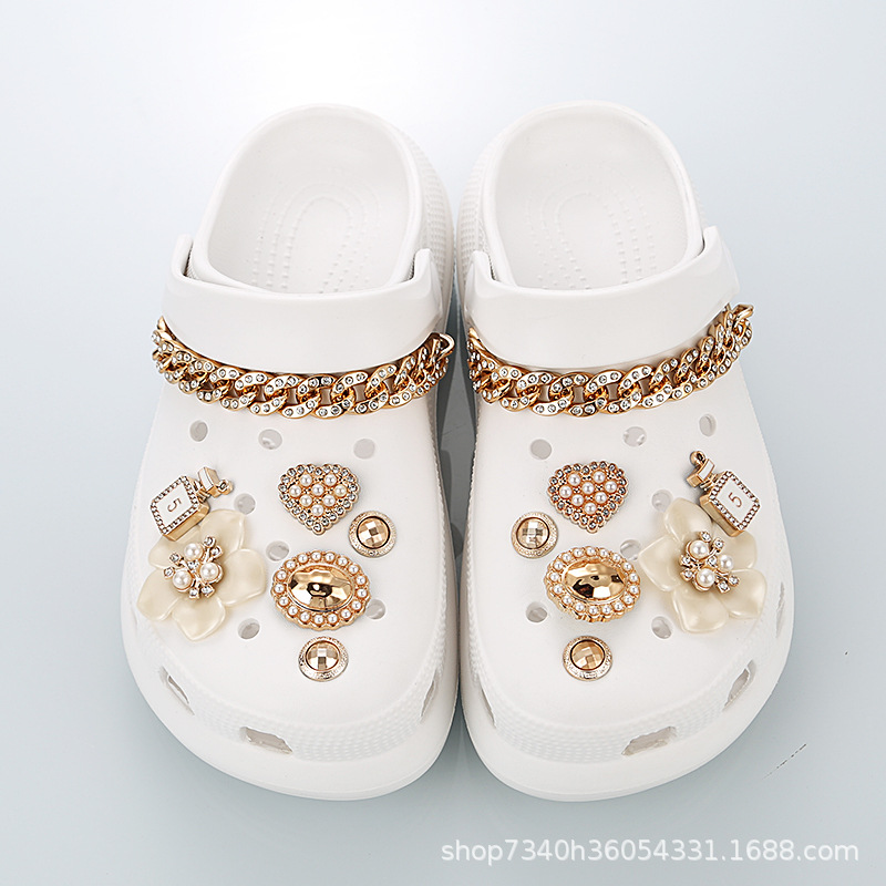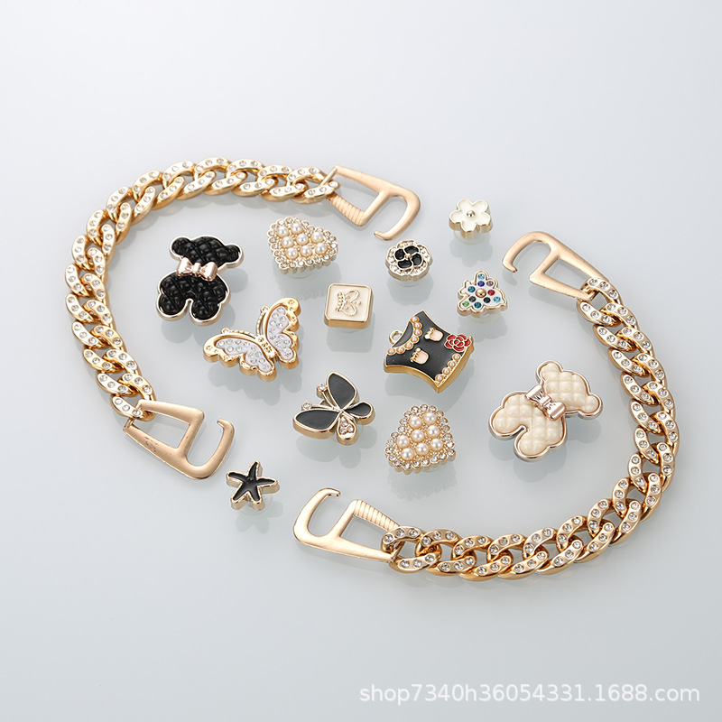 홀 신발 액세서리 DIY 나비 라인스톤 체인 홀 신발 액세서리 상부 장식 신발 버클 버클 크로스 신발 꽃스토어 가기