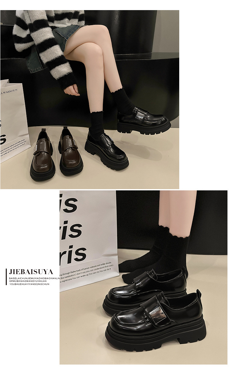 봄 새로운 블랙 청키 힐 가죽 신발 여성 영국 스타일 벨크로 로퍼 여성의 일본 JK 메리 제인 신발스토어 가기