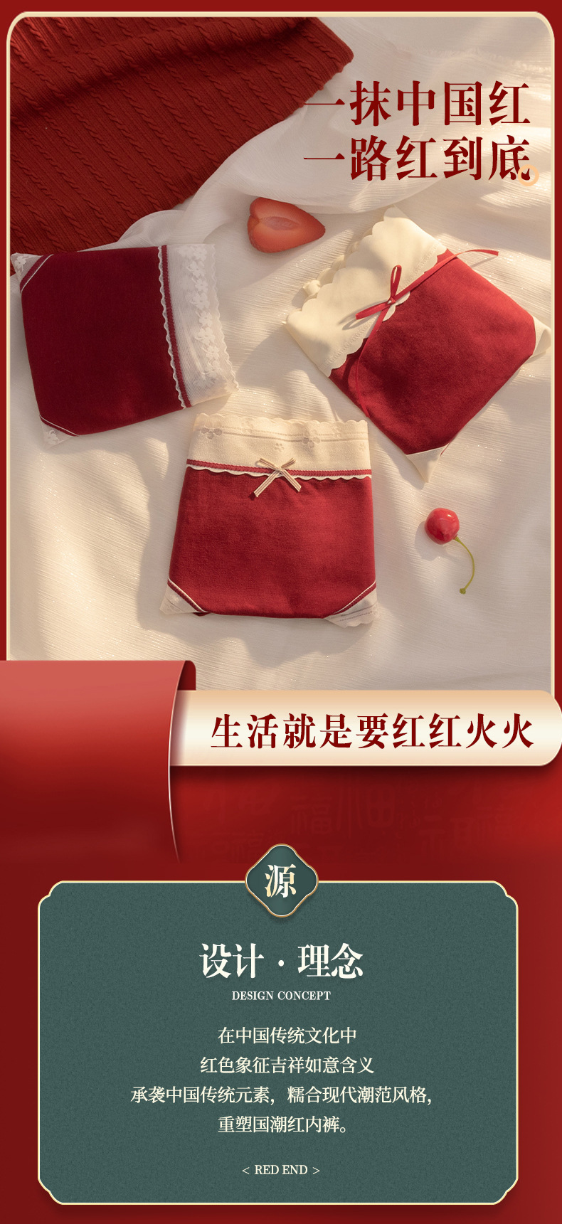 빅 레드 큰 보라색 출생 년 큰 빨간 속옷 여성의 플러스 사이즈 중간 허리 통기성 원활한 여성 속옷 결혼식 축제스토어 가기