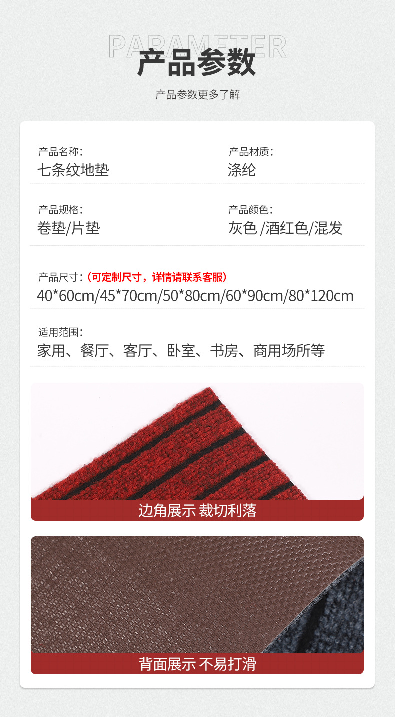 일곱 줄무늬 바닥 매트 주방 매트 카펫 현관문 매트 바닥 전체에 깔리는 미끄럼 방지 방수 가정용 현관 매트