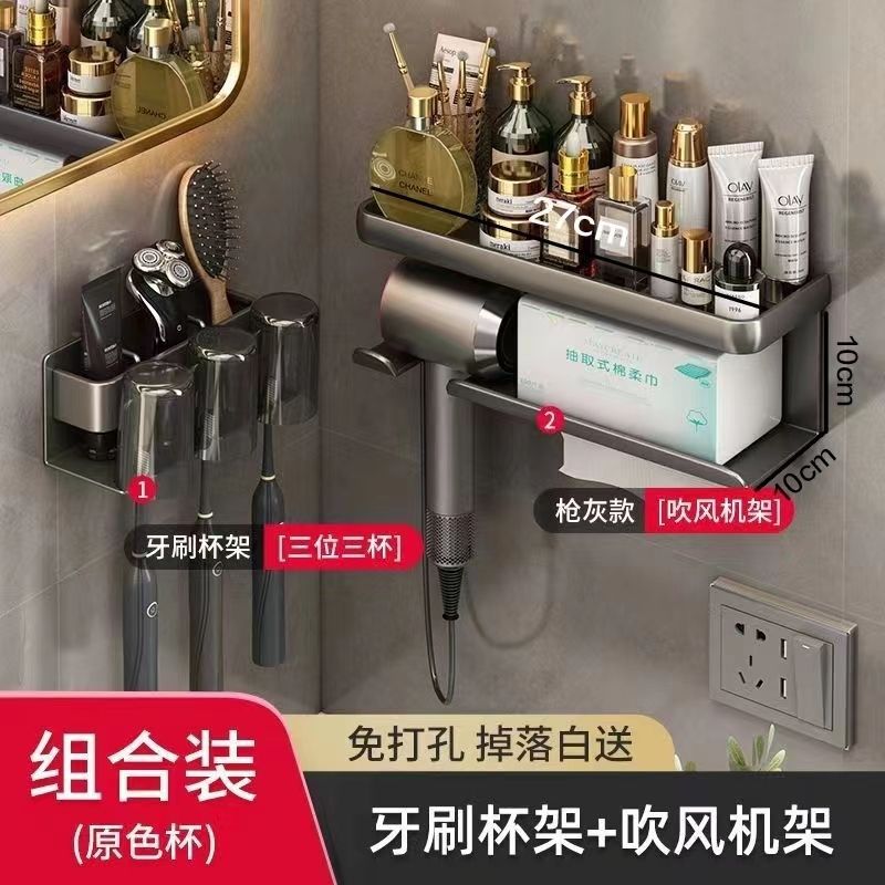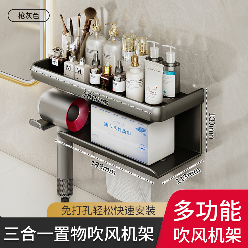 욕실 화장품 랙 헤어 드라이어 브래킷 욕실 총 애쉬 벽걸이 조직 보관 선반 헤어 드라이어