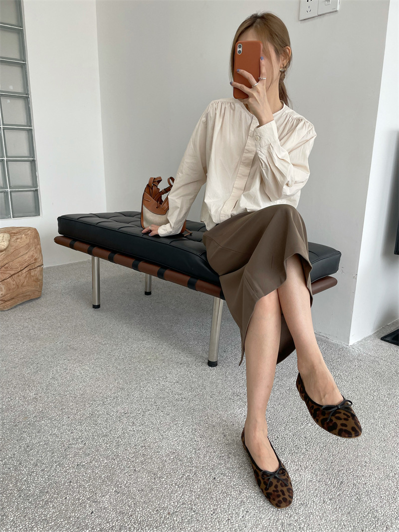 2023 새로운 활 둥근 발가락 얕은 입 싱글 레이어 신발 여성 플랫 밀크 신발 부드러운 가죽 부드러운 바닥 완두콩 신발 여성용 복고풍