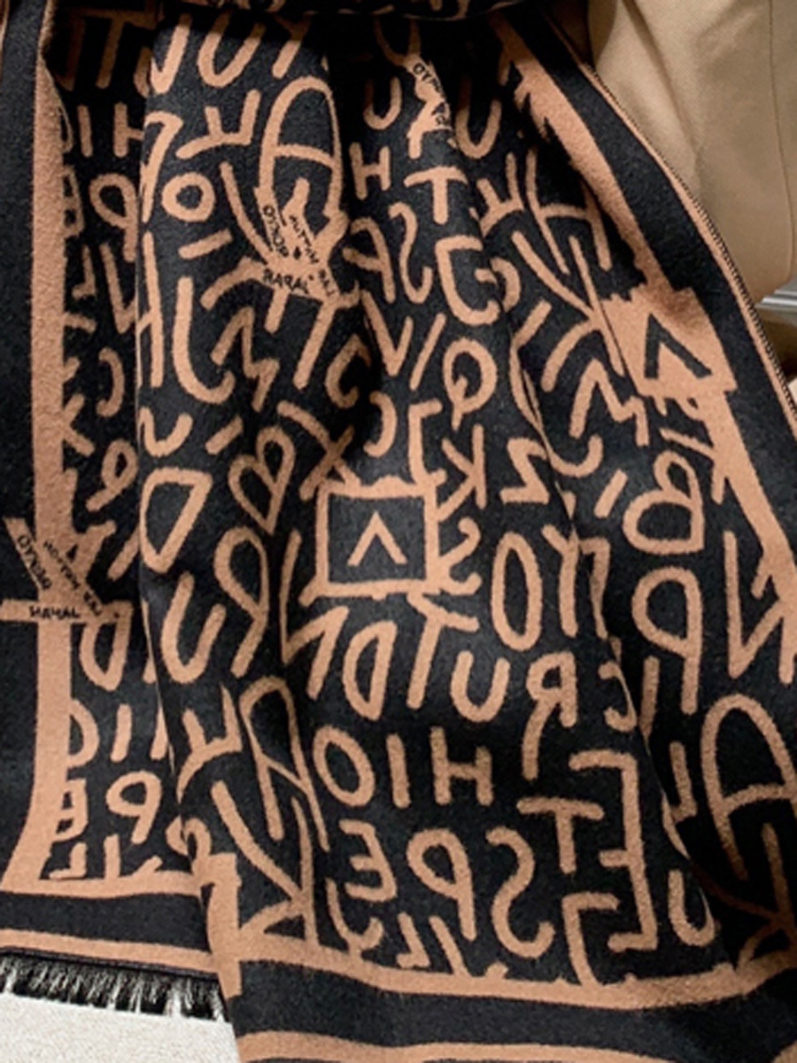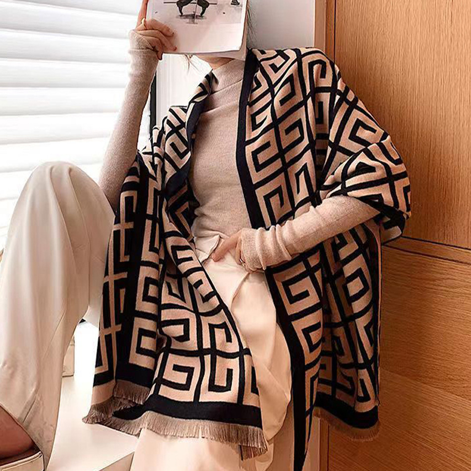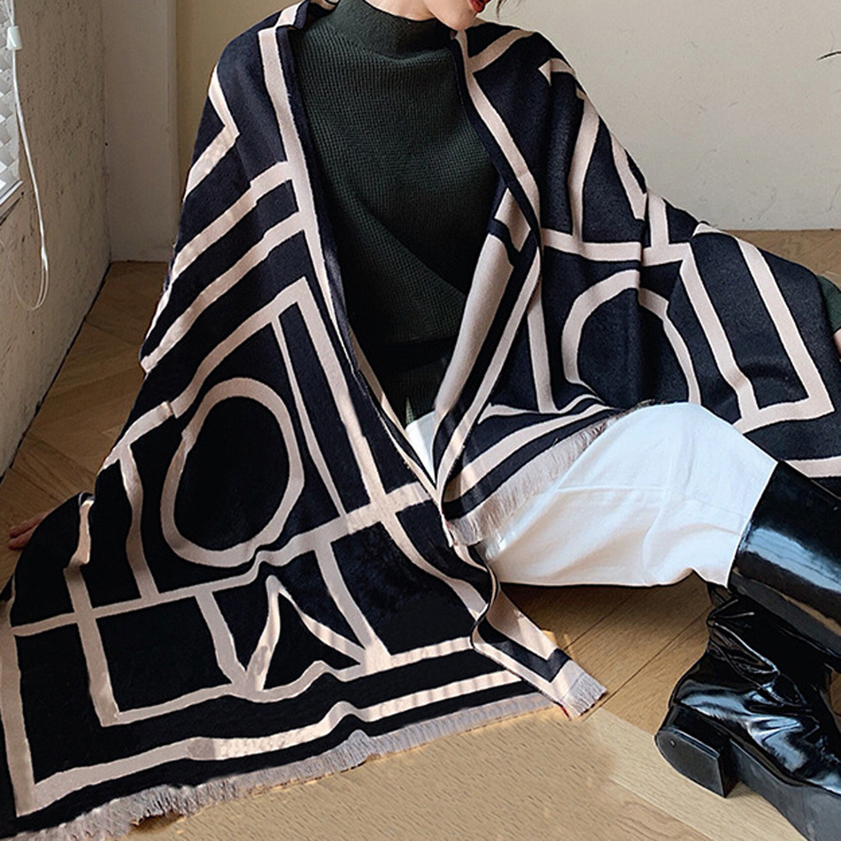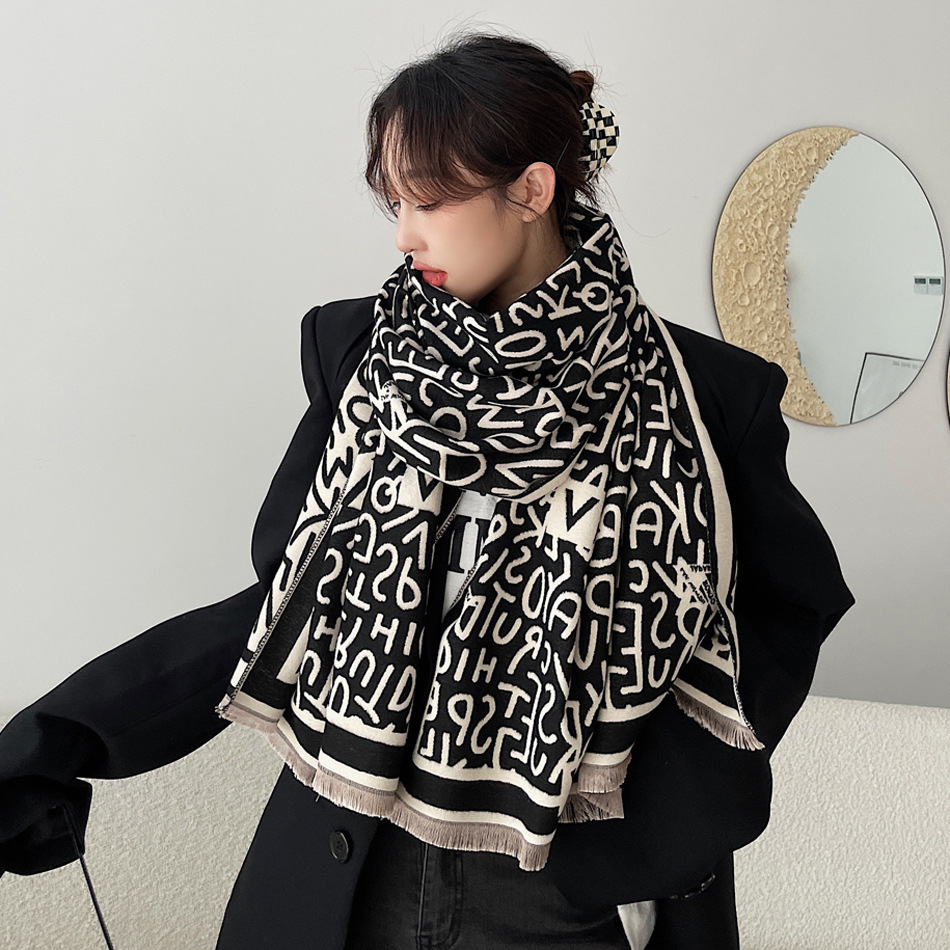 새로운 두꺼운 양면 스카프 여성의 인쇄 된 기하학적 편지 캐시미어 폭발성 목도리 따뜻한 목
