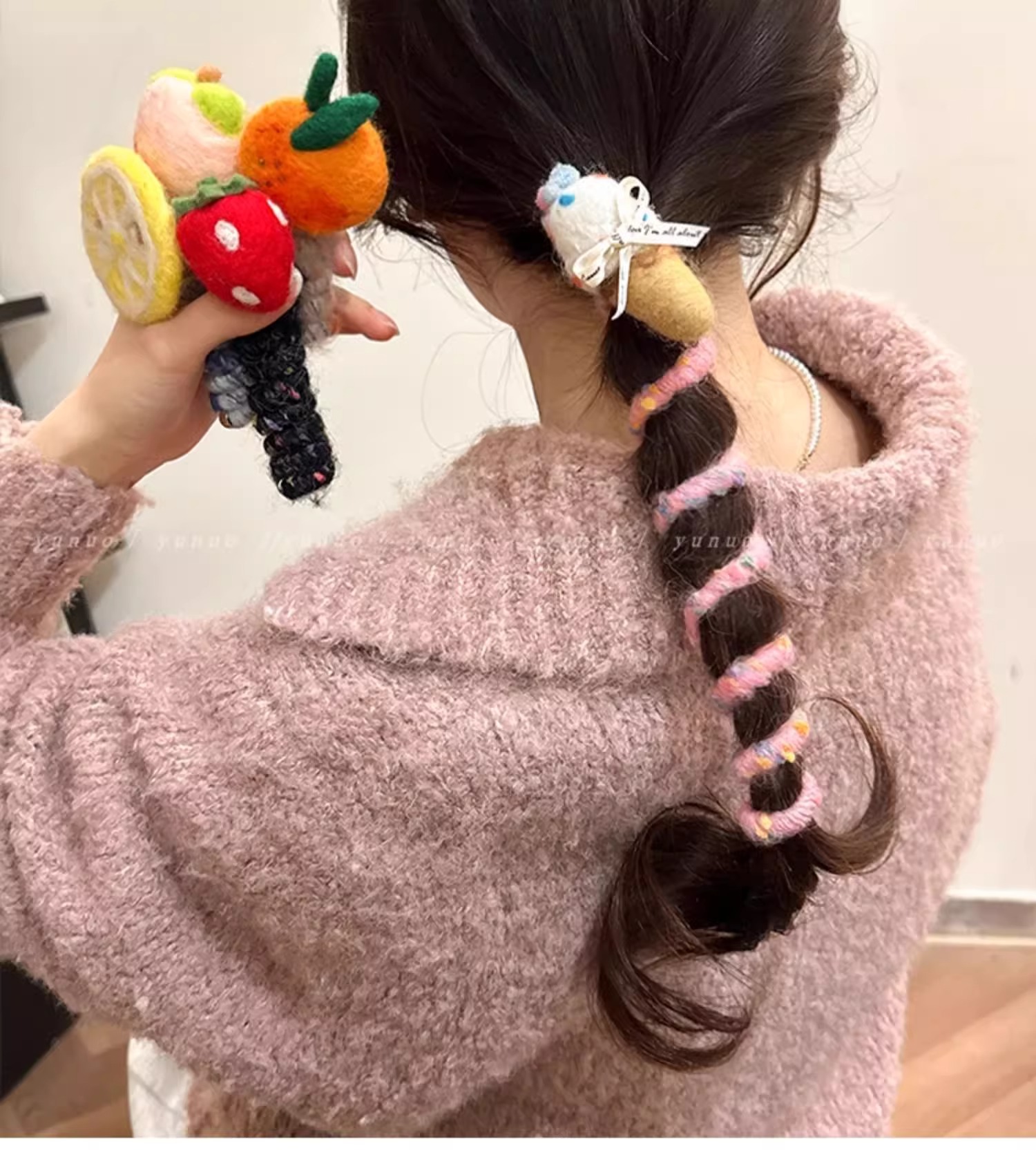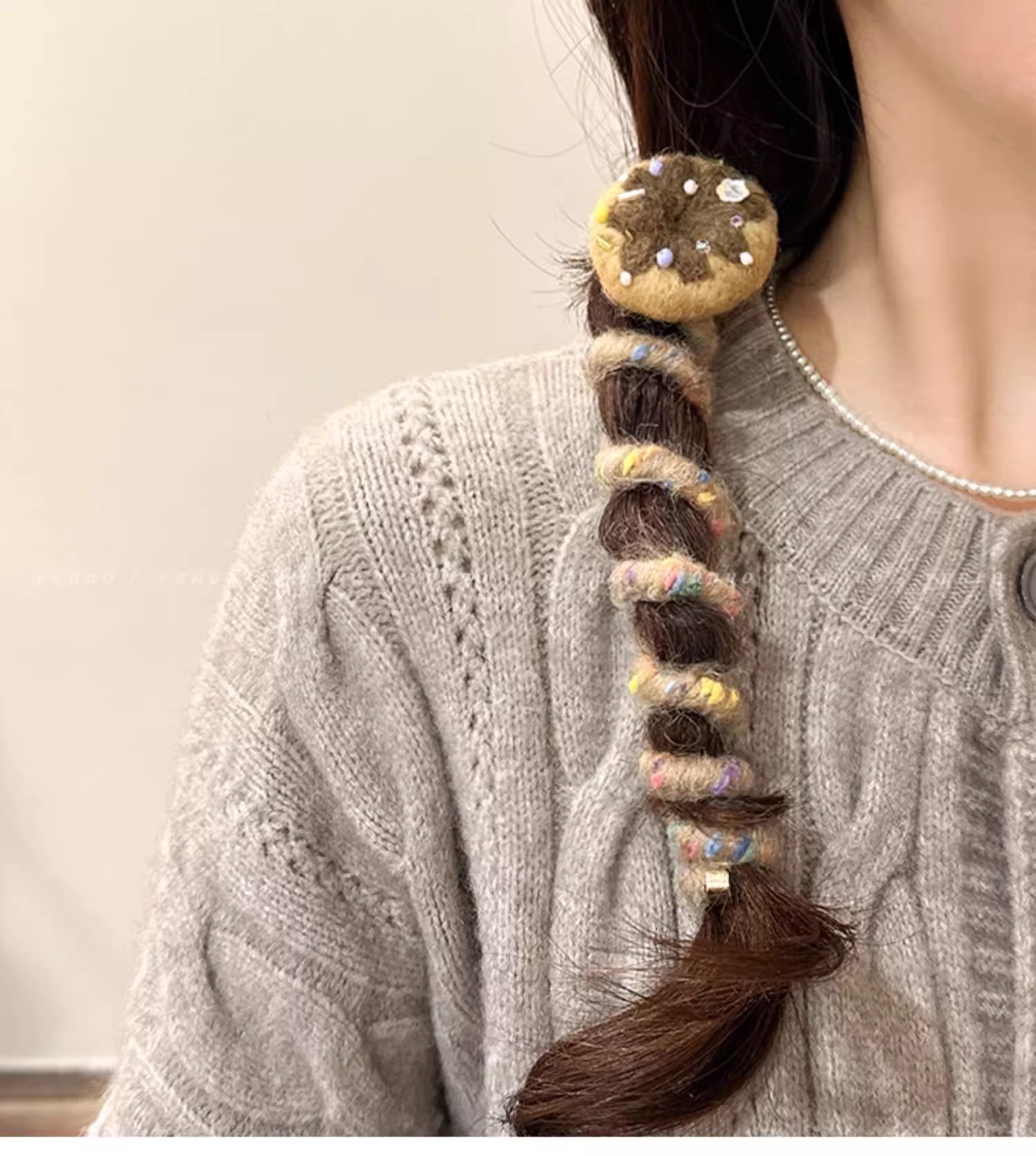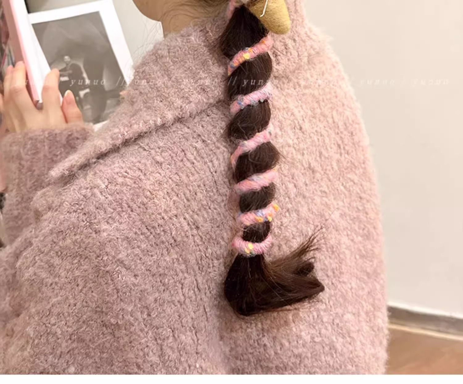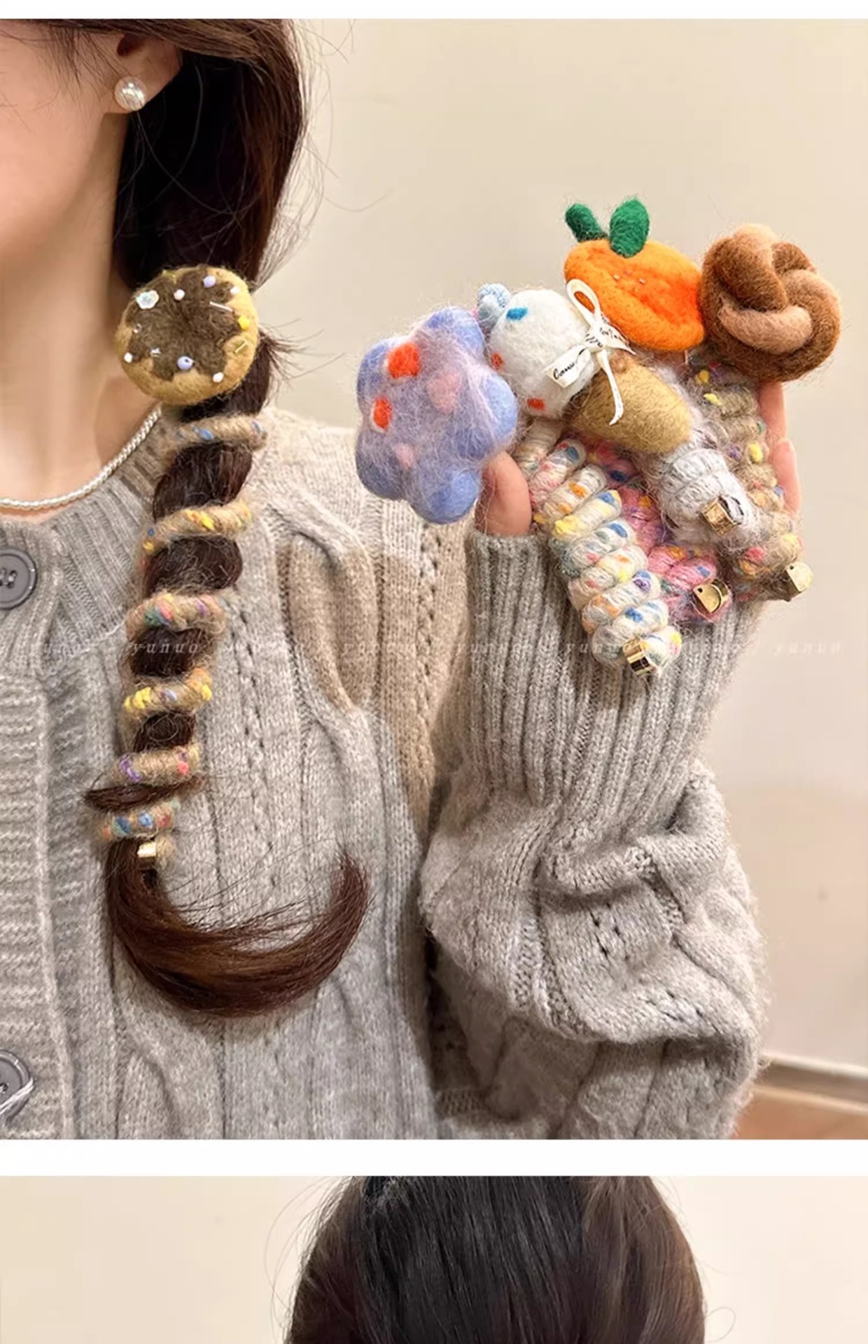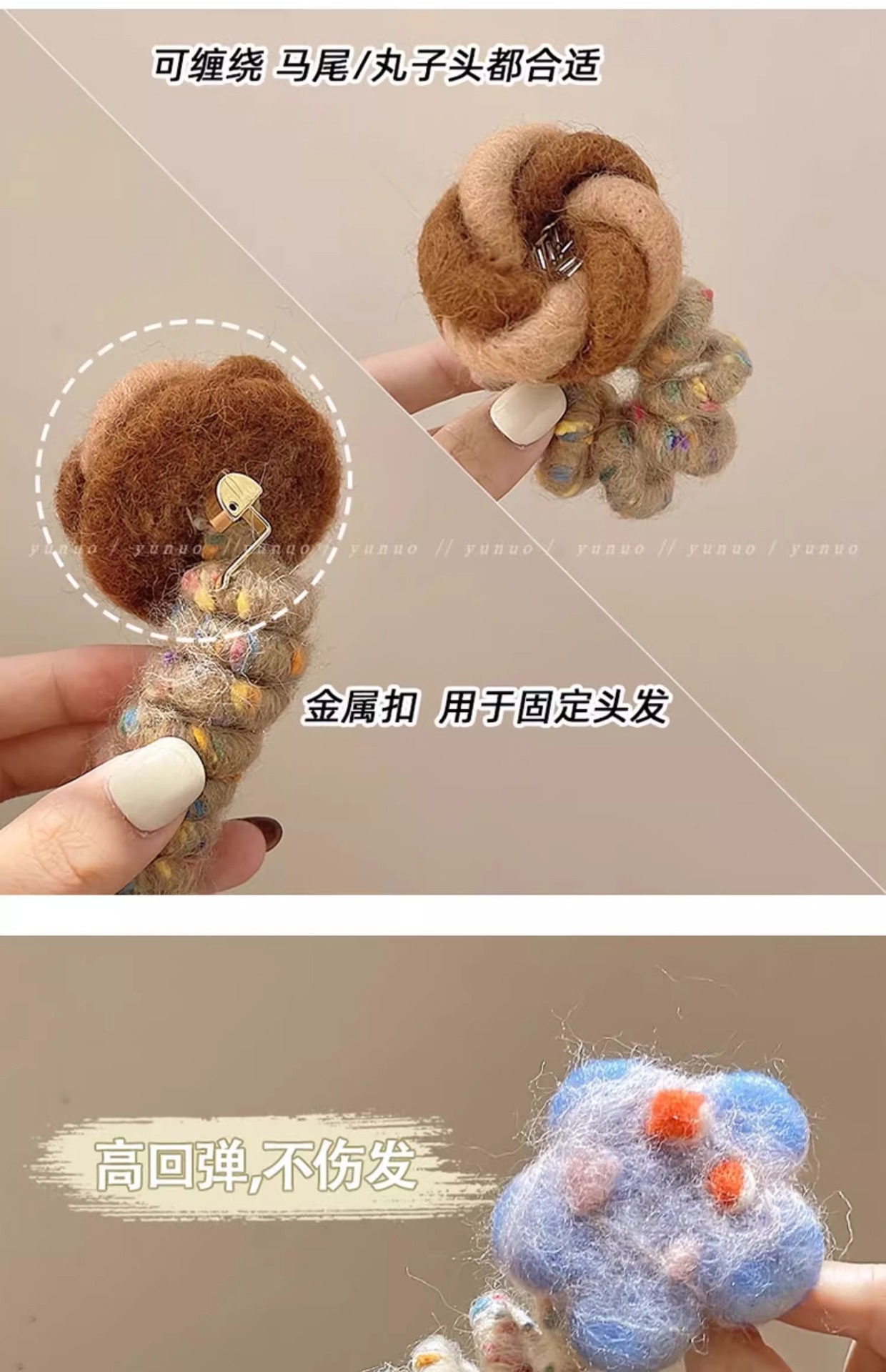 양모는 새로운 가을과 겨울 양모 버블 브레이드에 2023 선형 전화선 헤어 밴드를 느꼈다.스토어 가기