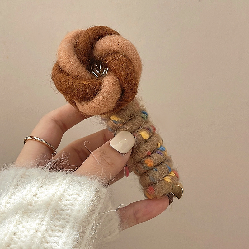 양모는 새로운 가을과 겨울 양모 버블 브레이드에 2023 선형 전화선 헤어 밴드를 느꼈다.