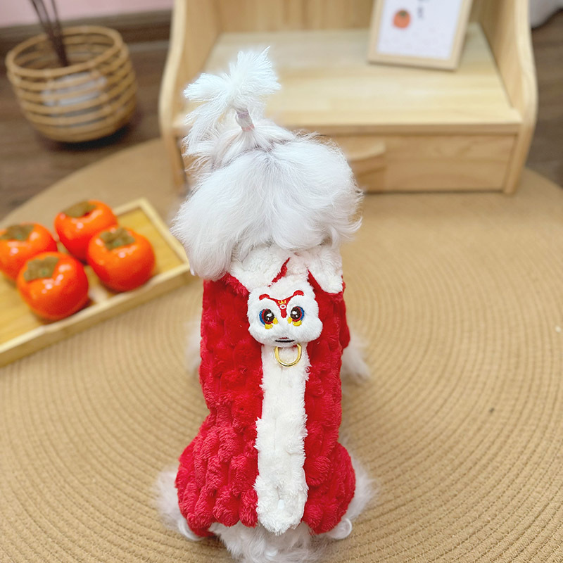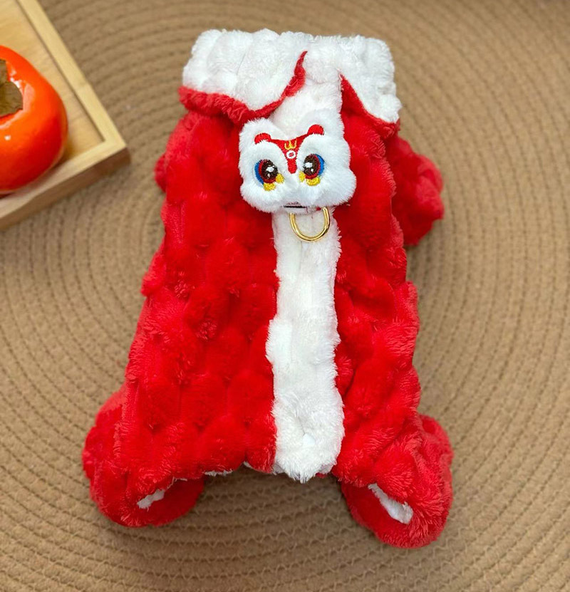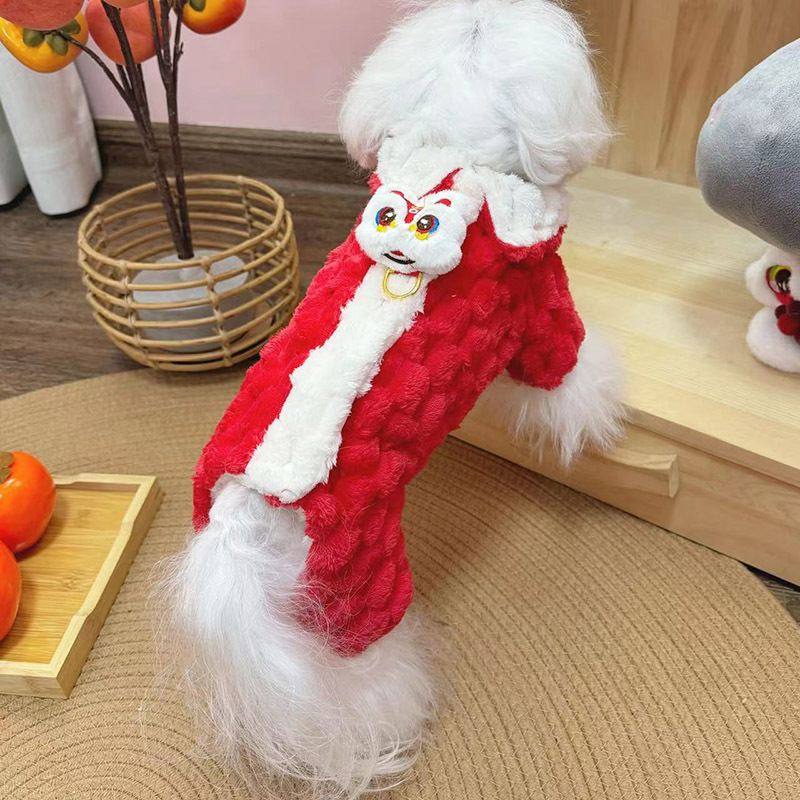 애완 동물 개 고양이 미 새해 복 사자 인형 따뜻한 면화 옷 새해 축제 애완 동물 옷스토어 가기