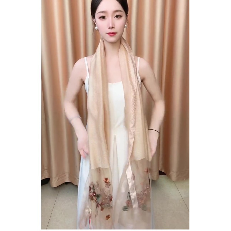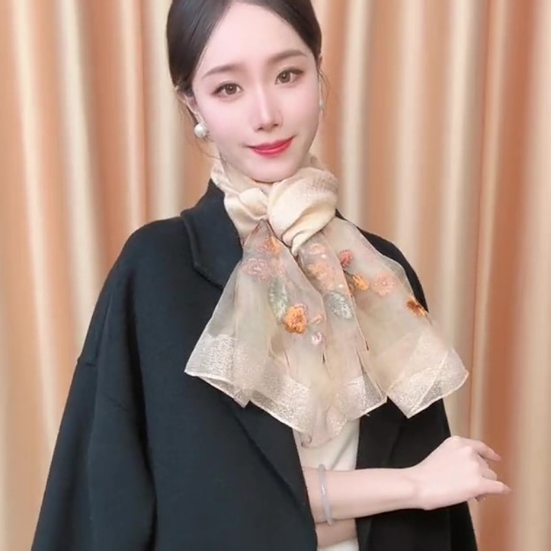 [베고니아 꽃] 고급 실크 스카프 새로운 yourou 원사 자수 꽃 스카프 여름 태양 보호 착용스토어 가기