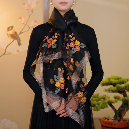 [베고니아 꽃] 고급 실크 스카프 새로운 yourou 원사 자수 꽃 스카프 여름 태양 보호 착용