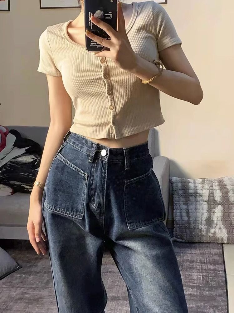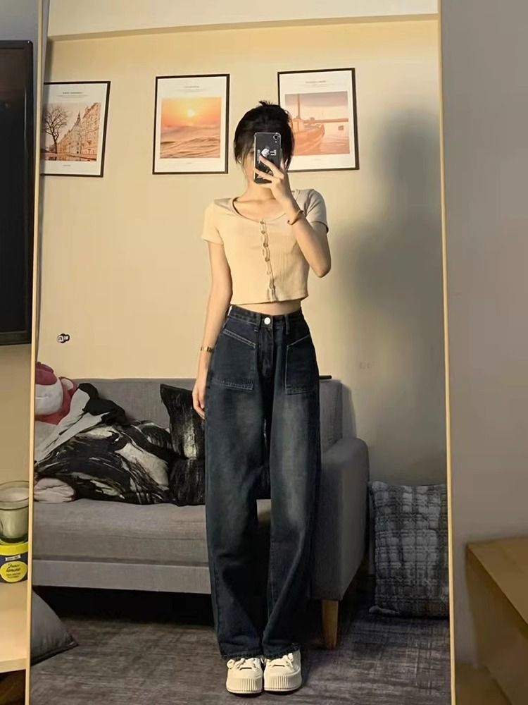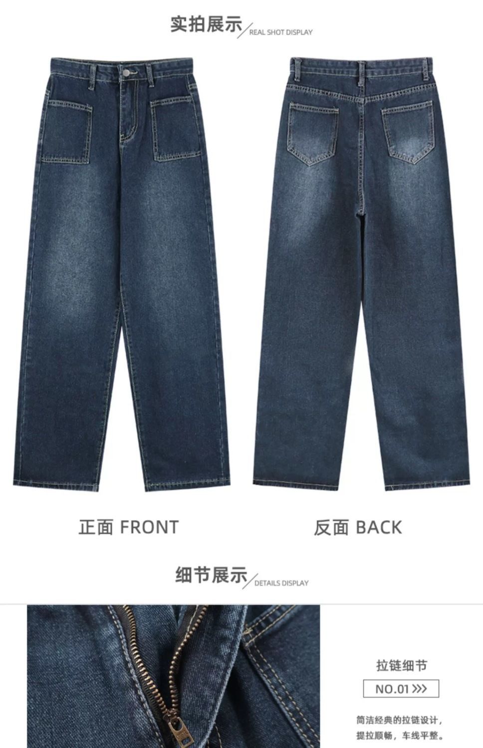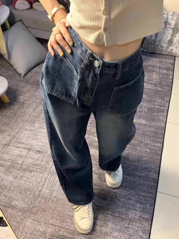 2024 새로운 인기있는 봄과 가을 넓은 다리 청바지 플러스 사이즈 통통녀 여성 의류 슬리밍 배 모양의 피겨 착용 바지 여름스토어 가기