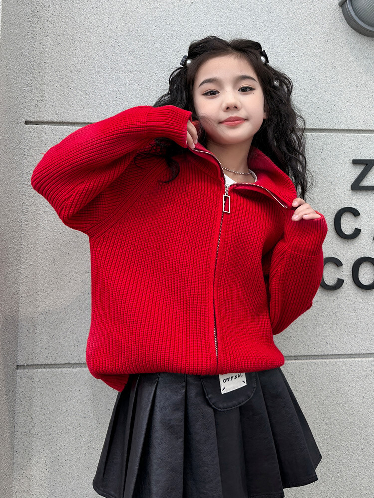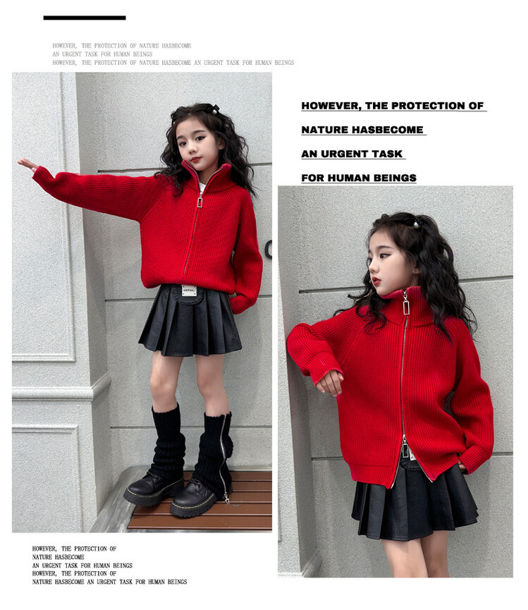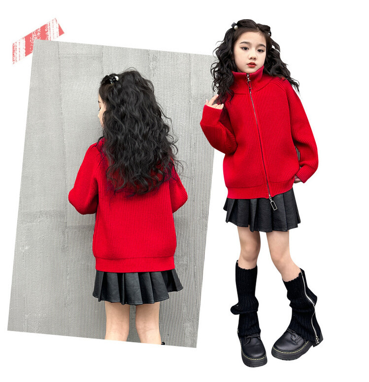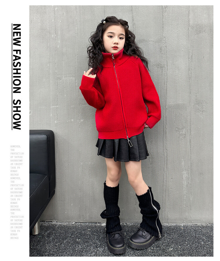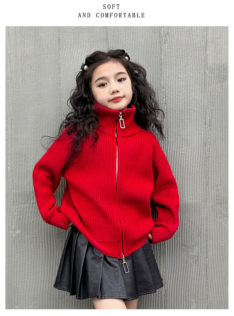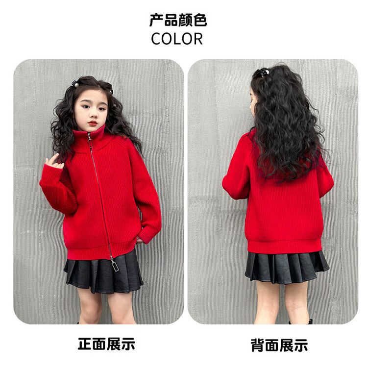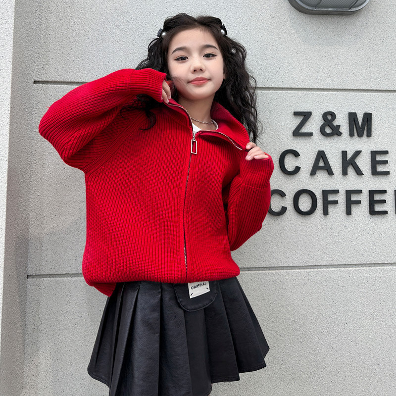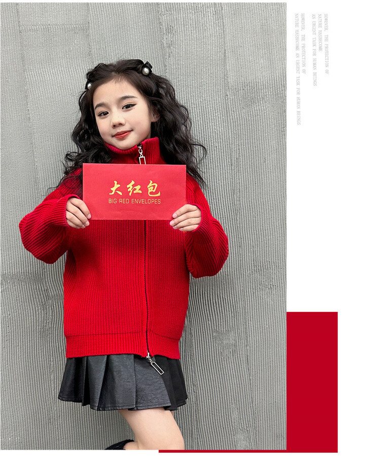 새해 어린이 스웨터 2023 새 가을과 겨울 소녀 지퍼 니트 카디건 한국식 올매치 두껍게
