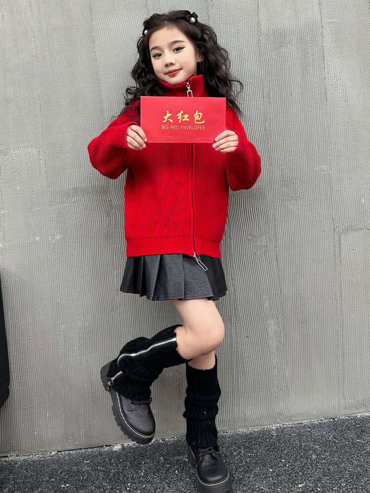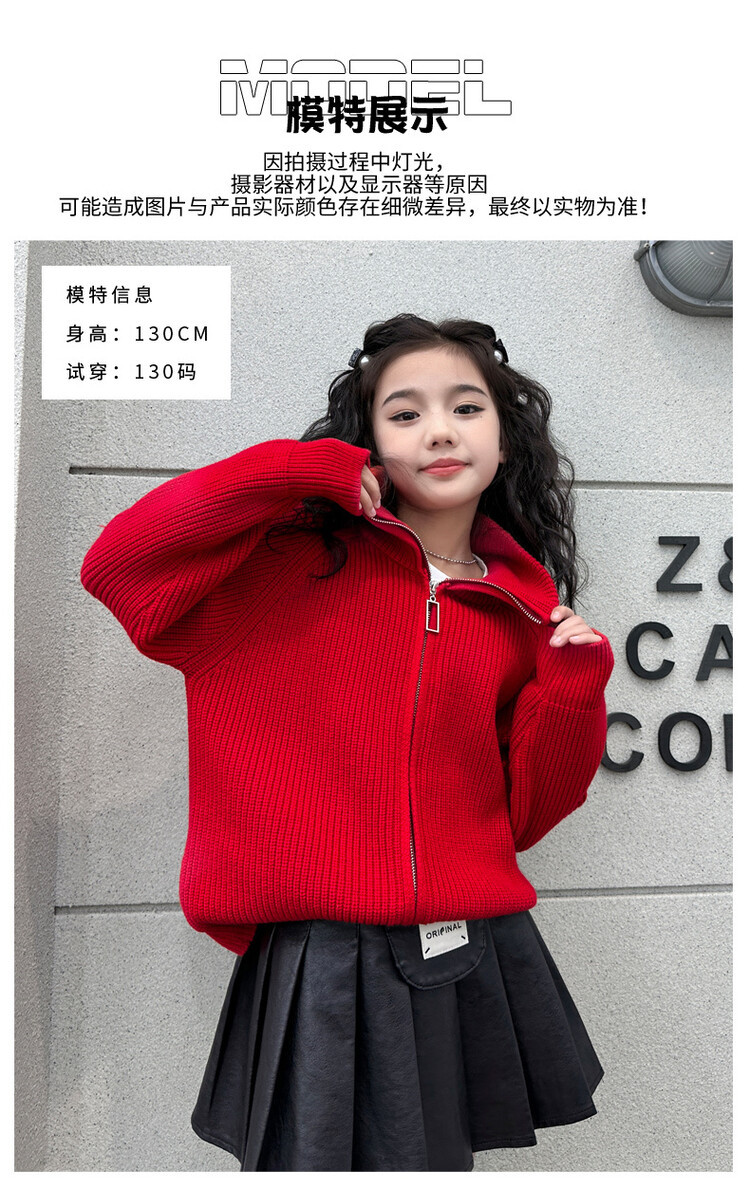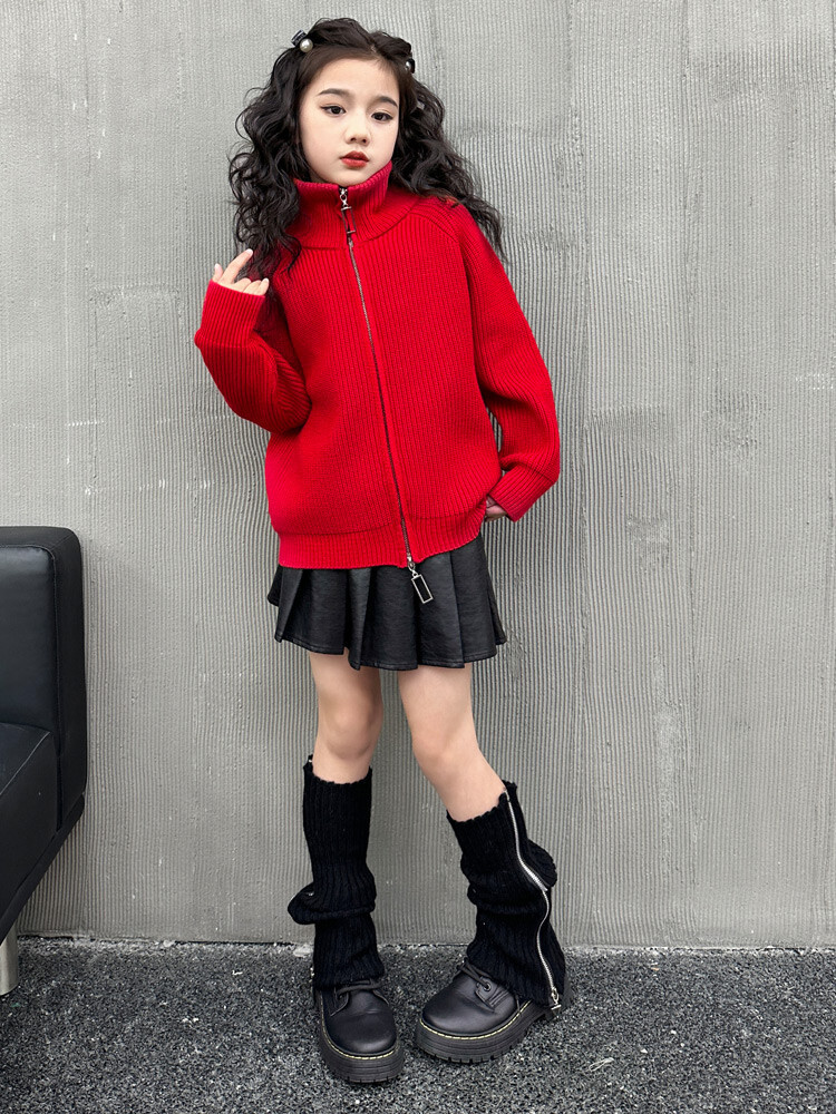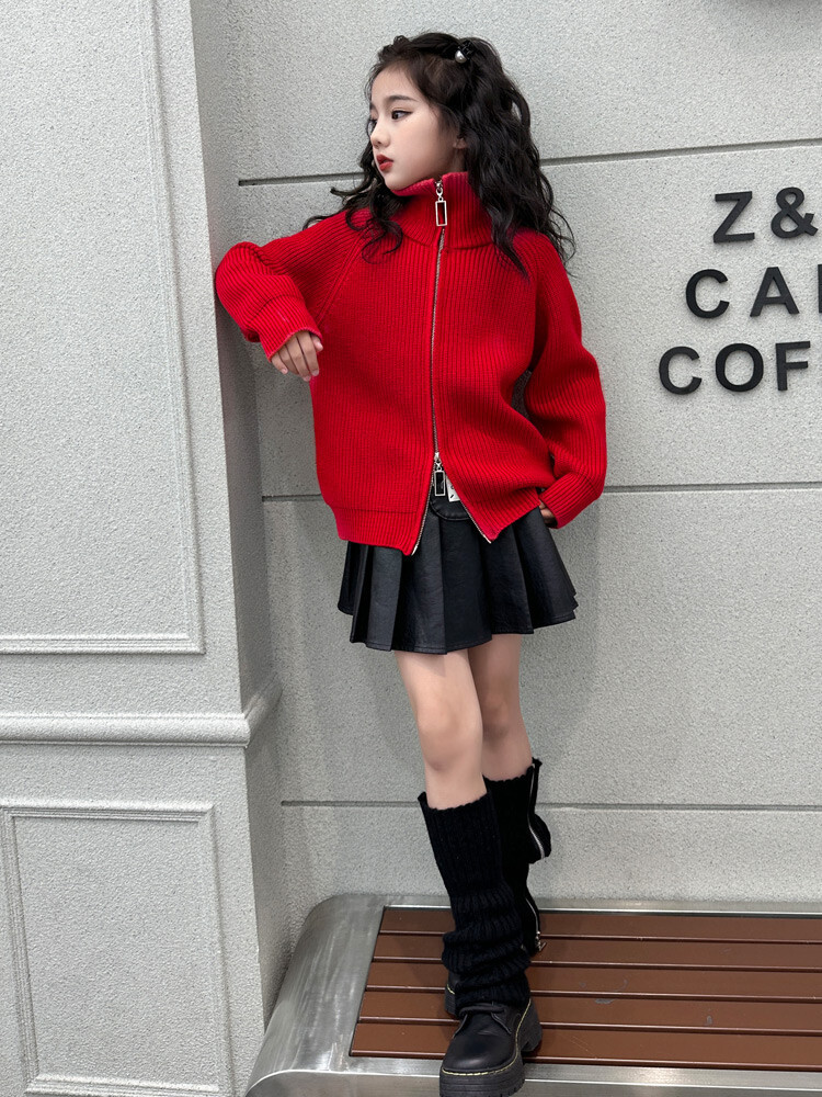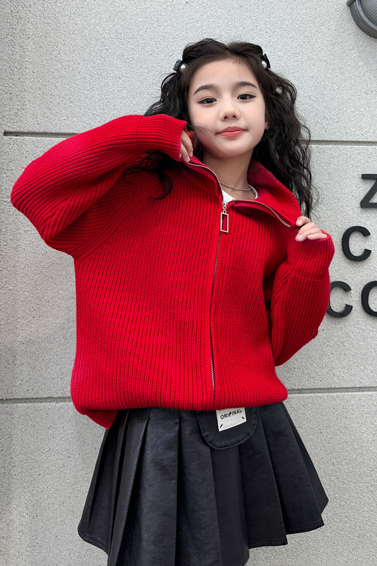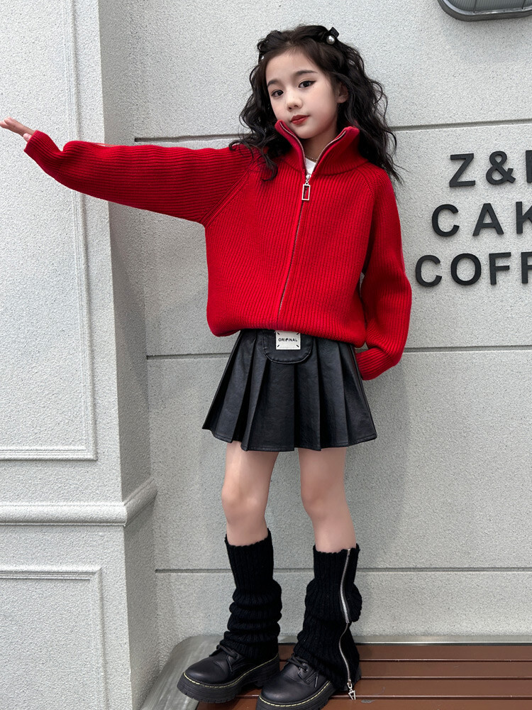 새해 어린이 스웨터 2023 새 가을과 겨울 소녀 지퍼 니트 카디건 한국식 올매치 두껍게