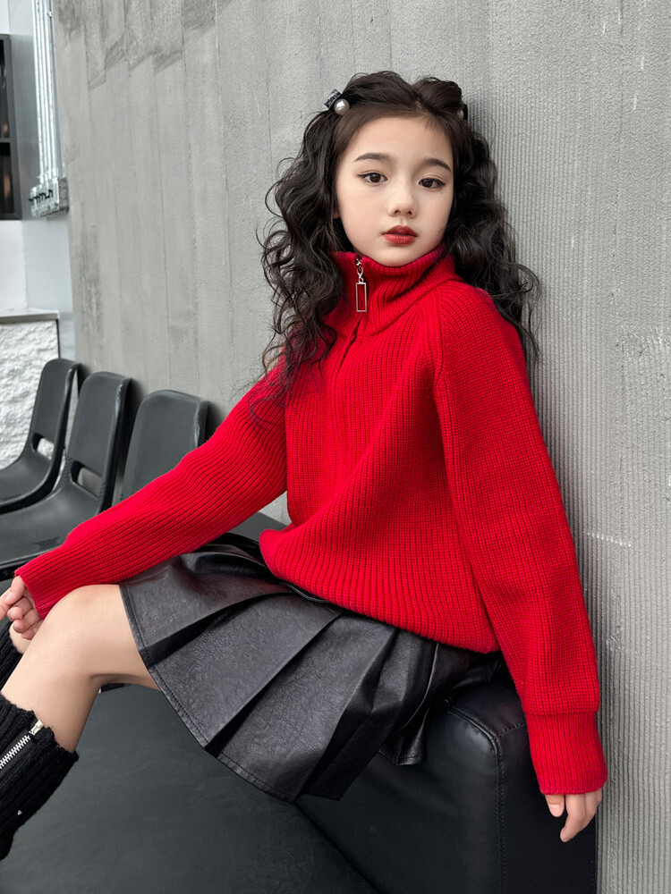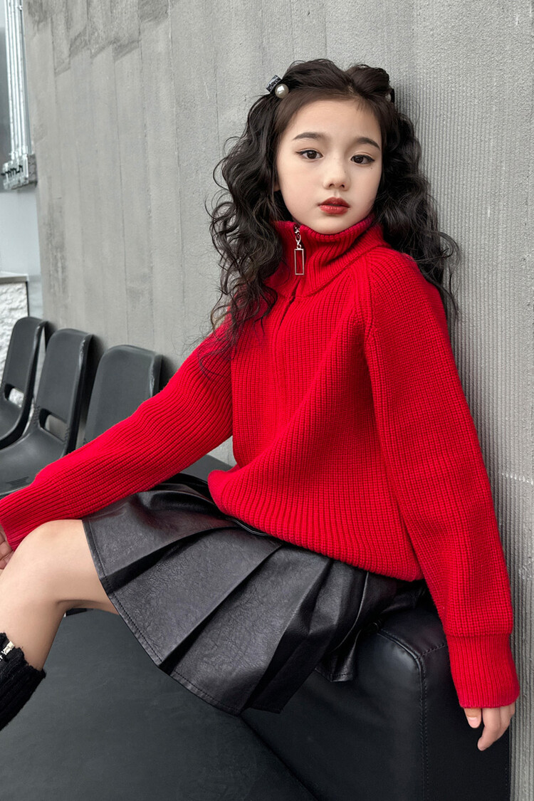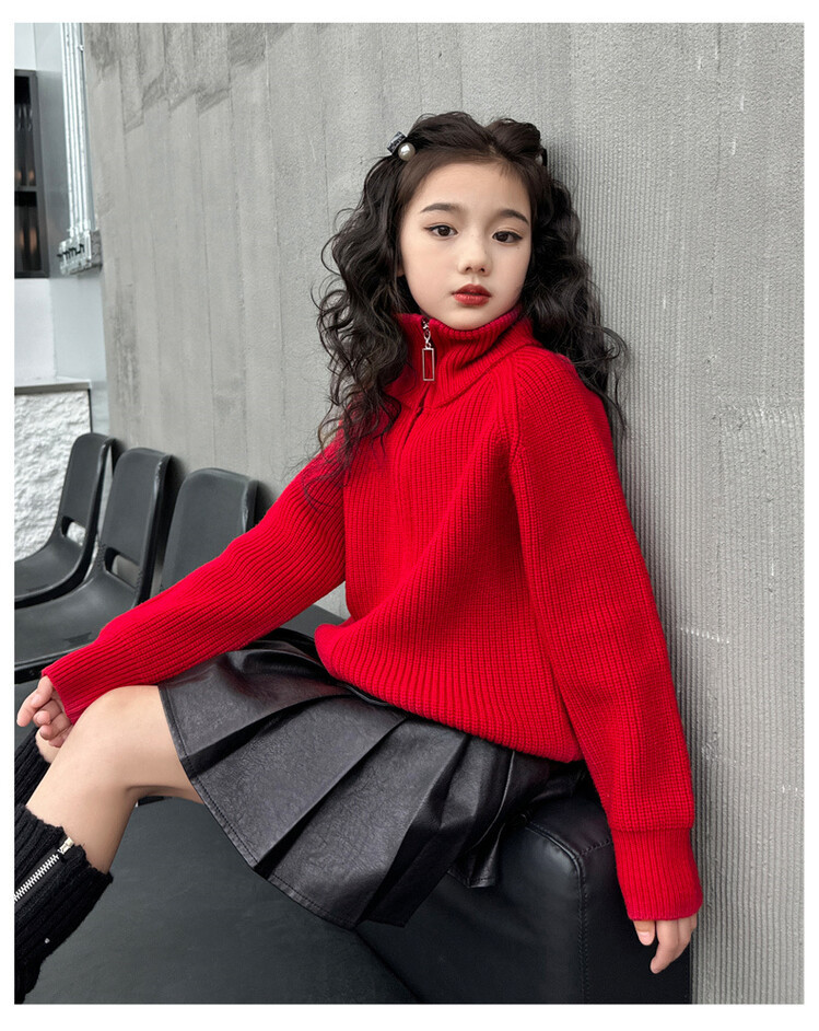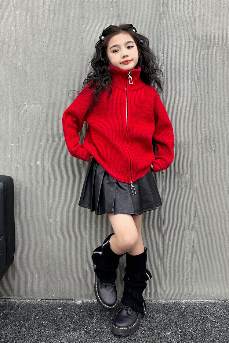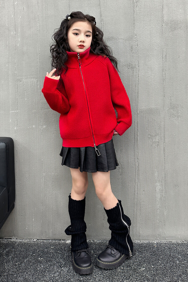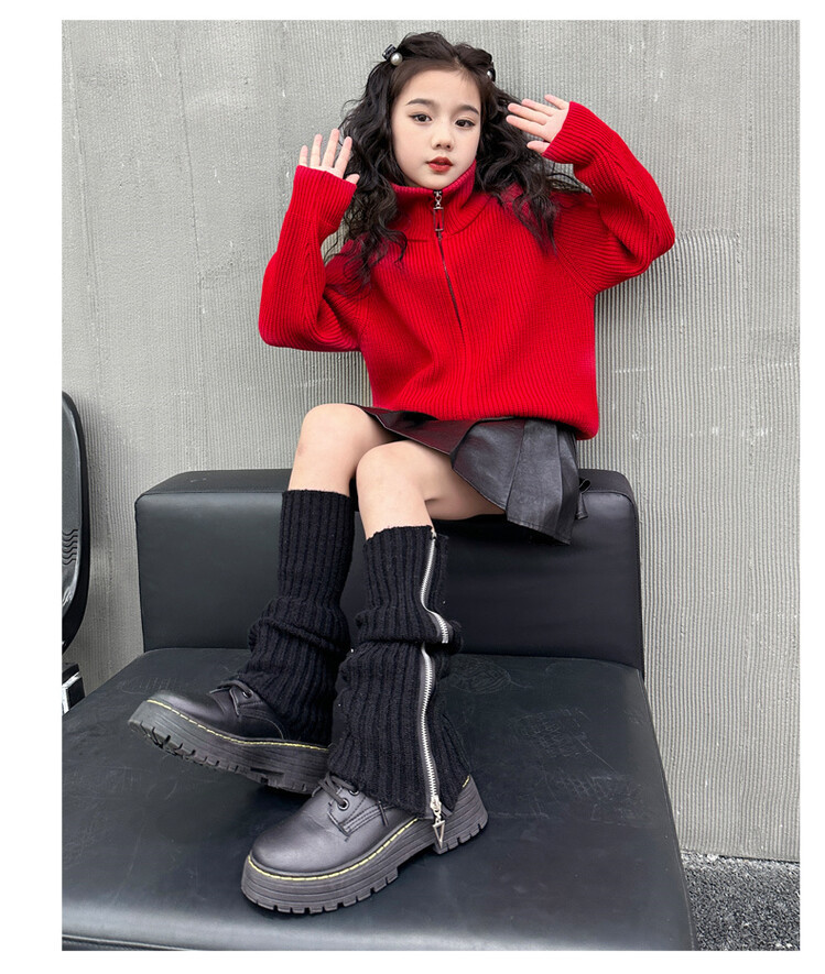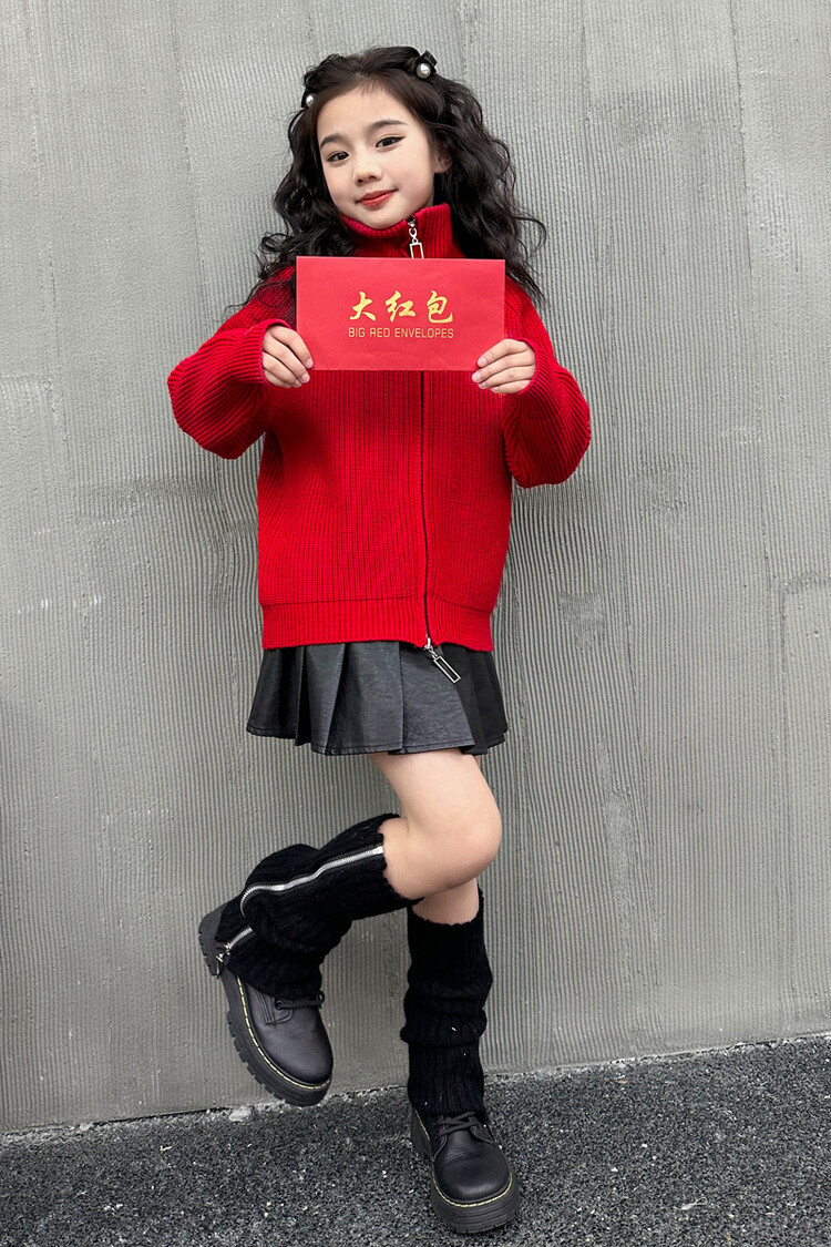 새해 어린이 스웨터 2023 새 가을과 겨울 소녀 지퍼 니트 카디건 한국식 올매치 두껍게