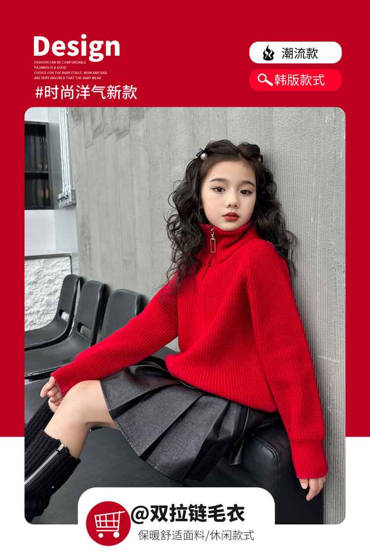 새해 어린이 스웨터 2023 새 가을과 겨울 소녀 지퍼 니트 카디건 한국식 올매치 두껍게스토어 가기