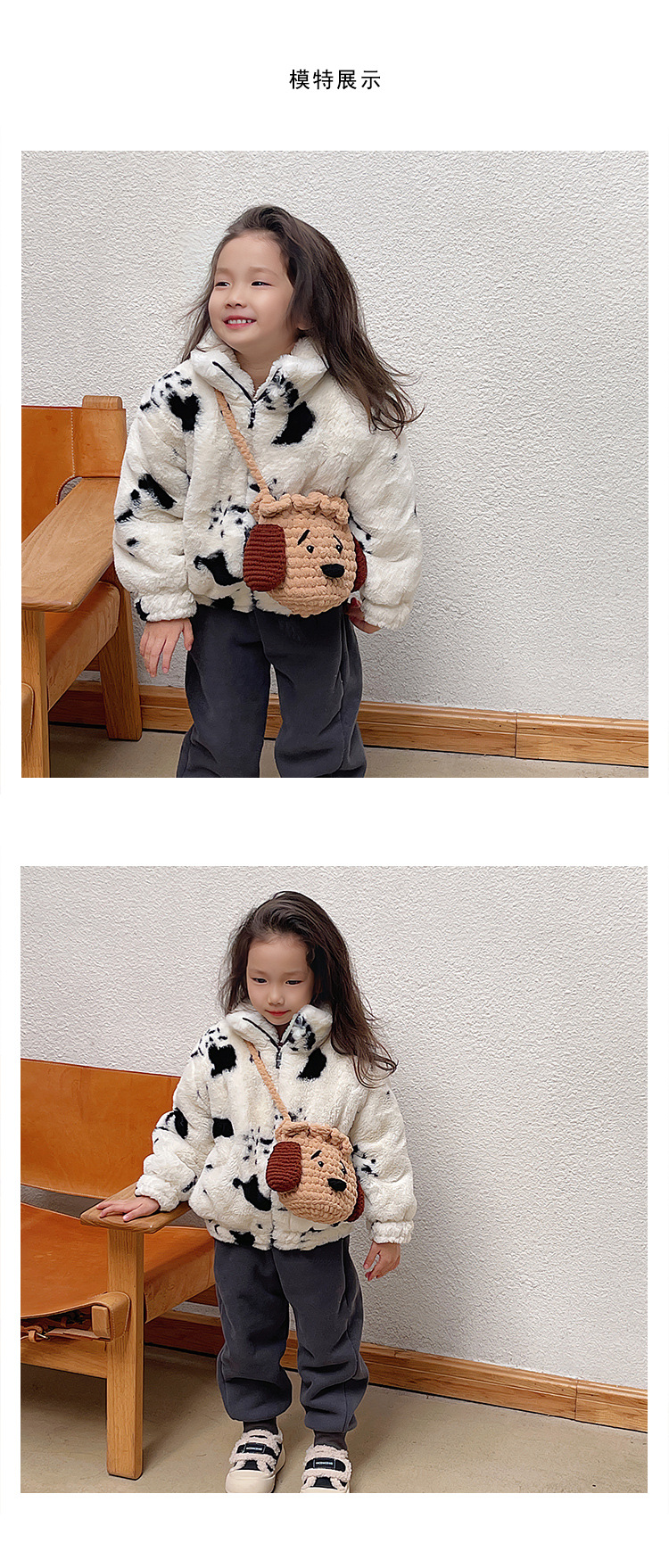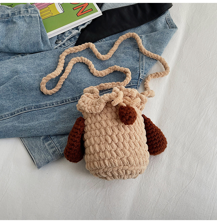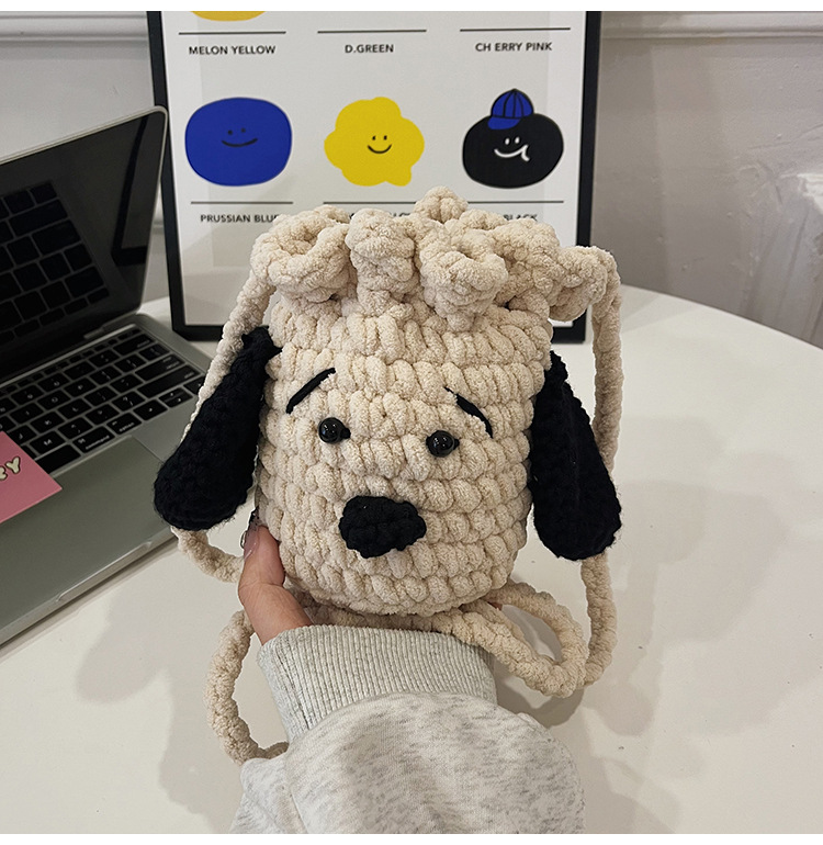 귀여운 강아지 어린이 동전 지갑 만화 모든 경기 손으로 짠 남성과 여성의 아기 크로스 바디 버킷 가방 양모 가방 패션스토어 가기