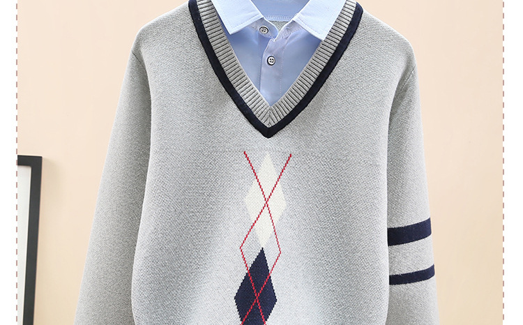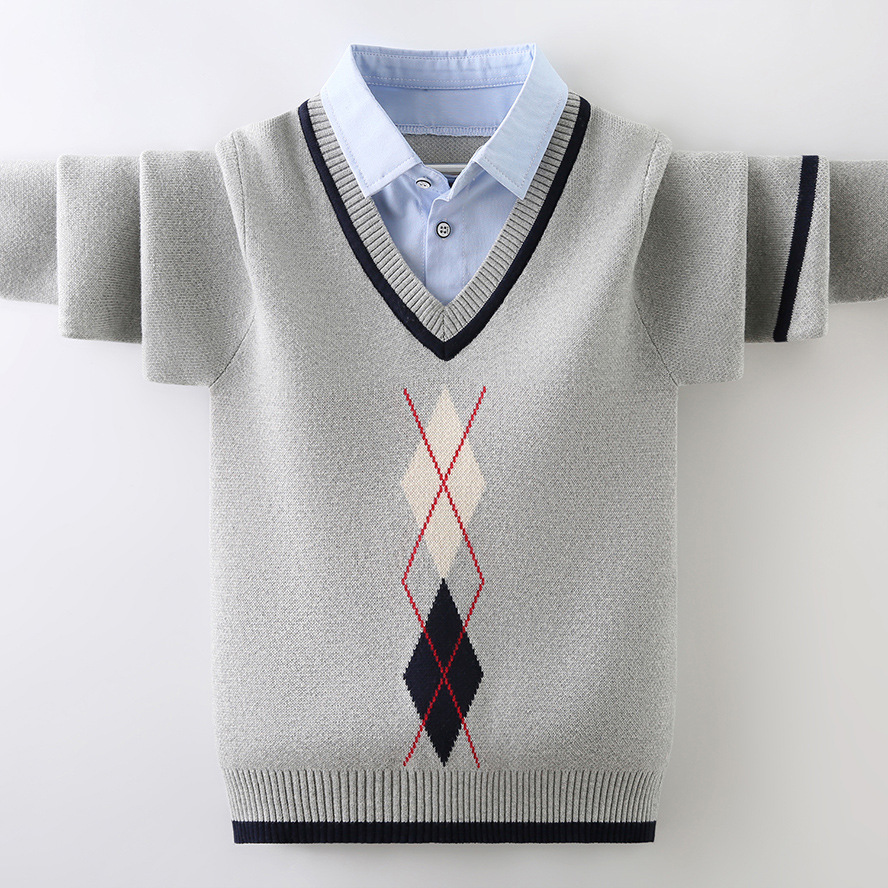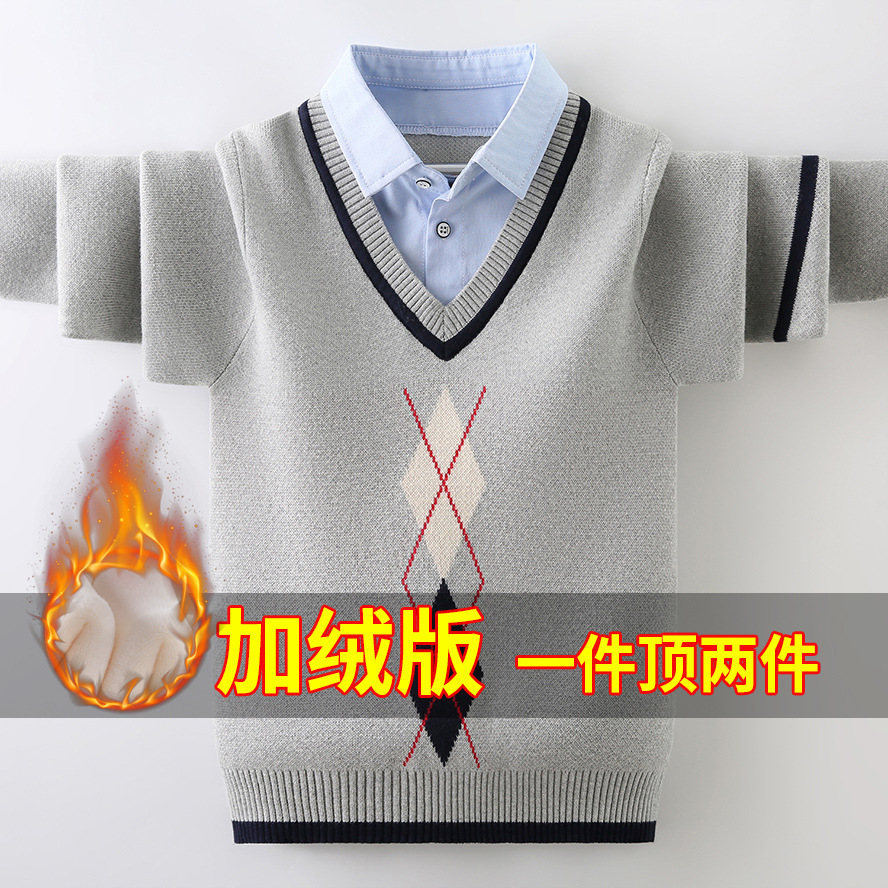 소년 스웨터 가을과 겨울 2023 새로운 잘 생긴 중형 및 대형 소년 겨울 양털 안감 두꺼운 셔츠 칼라 풀오버 바닥 셔츠스토어 가기