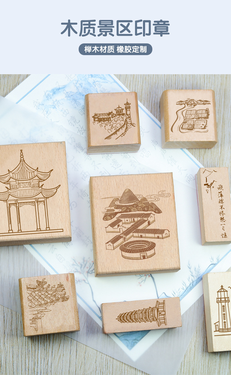나무 물개 나무 물개 나무 조각 고무 스탬프 개인화 된 애니메이션 DIY 손 계정 경치 명소 풍경 씰스토어 가기