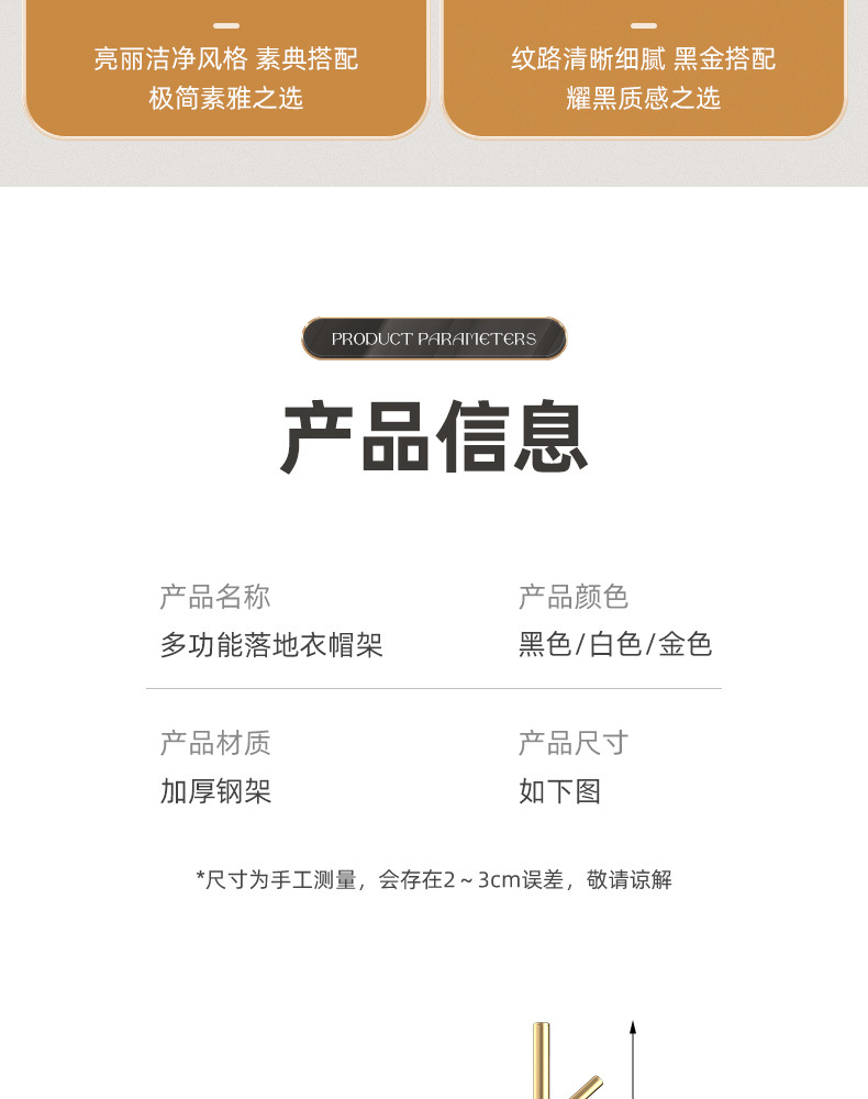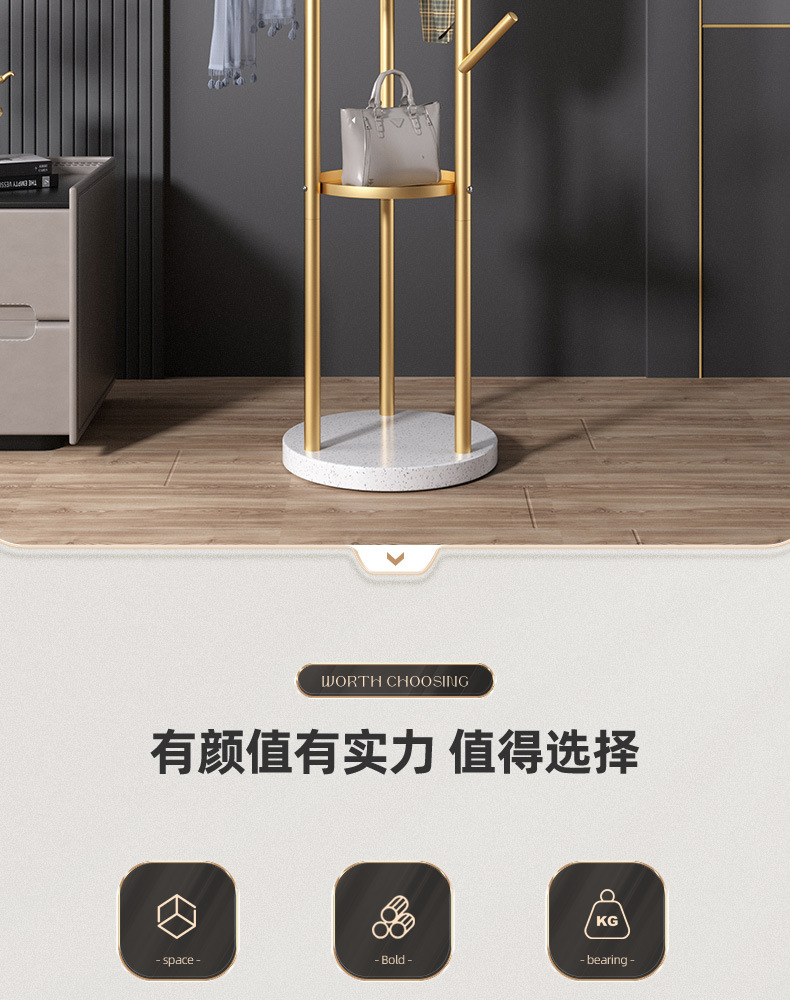 바닥 침실 옷걸이 가정용 대리석 코트 랙 싱글 막대 옷 랙 수직 거실 보관 가방 랙