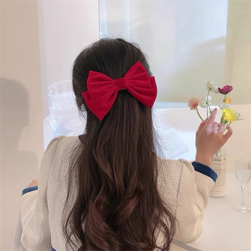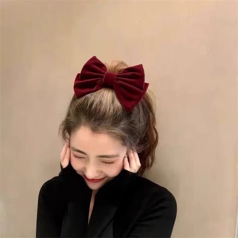 하이 엔드 벨벳 큰 활 머리핀 다시 머리 머리핀 빨간 머리 액세서리 인터넷 유명인 복고풍 기질 탑 클립 봄 클립스토어 가기