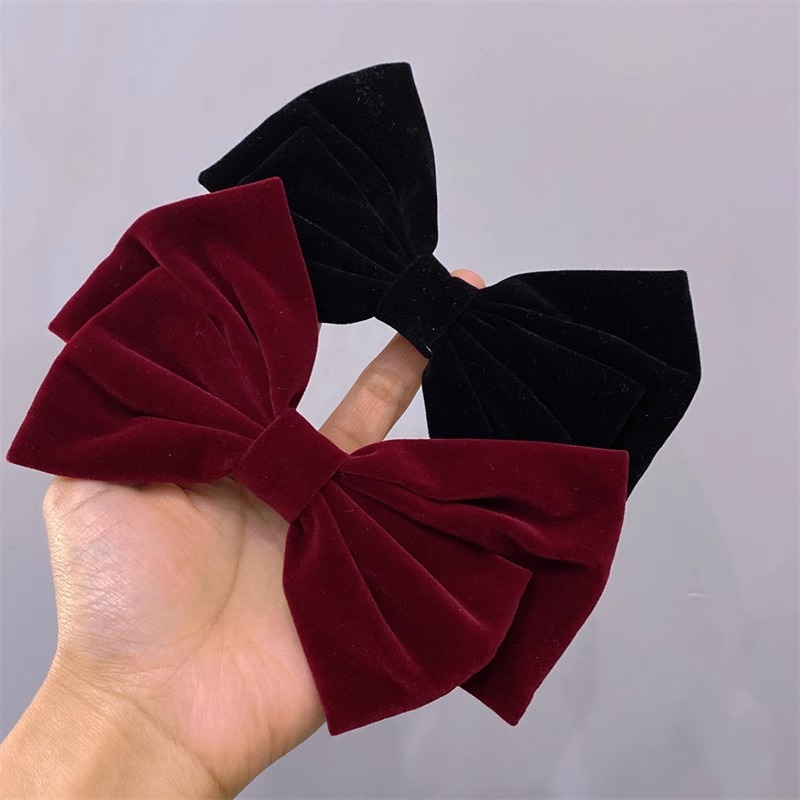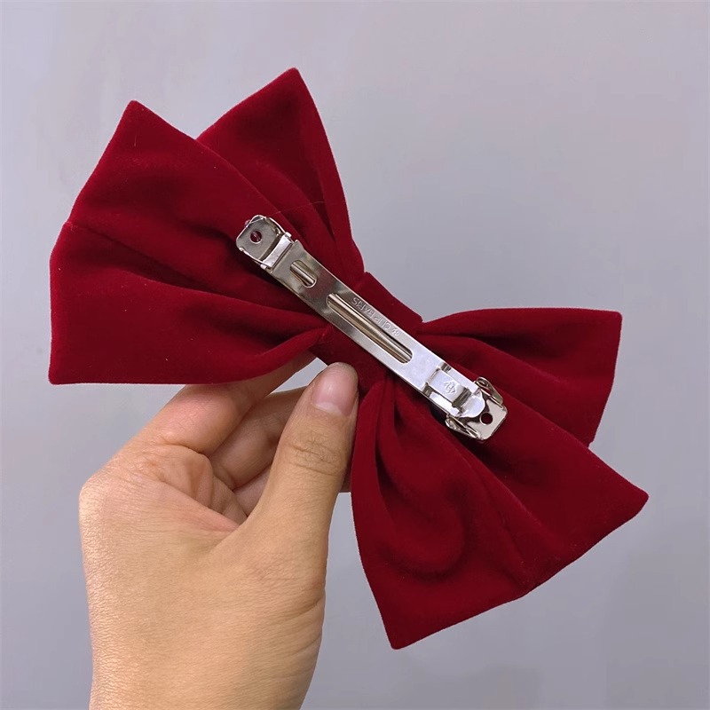 하이 엔드 벨벳 큰 활 머리핀 다시 머리 머리핀 빨간 머리 액세서리 인터넷 유명인 복고풍 기질 탑 클립 봄 클립