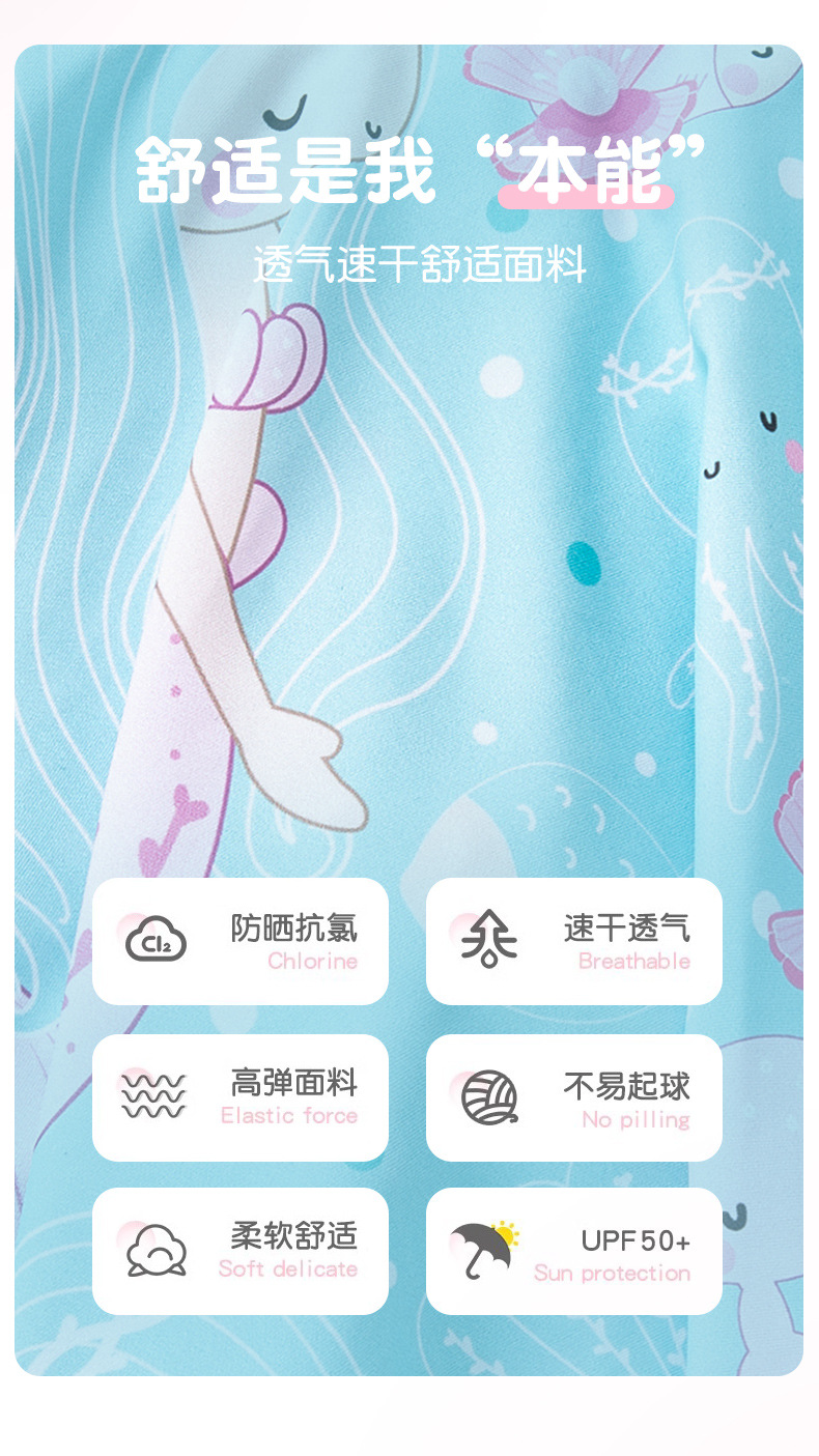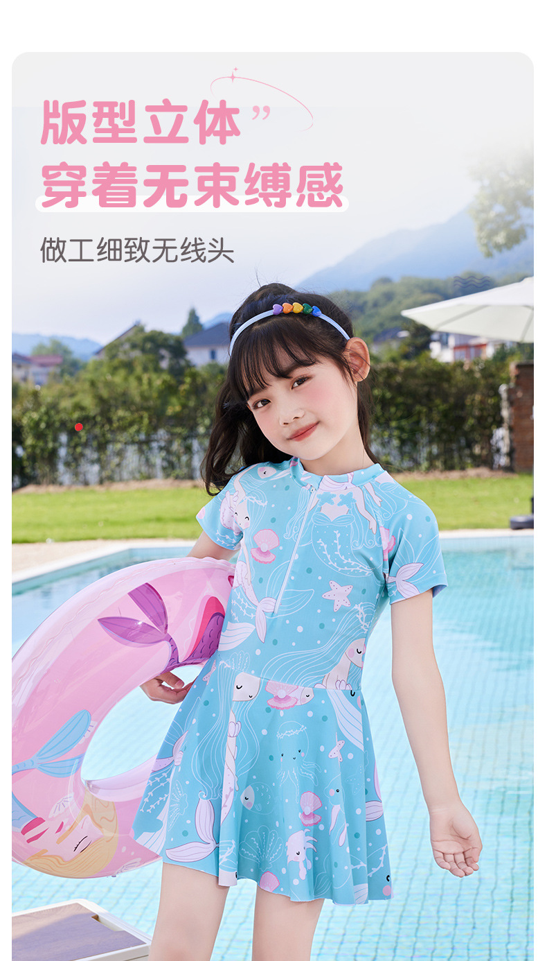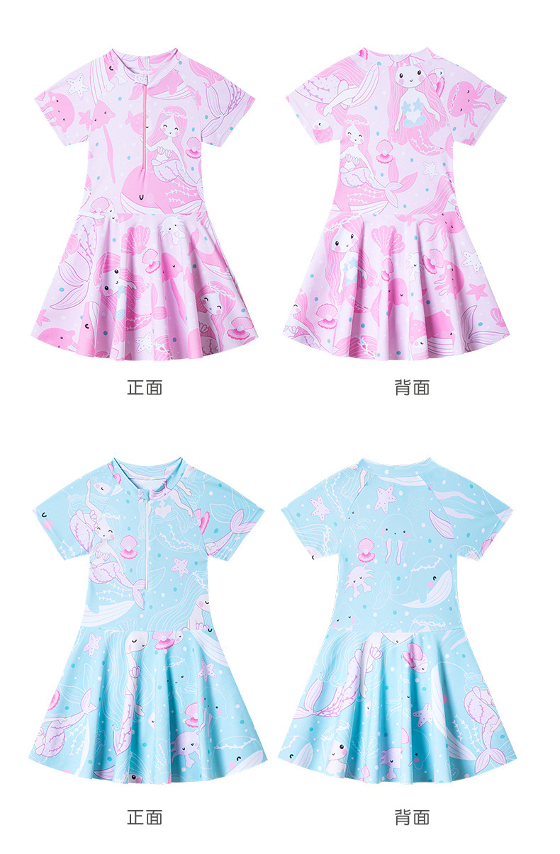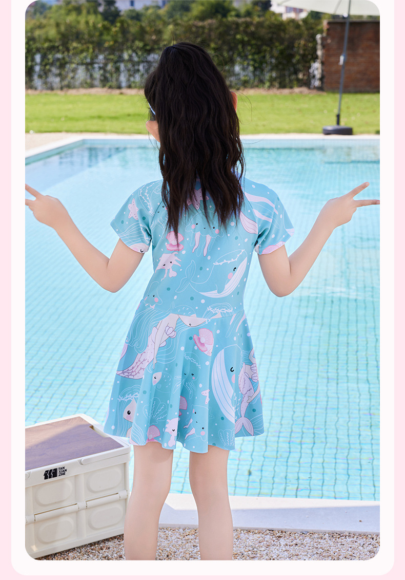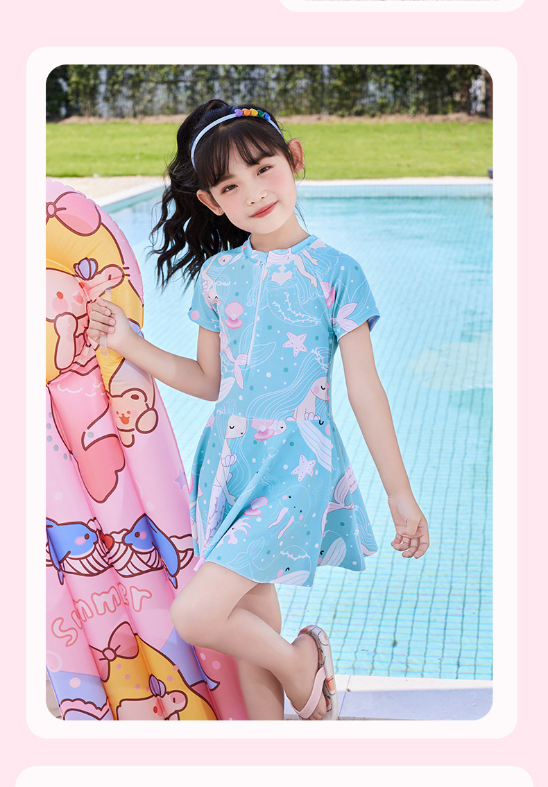 창조적 인 만화 블루 돌고래 인쇄 어린이 수영복 중형 및 대형 어린이 원피스 수영복 작은 신선한 소녀 재고스토어 가기