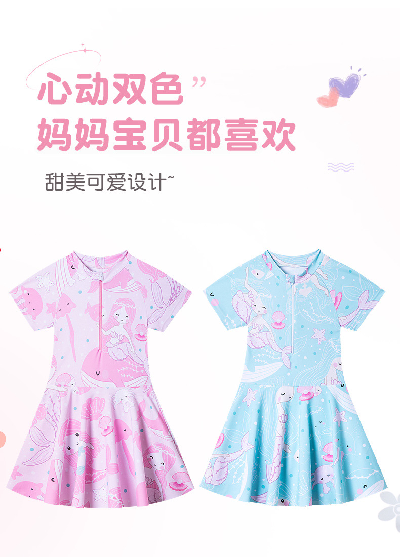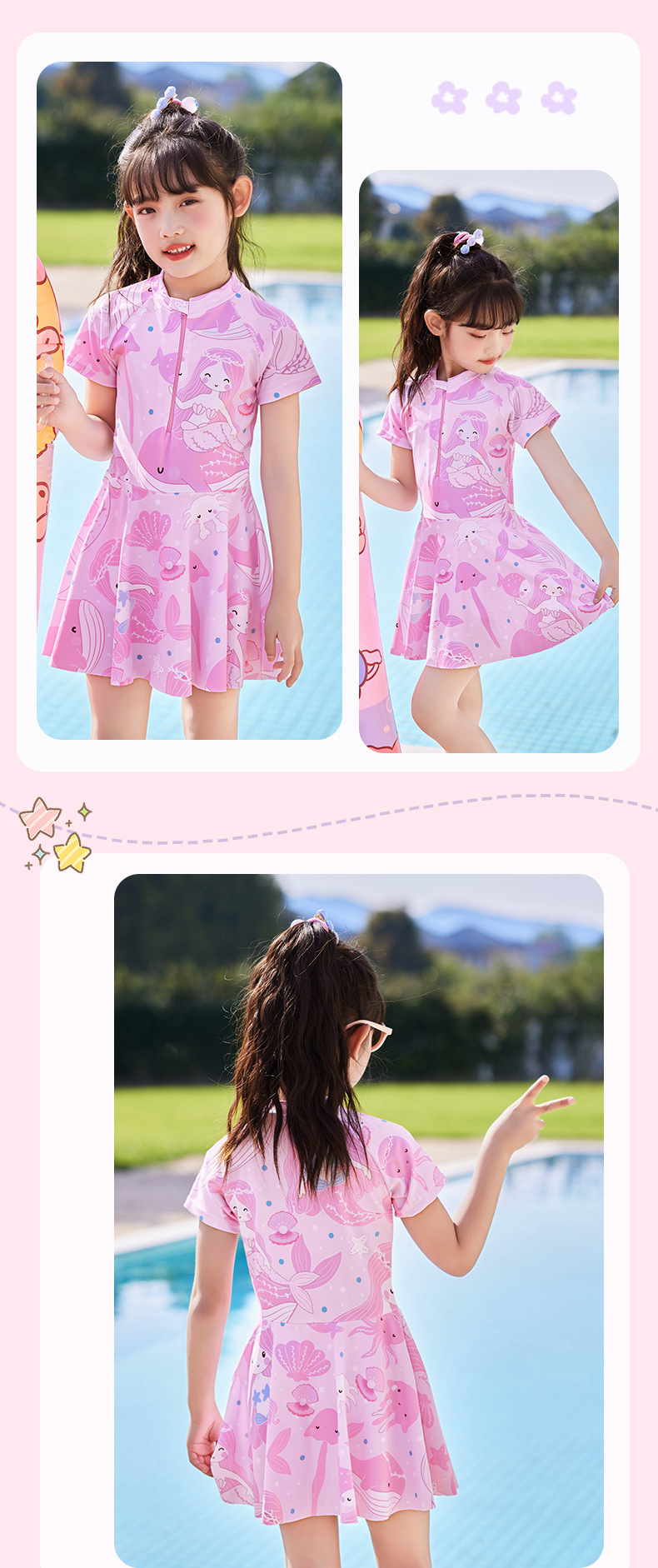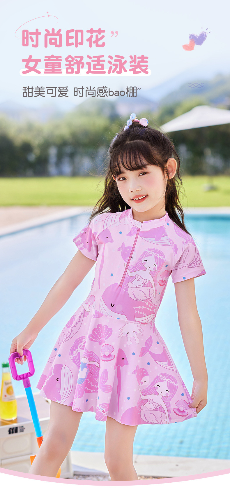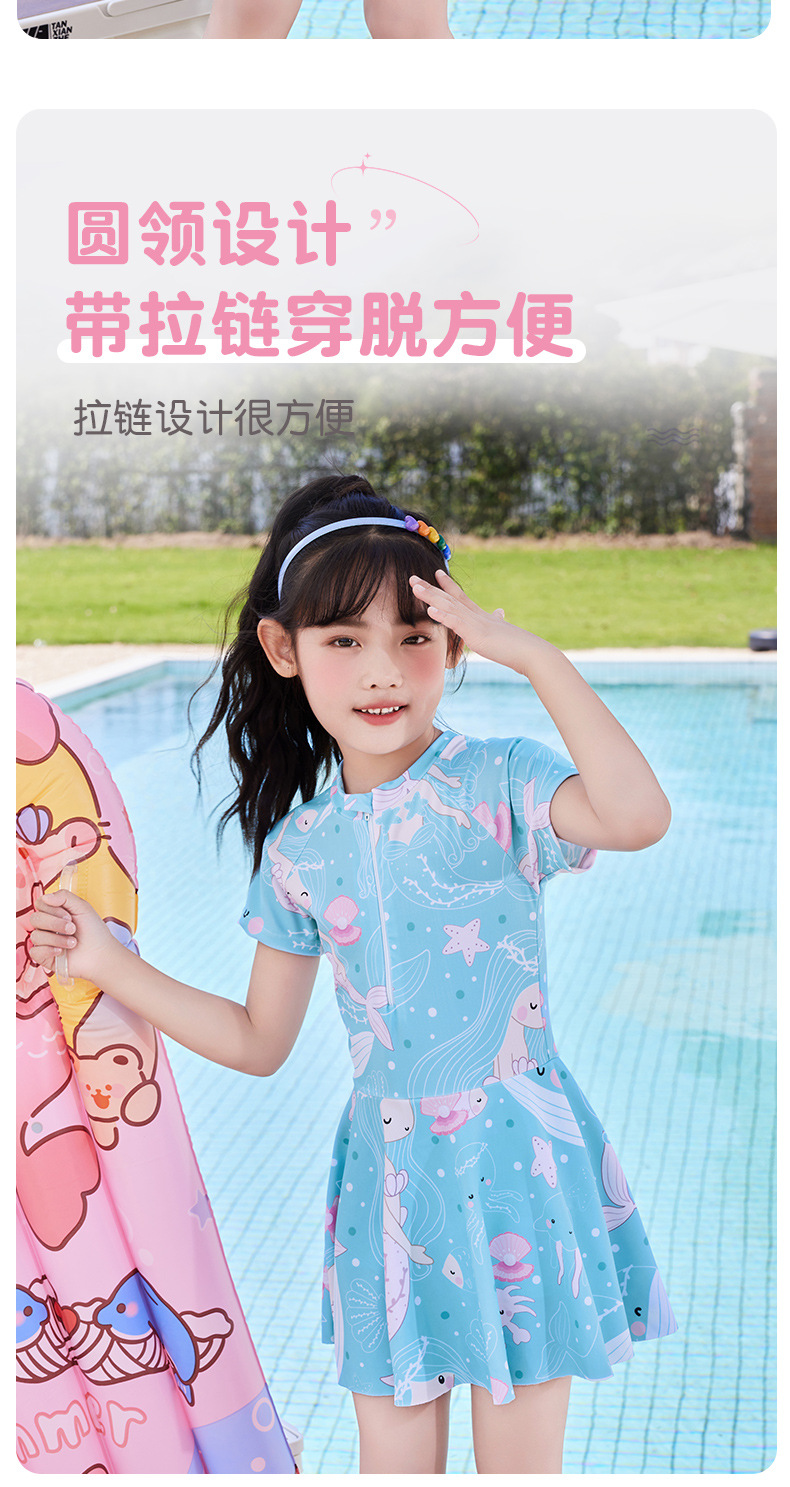 창조적 인 만화 블루 돌고래 인쇄 어린이 수영복 중형 및 대형 어린이 원피스 수영복 작은 신선한 소녀 재고스토어 가기