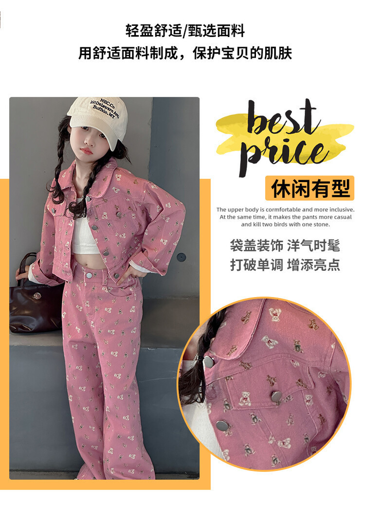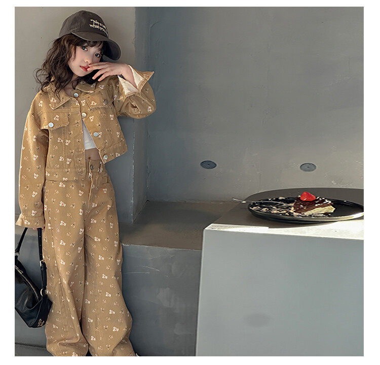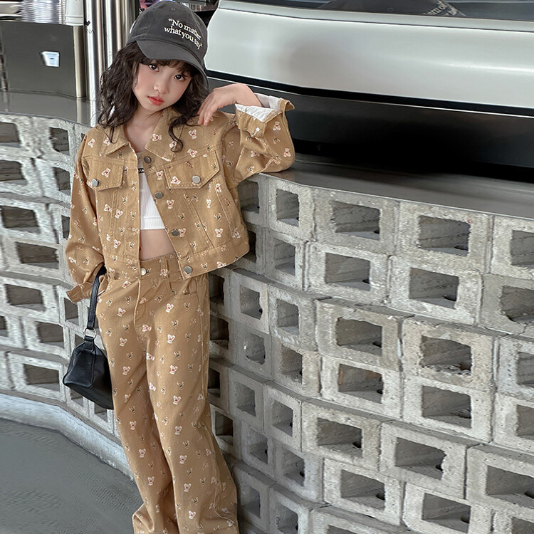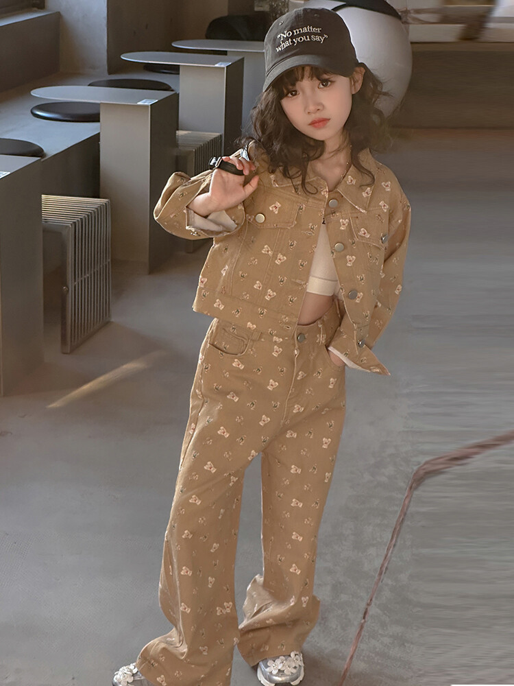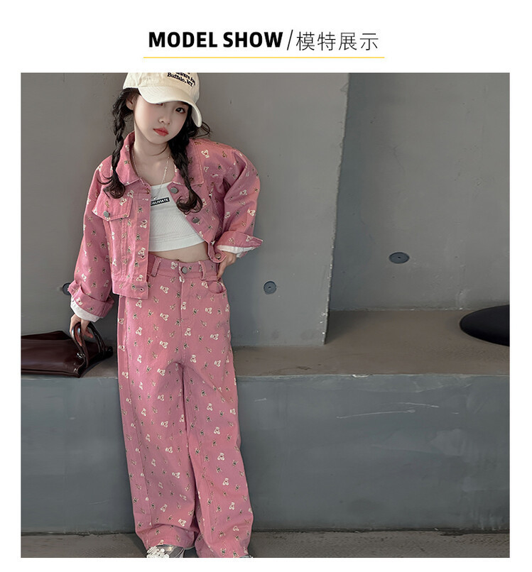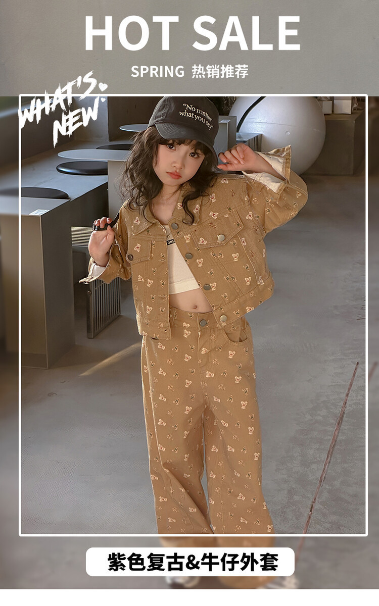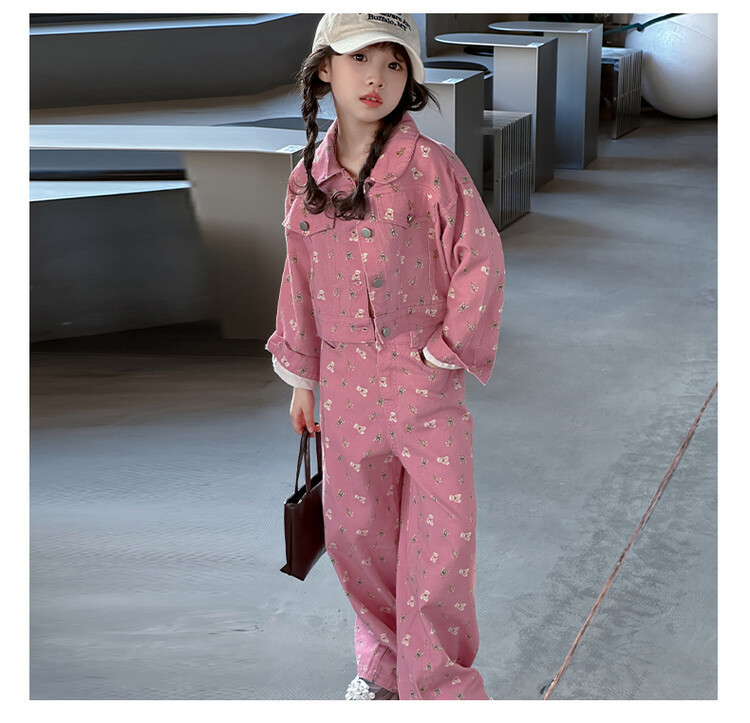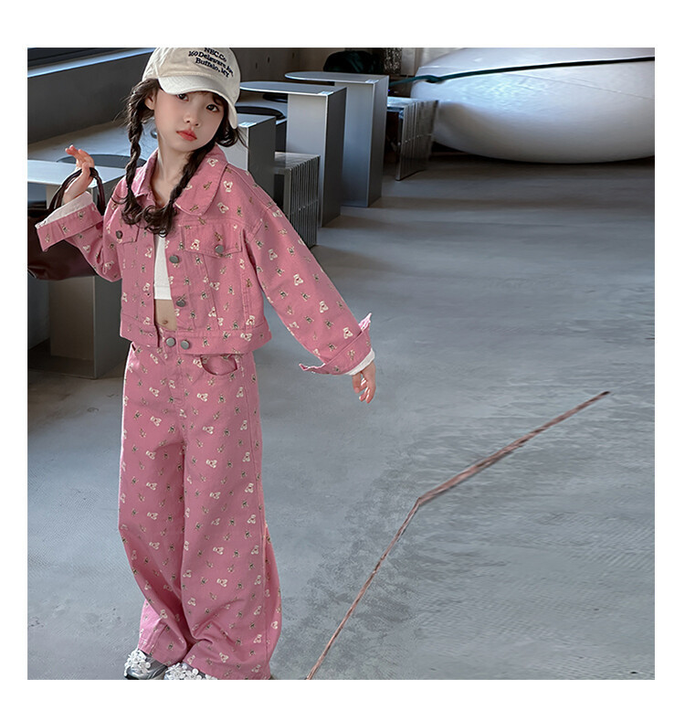 국경 간 어린이 봄 2024 년 새 소녀 세트 서양식 복고풍 한국식 워시 코튼 얇은 데님 투피스 세트스토어 가기