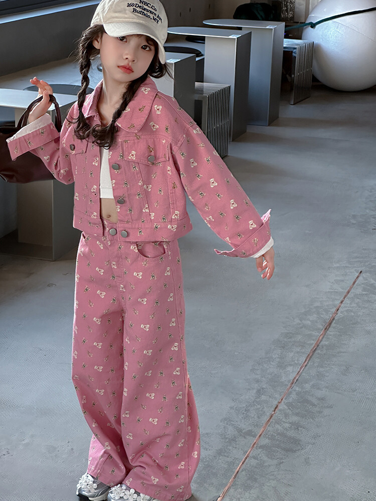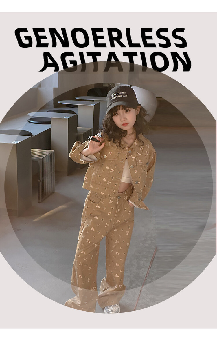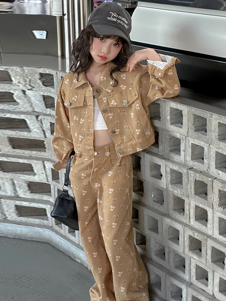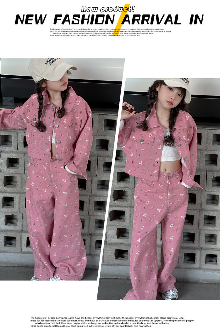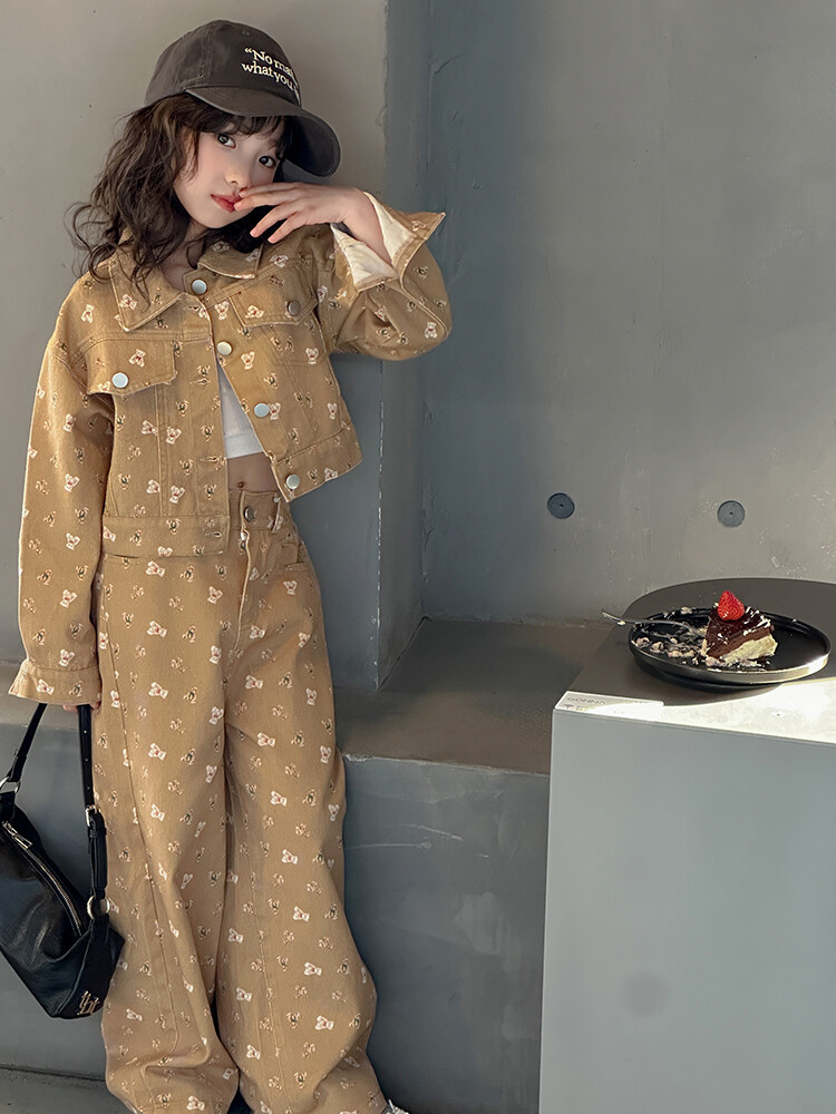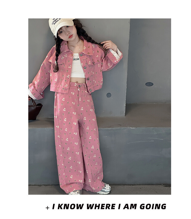 국경 간 어린이 봄 2024 년 새 소녀 세트 서양식 복고풍 한국식 워시 코튼 얇은 데님 투피스 세트스토어 가기